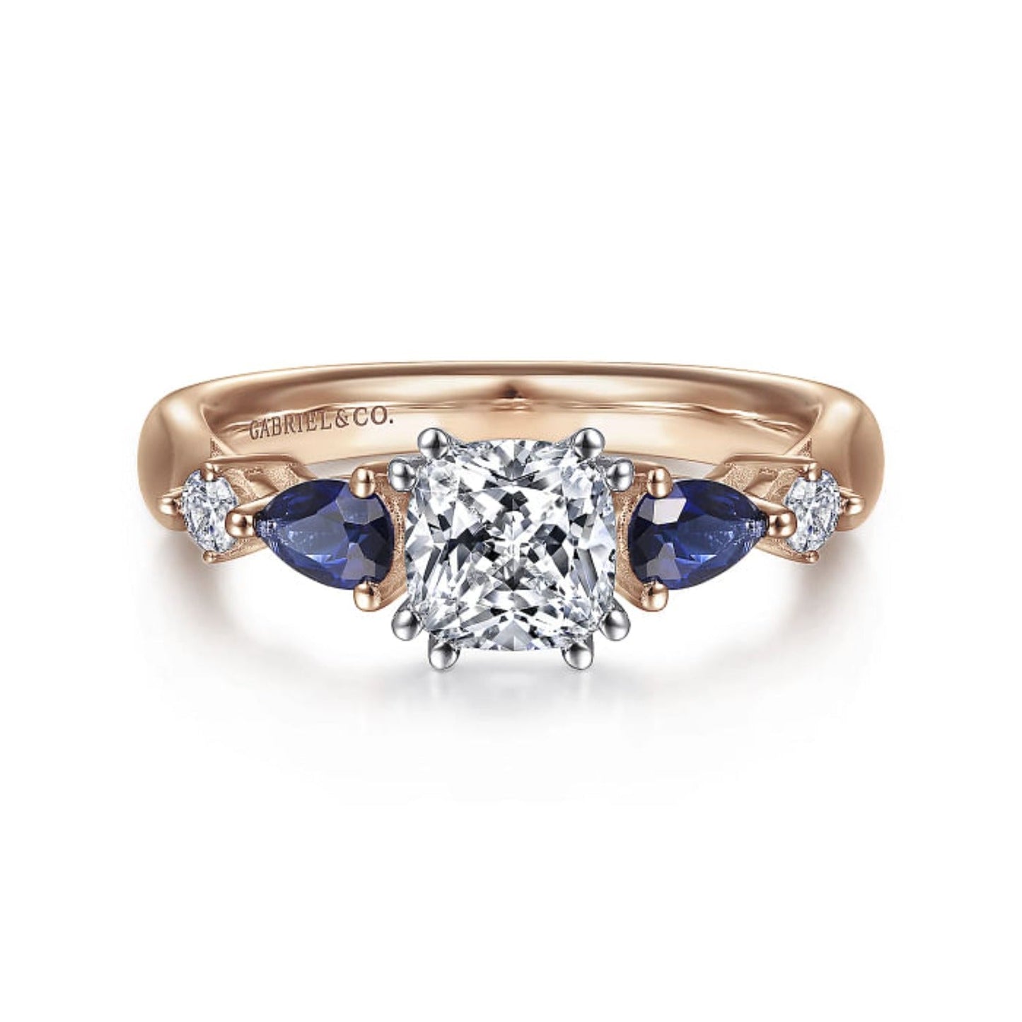 Gabriel & Co. "Carrie" Blue Sapphire Pear Cut Side Engagement Ring