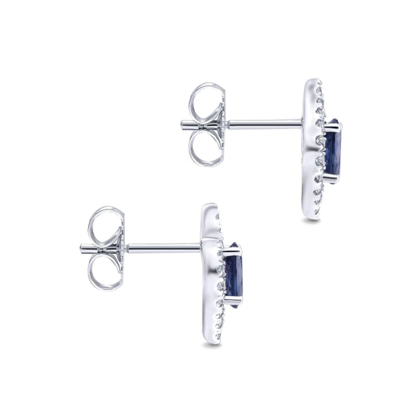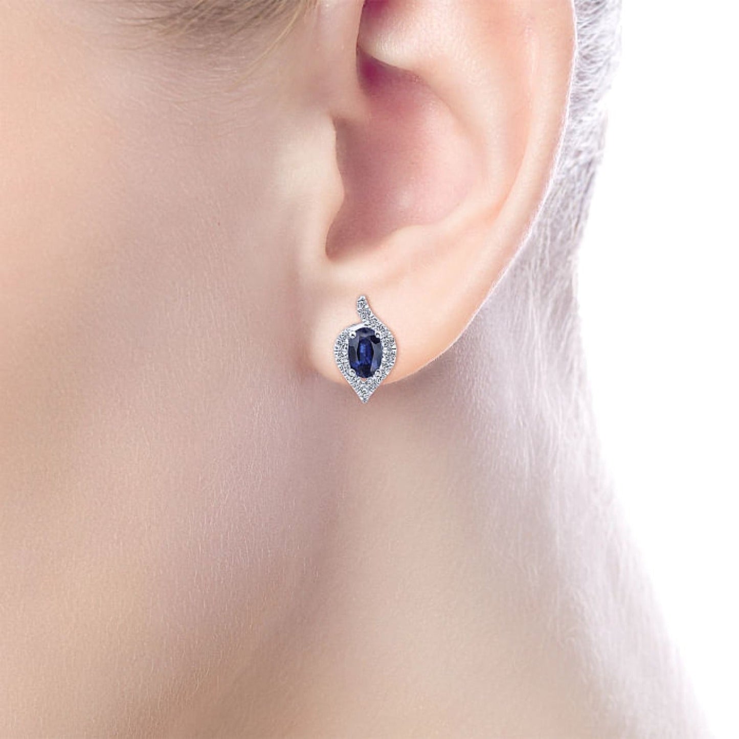 Gabriel & Co. Contemporary Oval Sapphire Halo Diamond Cluster Earrings