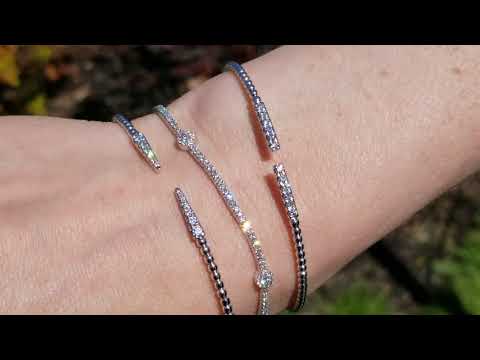 Bracelets featured in the video from left to right are: BG4216-65W45JJ (Beaded Pave Bracelet), TB4228W45JJ (5 Station Bracelet) and BG4218-65W45JJ (Open Pave Diamond Bangle).