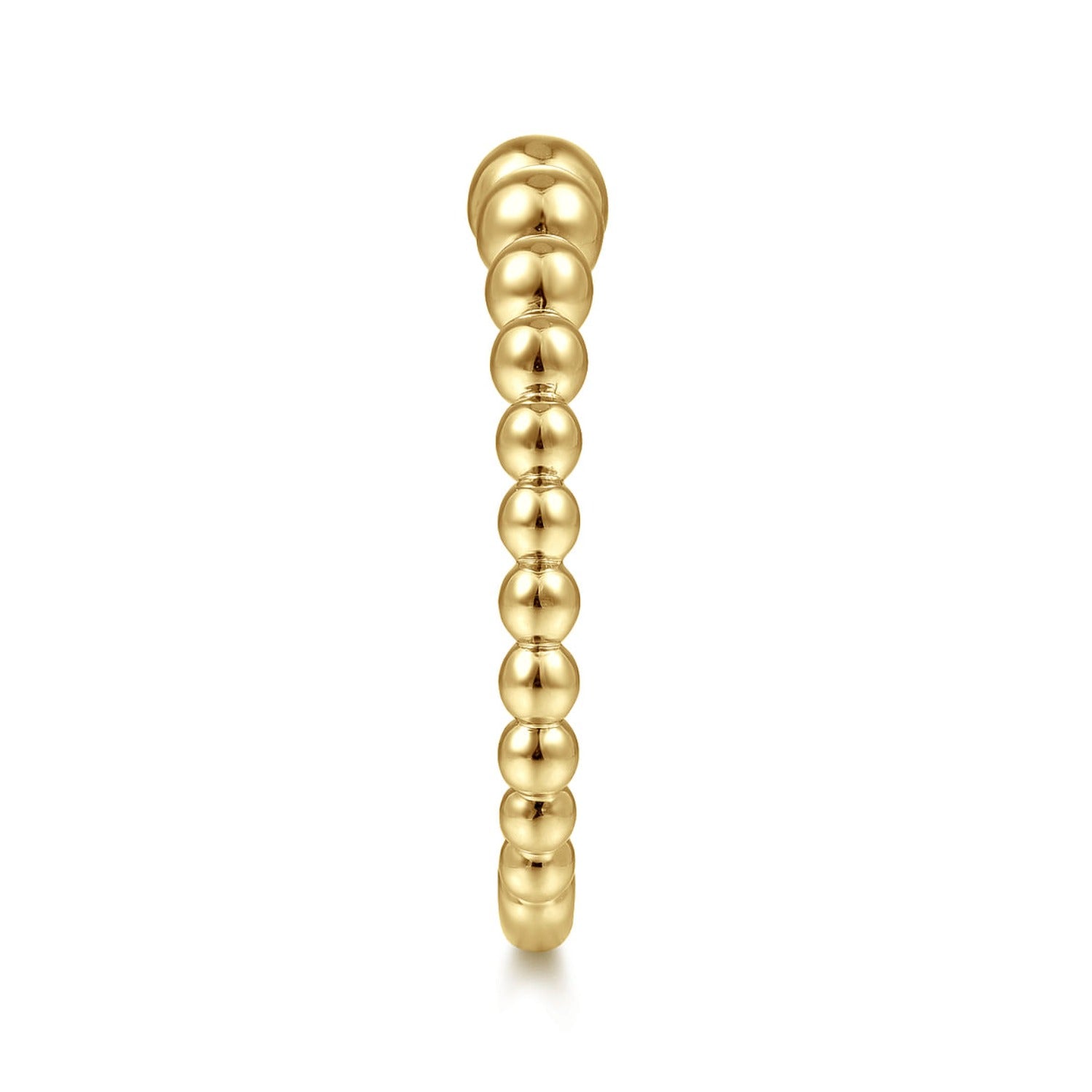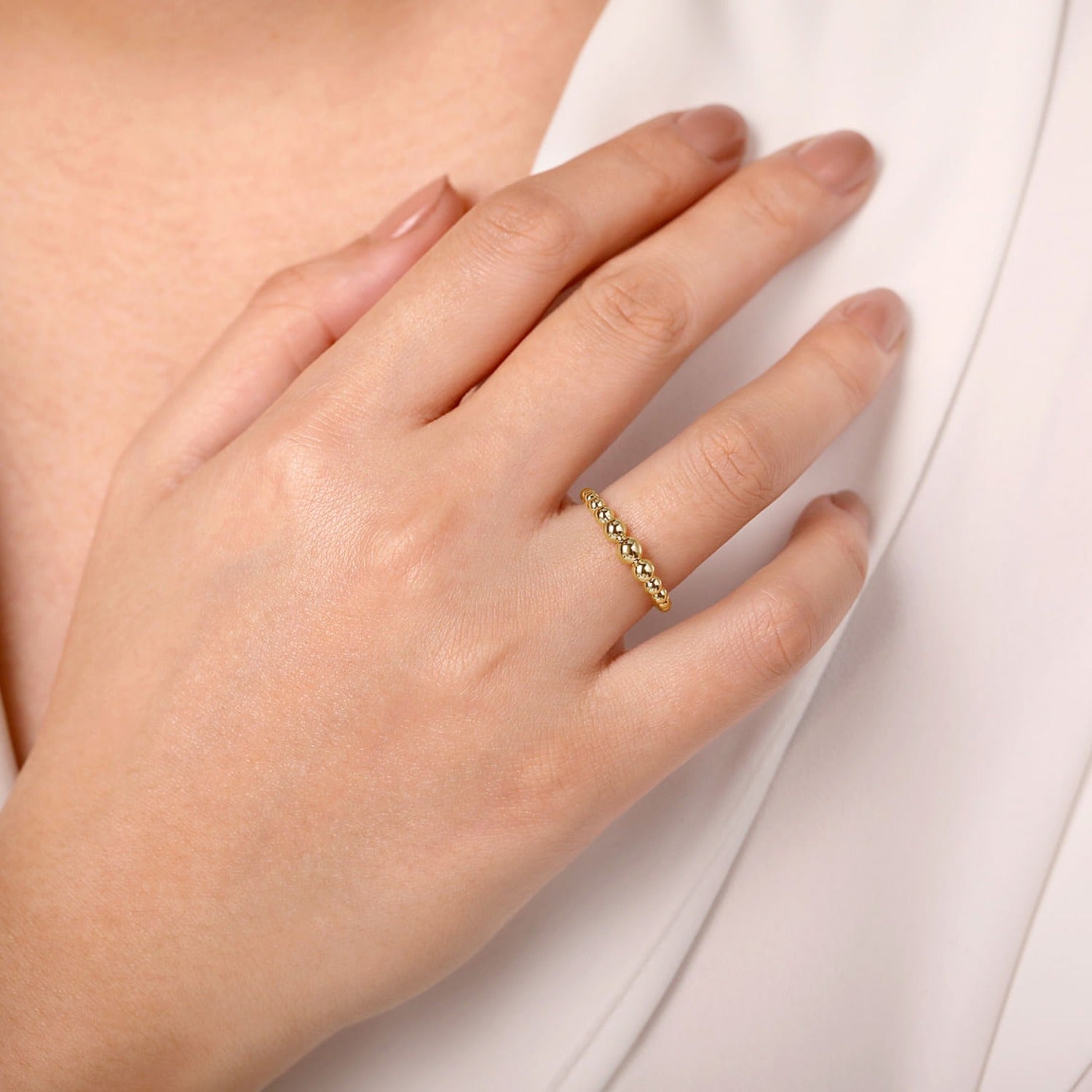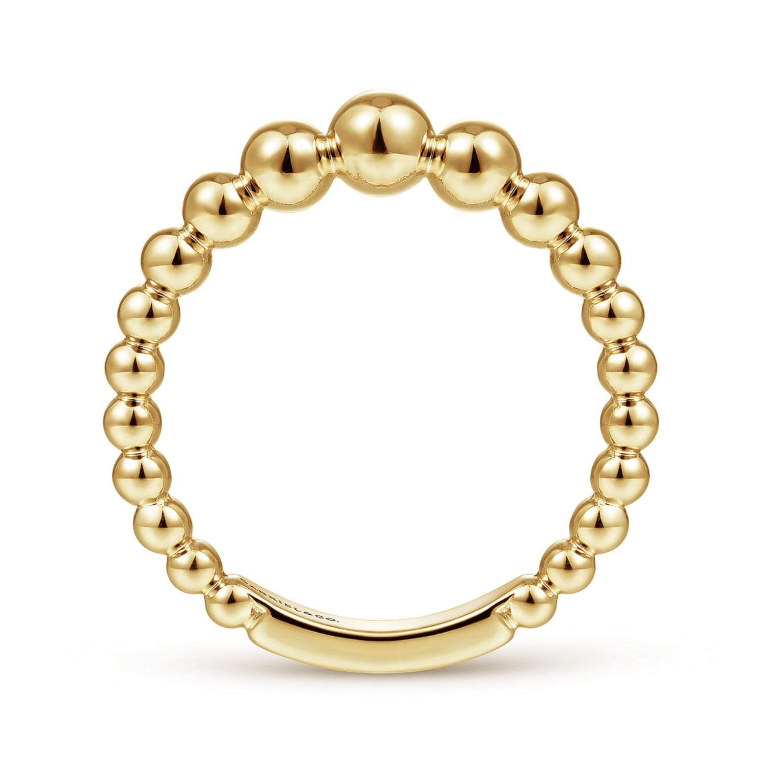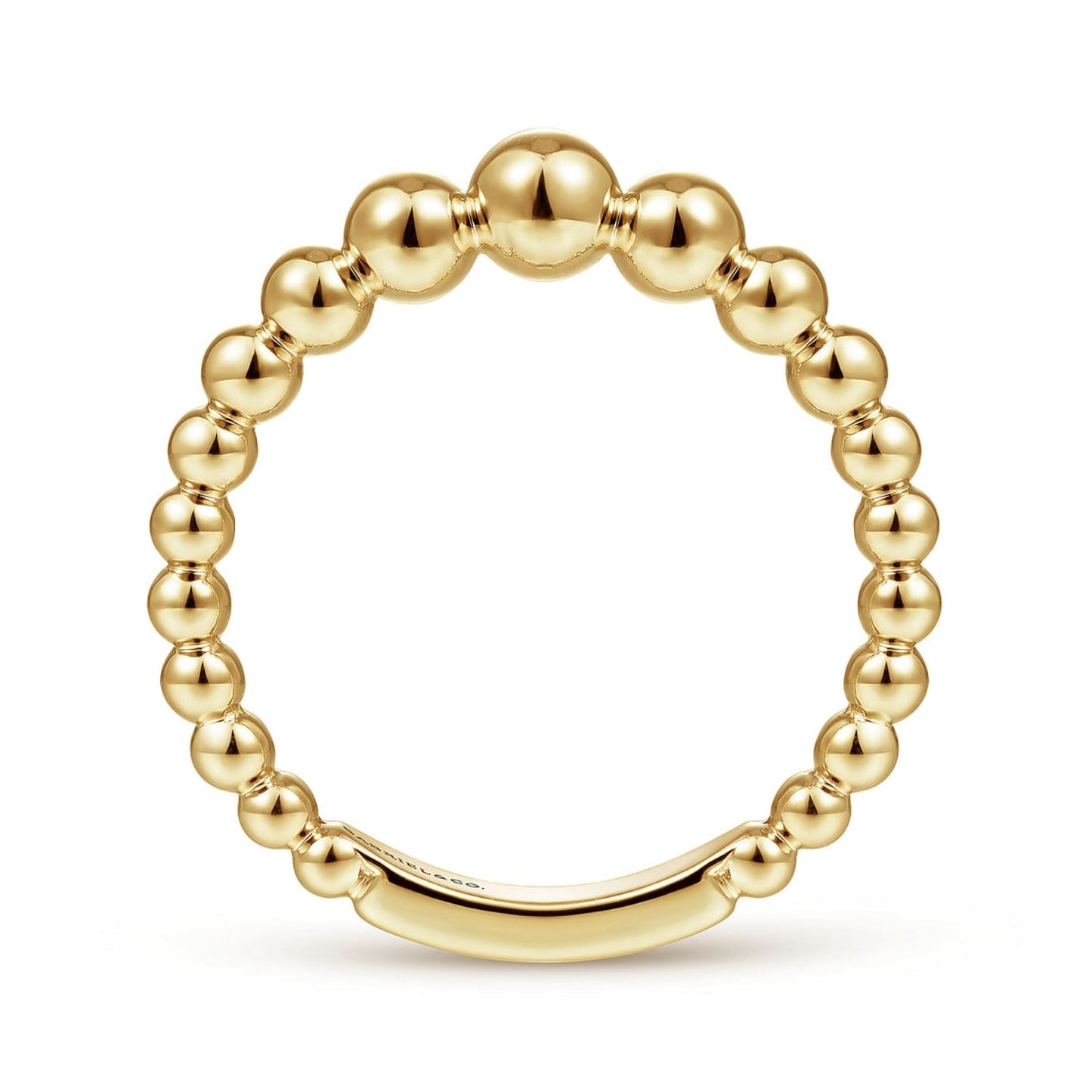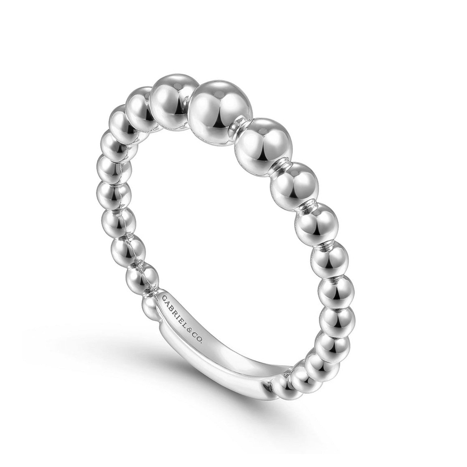Crafted by Gabriel & Co, this Graduating Bujukan Ring is beautiful on its own or can be paired with other designs for a unique look. The ring features high-polish beads that gradually increase in size from the base of the finger to the top. A must-have addition to any jewelry collection.