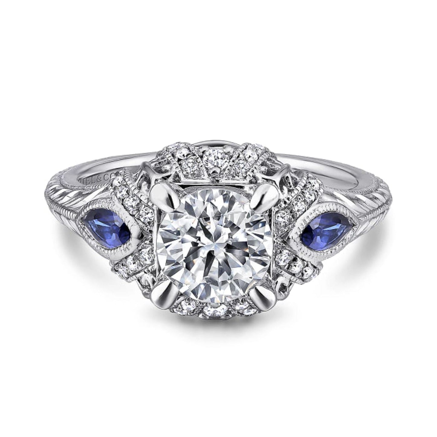 Gabriel & Co. "Lexington" Diamond & Blue Sapphire Halo Engagement Ring