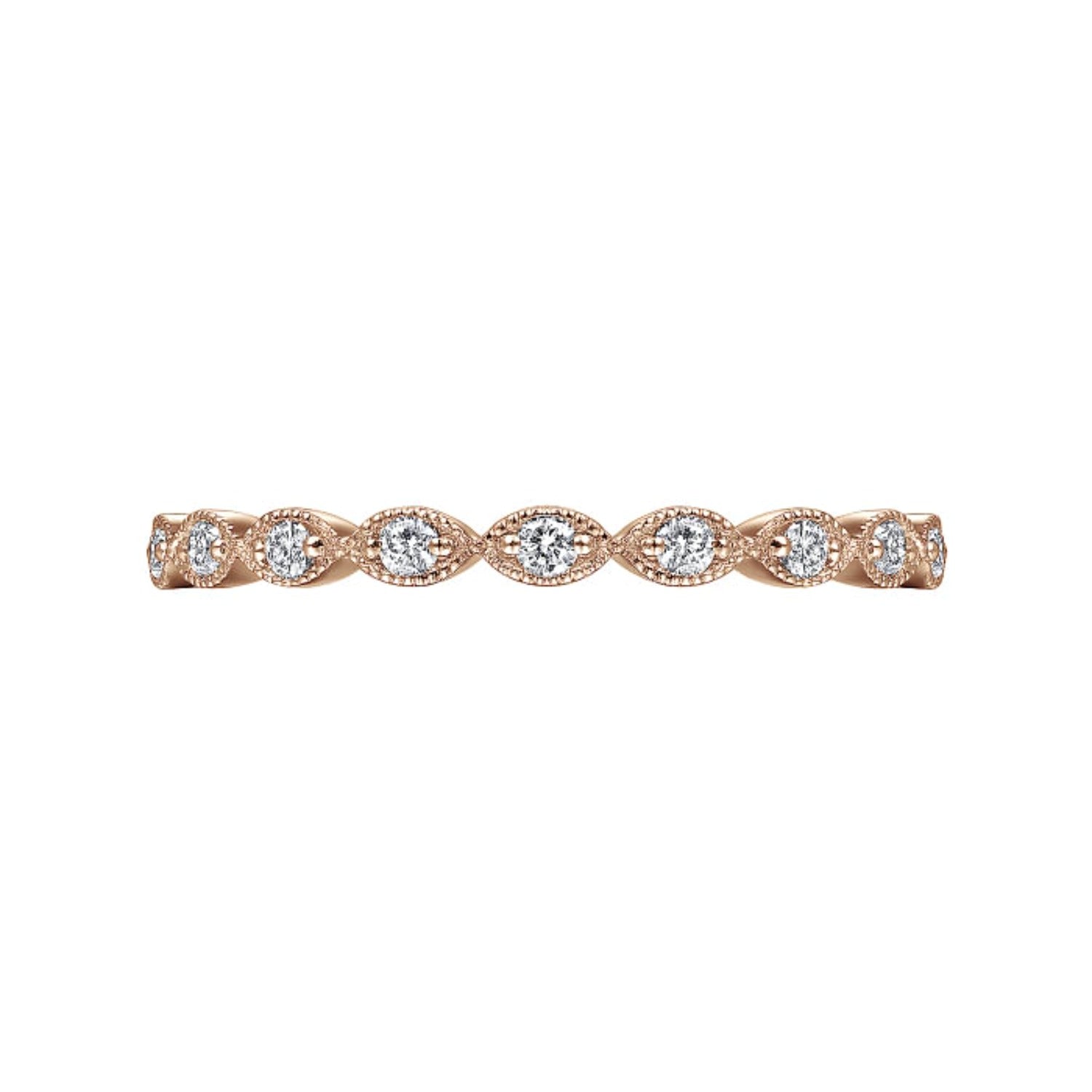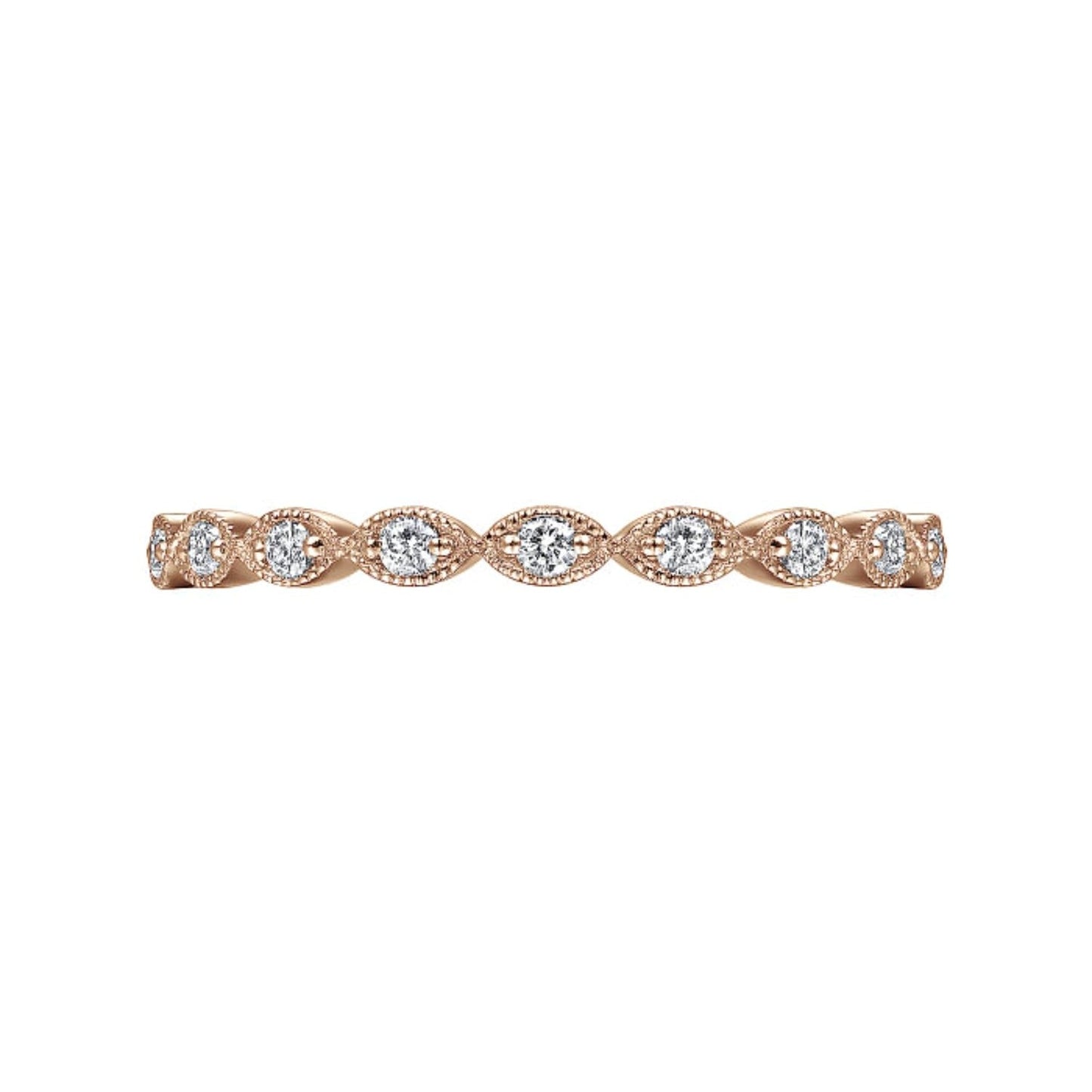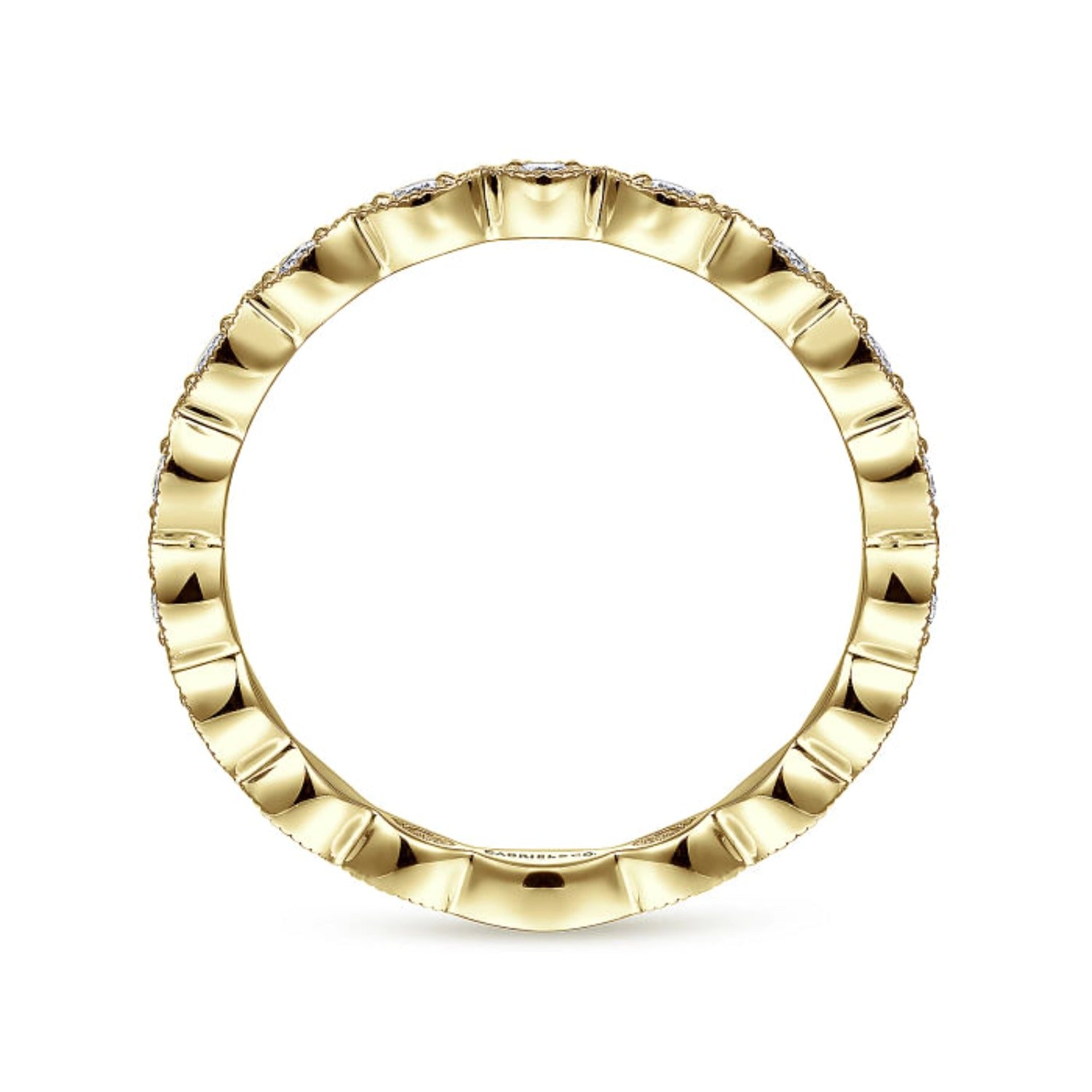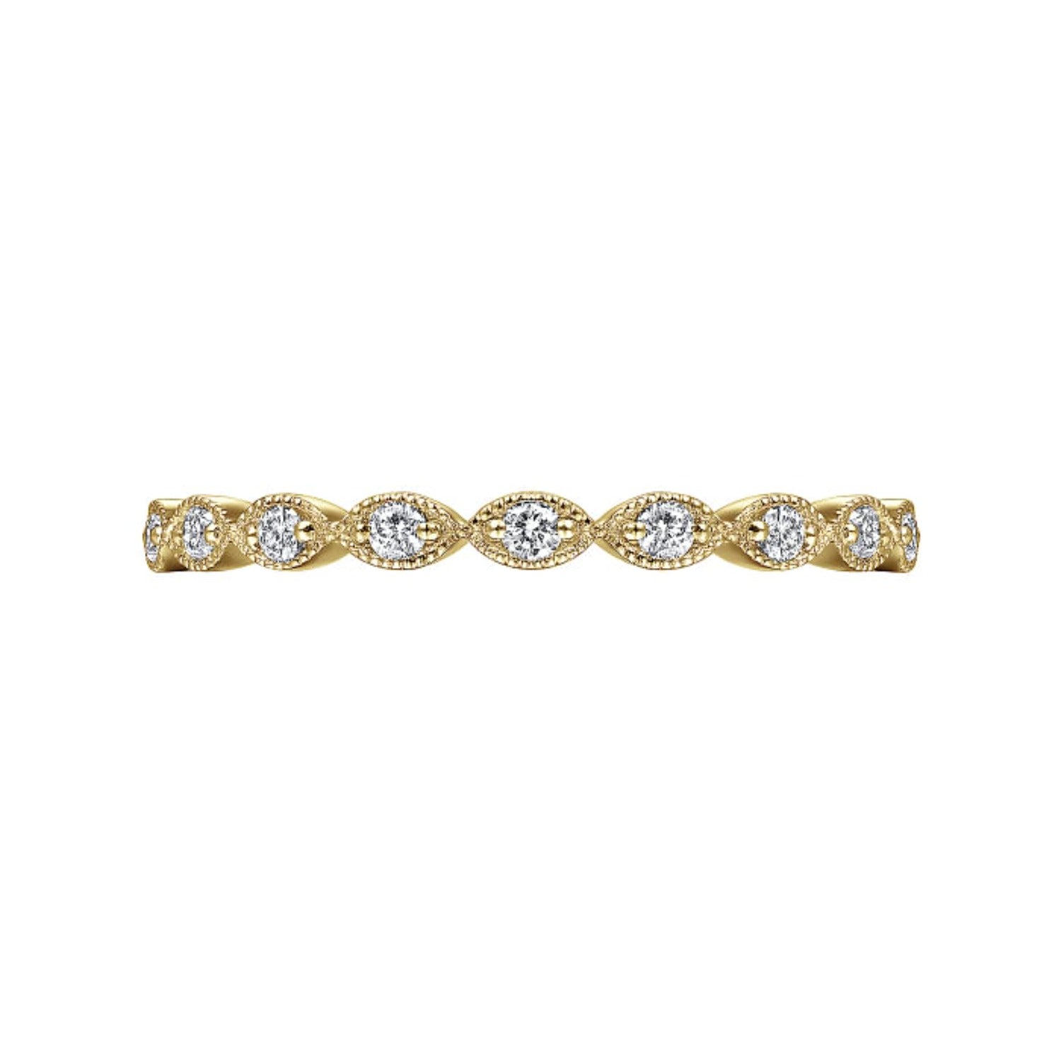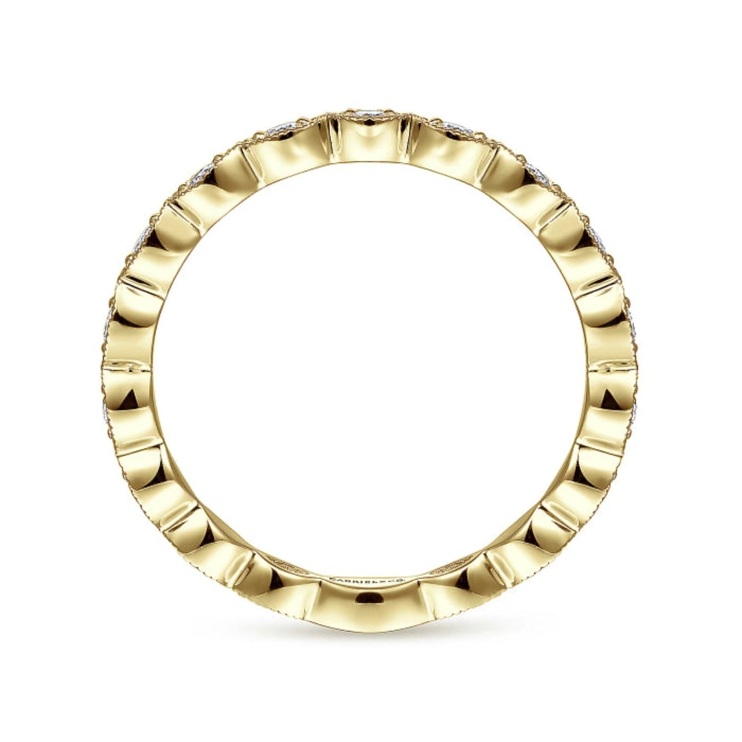 Discover the timeless beauty of the Gabriel & Co. Gold Marquise Shaped Stackable Ring, a masterfully crafted piece that captures the essence of elegance. This captivating ring boasts a marquise-shaped design adorned with 0.27 carats of round-cut diamonds, skillfully set and complemented by delicate milgrain edging. With a total diamond weight of 0.25 carats, this stackable ring exudes sophistication and charm. The diamonds exhibit an average clarity of SI2 or higher and a near-colorless hue, ensuring a radiant sparkle. Elevate your style with the enchanting allure of natural diamonds, embodied in this exquisite creation from Gabriel & Co.