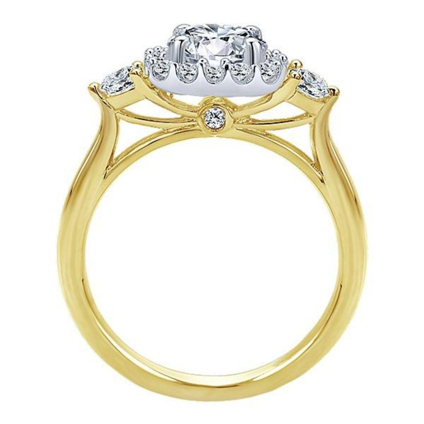 Capture the essence of timeless romance with the Gabriel "Martine" Three Stone Cushion Halo Diamond Engagement Ring. This exquisite ring features a total weight of 0.52 carats of round-cut diamonds. The cushion halo design adds a touch of vintage-inspired elegance, creating a symbol of enduring love and commitment. Meticulously crafted by Gabriel & Co., the "Martine" engagement ring is a radiant expression of your unique love story.