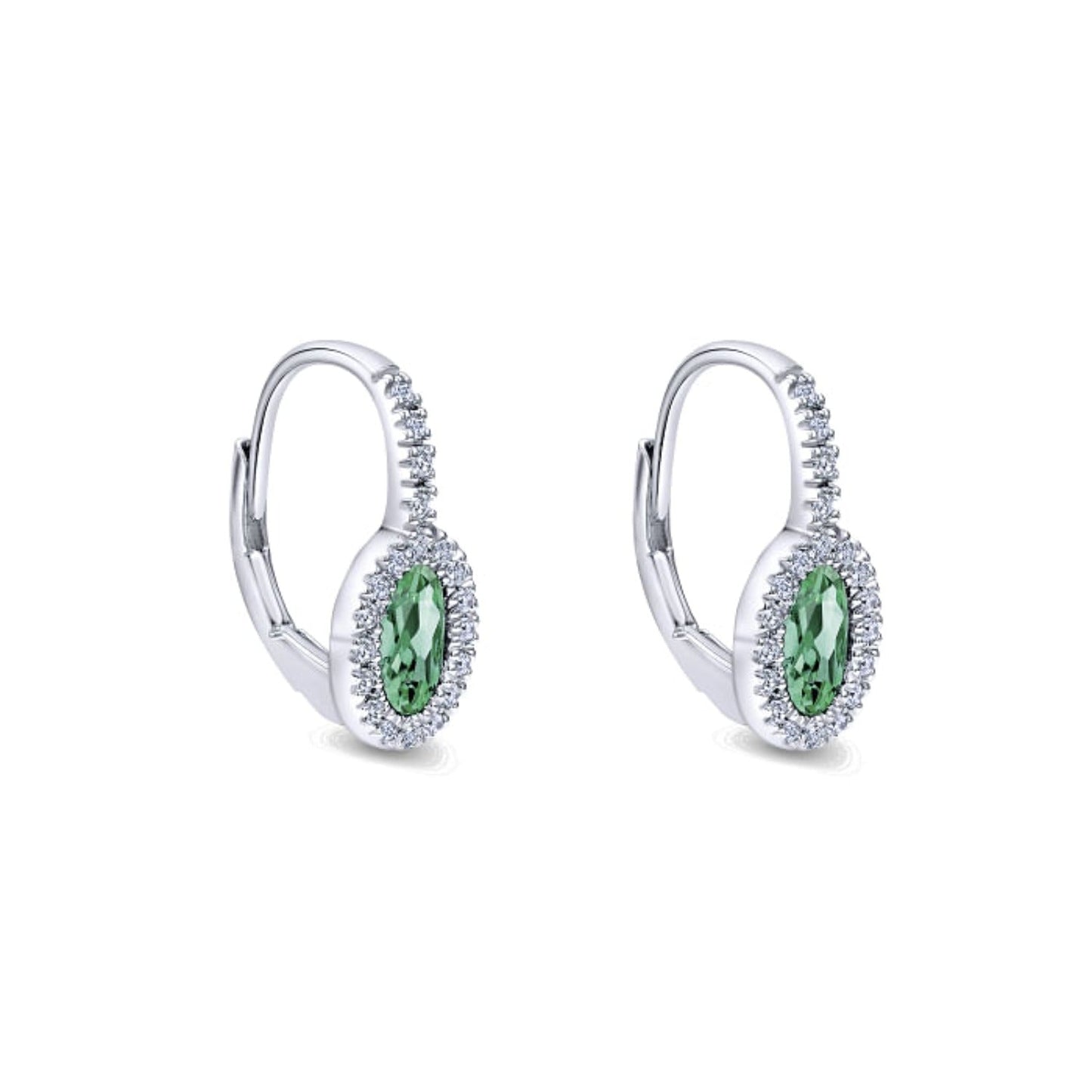 Gabriel & Co. Oval Emerald Diamond Halo Drop Earrings