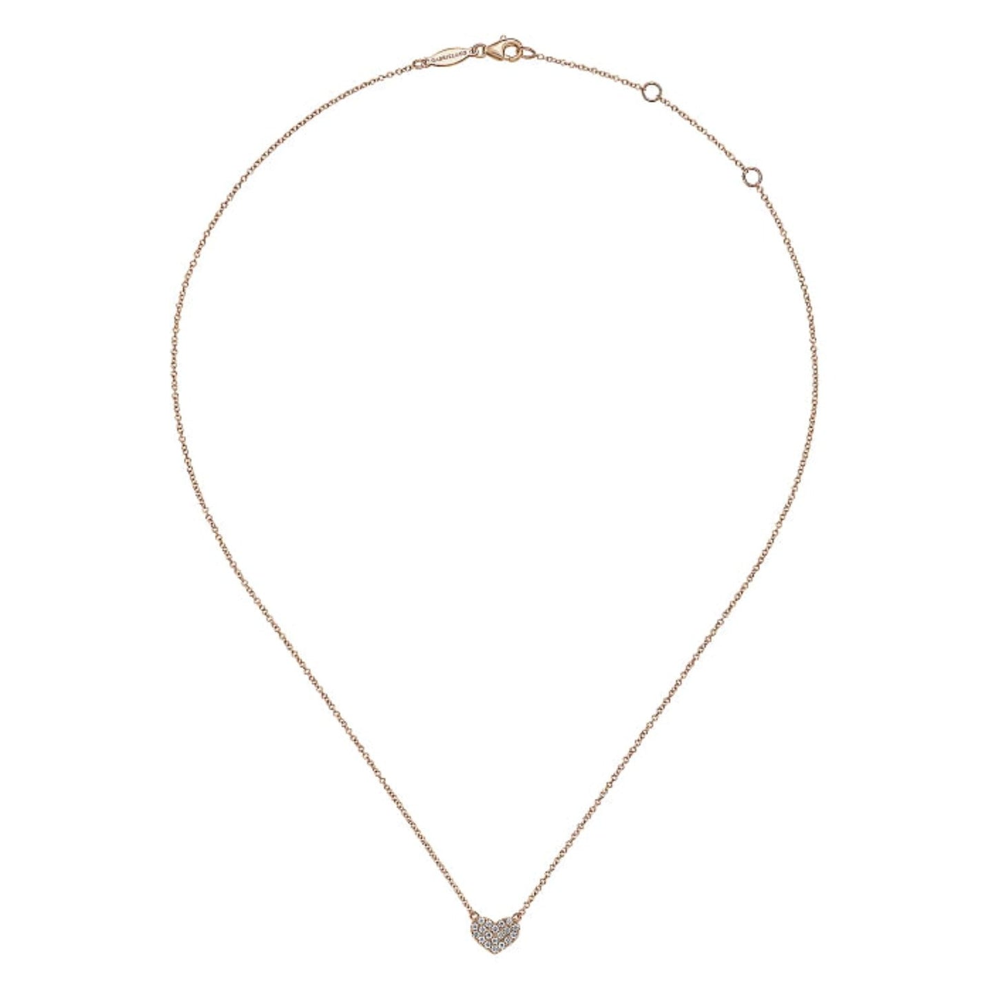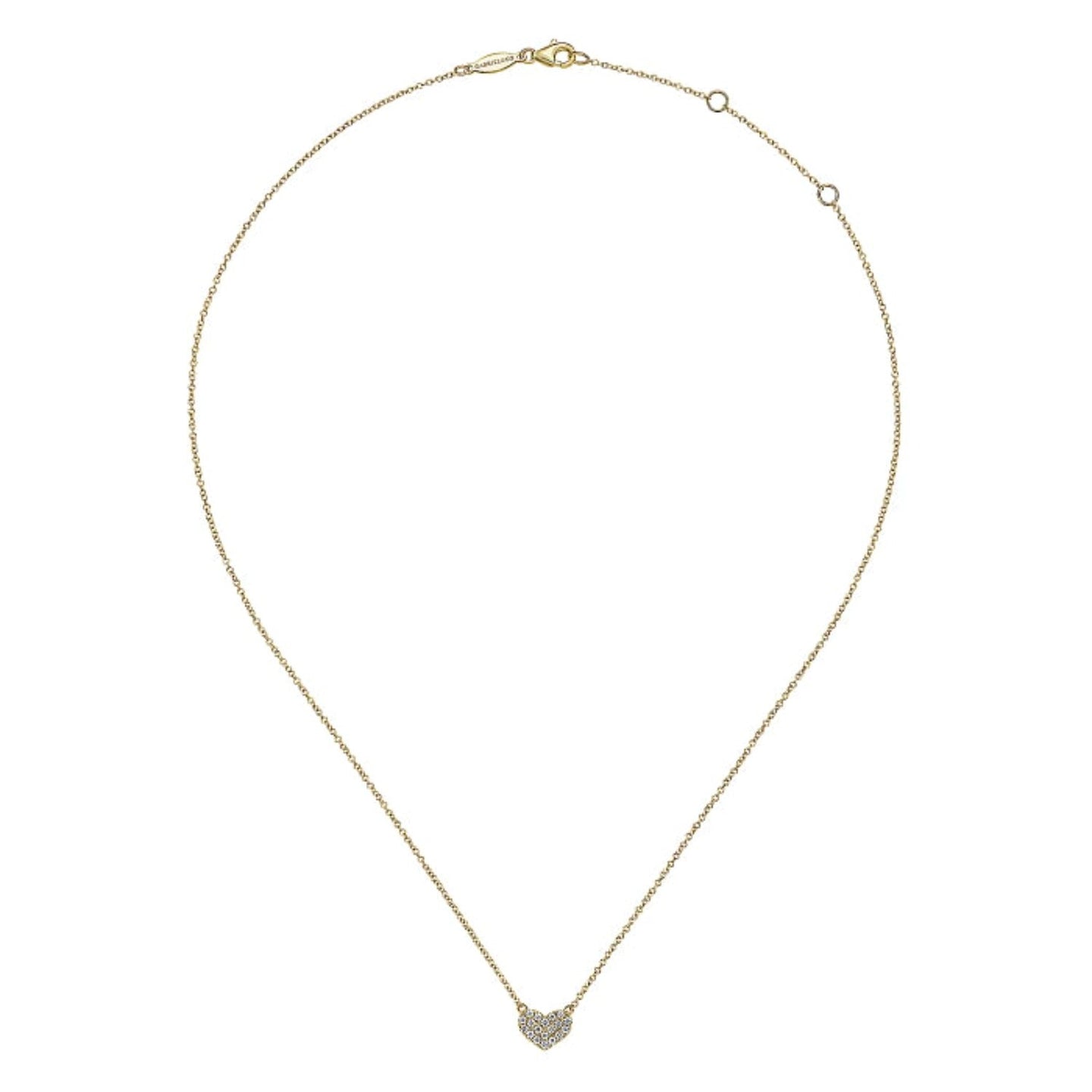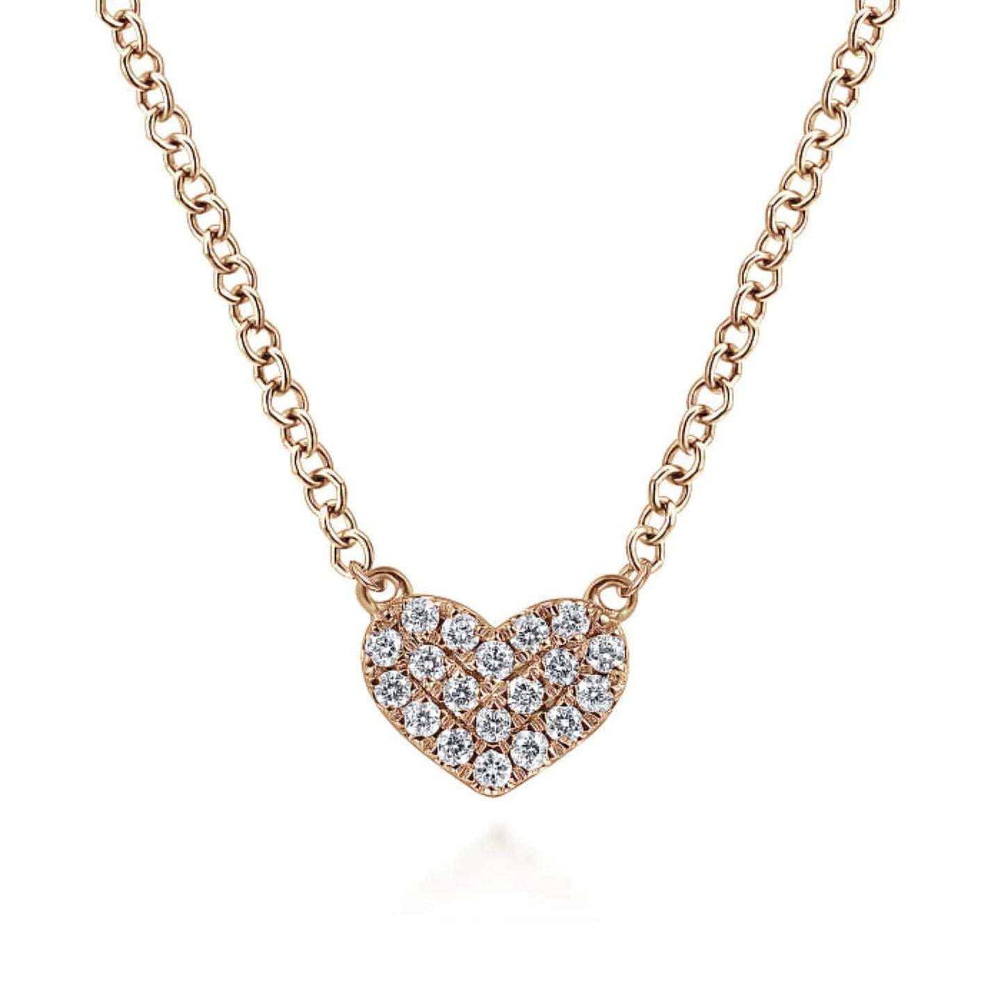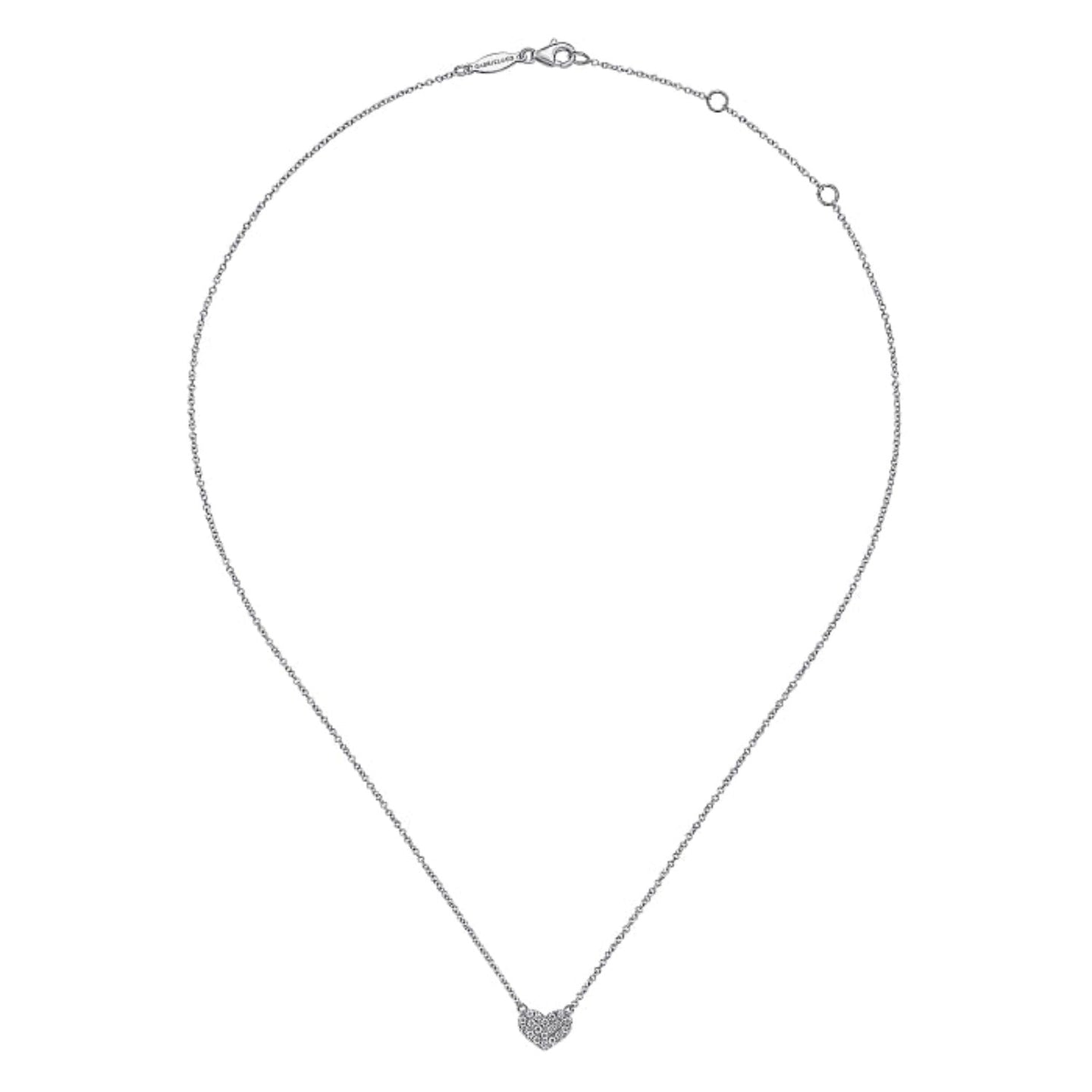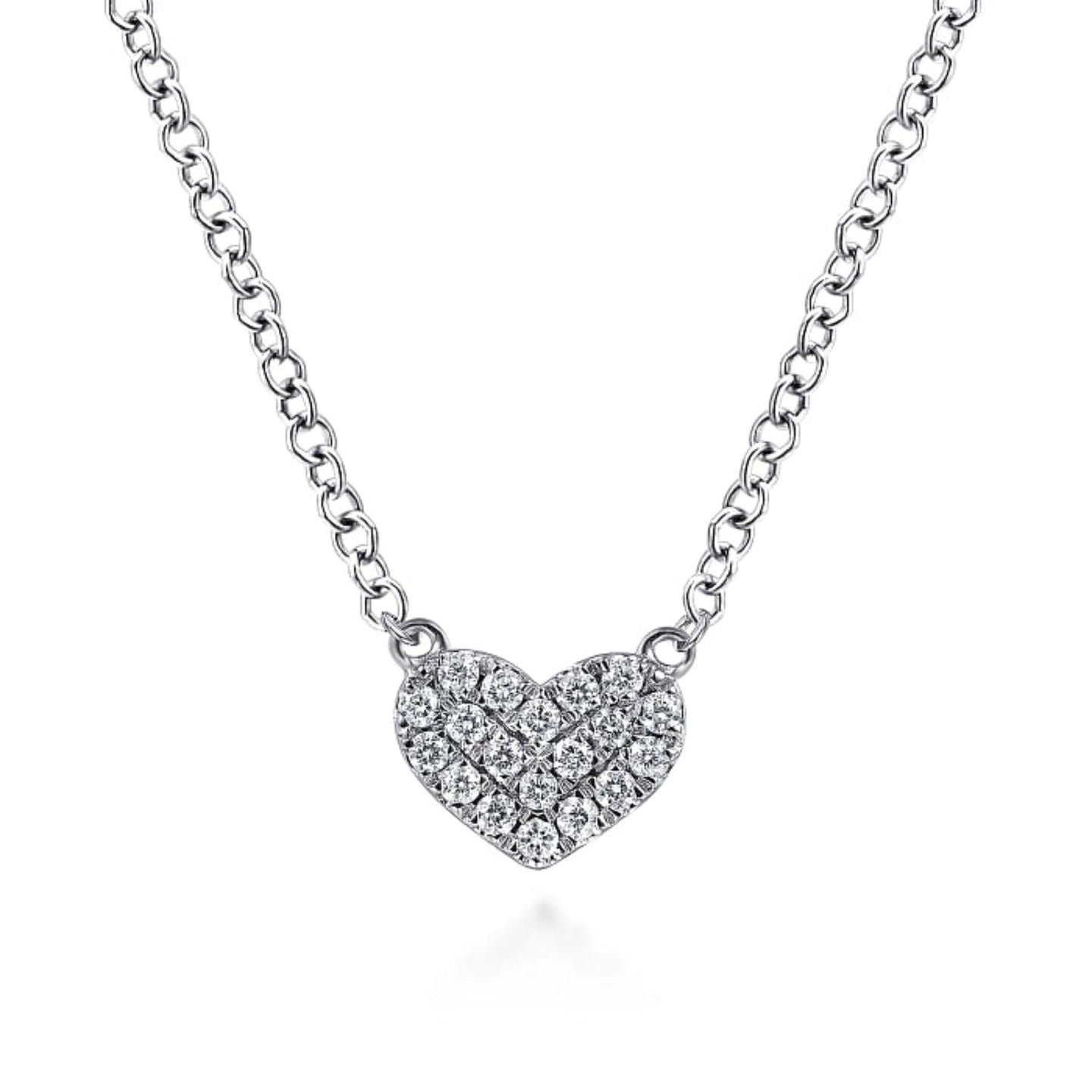 A darling petite heart is adorned with hand picked diamonds to create this perfect eternal love necklace! Introducing the Gabriel & Co. Petite Pave Diamond Heart Pendant - a dazzling piece featuring 0.25 carats of round cut diamonds, pave set on an 18" cable chain. Shine on, you sparkling star!