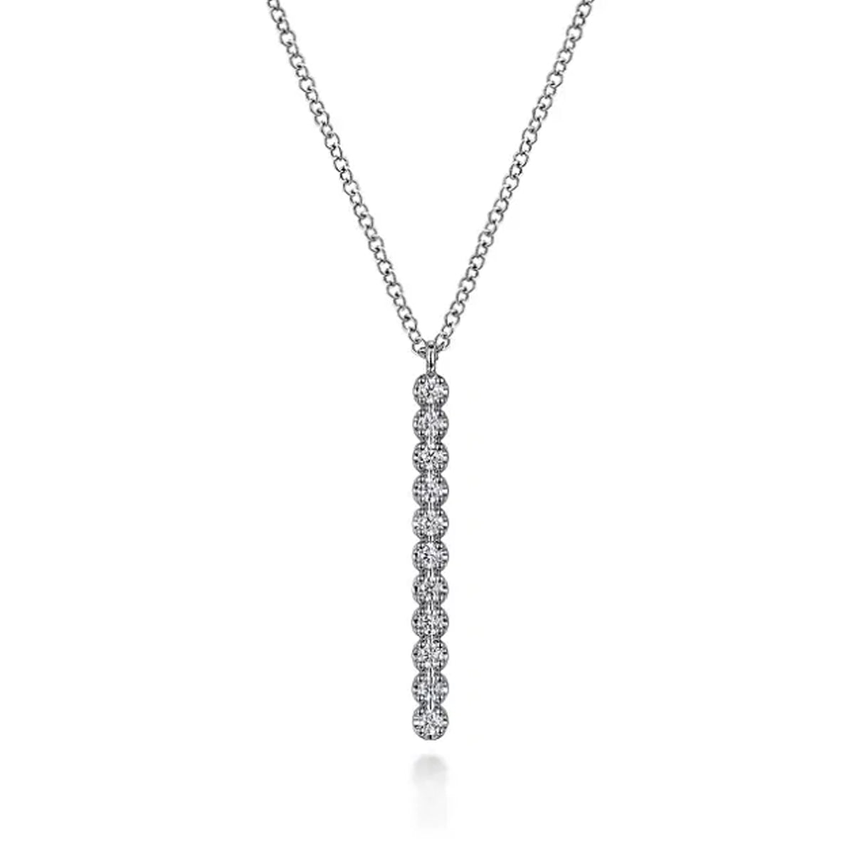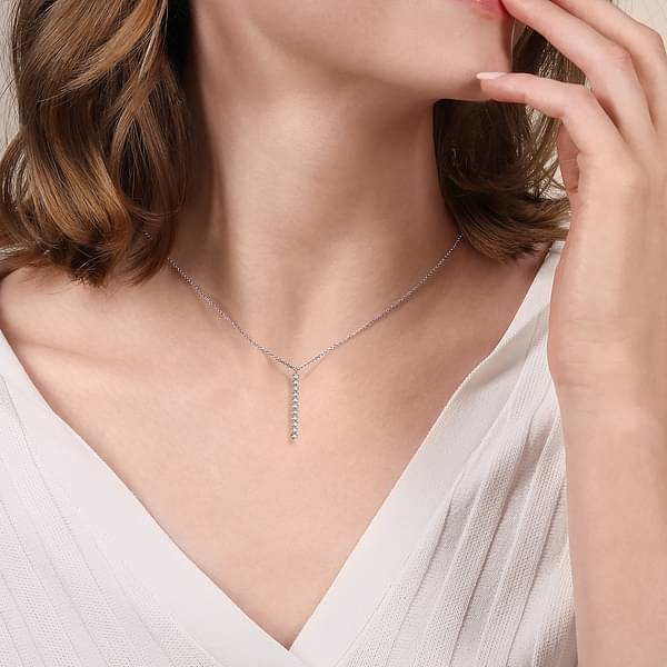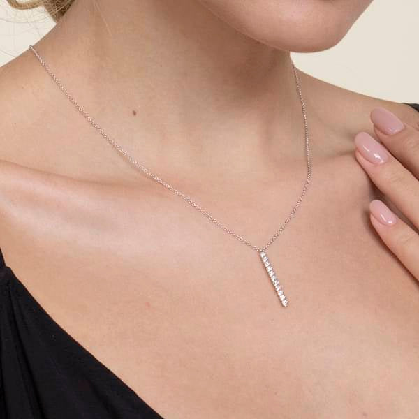 Sleek, sparkling, and effortlessly modern, the Gabriel & Co. vertical bar diamond pendant is a timeless essential with a contemporary edge.