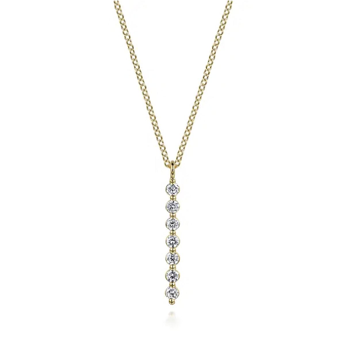 Sleek, radiant, and refined—this Gabriel & Co. yellow gold bar necklace delivers effortless elegance with a touch of everyday sparkle.
