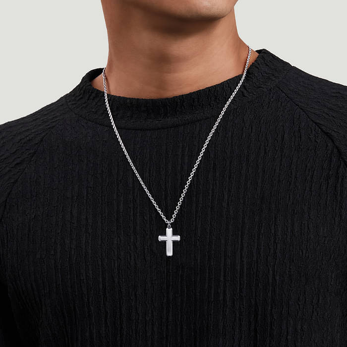 Designed to be paired with a favorite chain, this men's pendant by designer Gabriel is a classic symbol of faith. The cross design is constructed in smooth, high polished 925 sterling silver with beveled edges for added refinement.