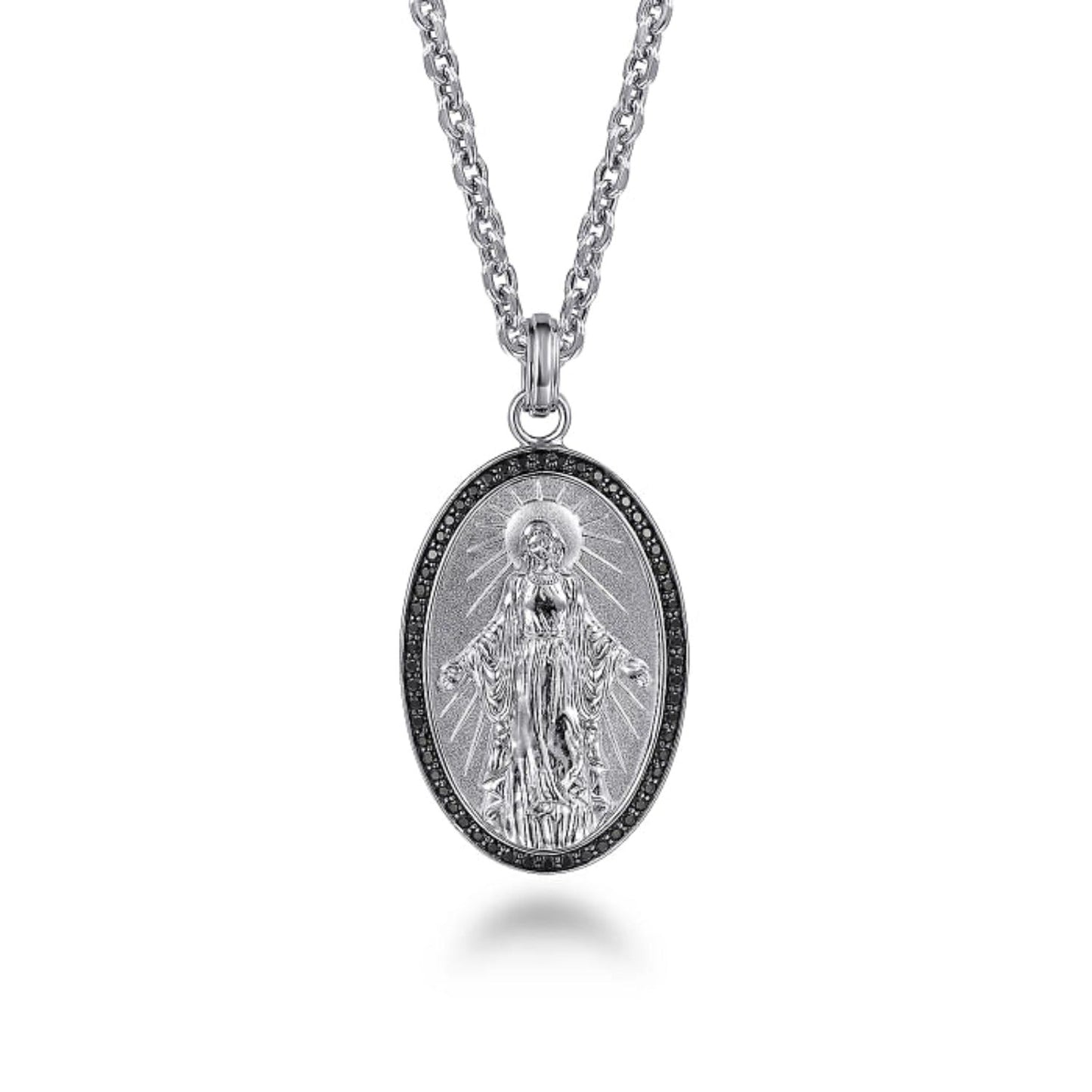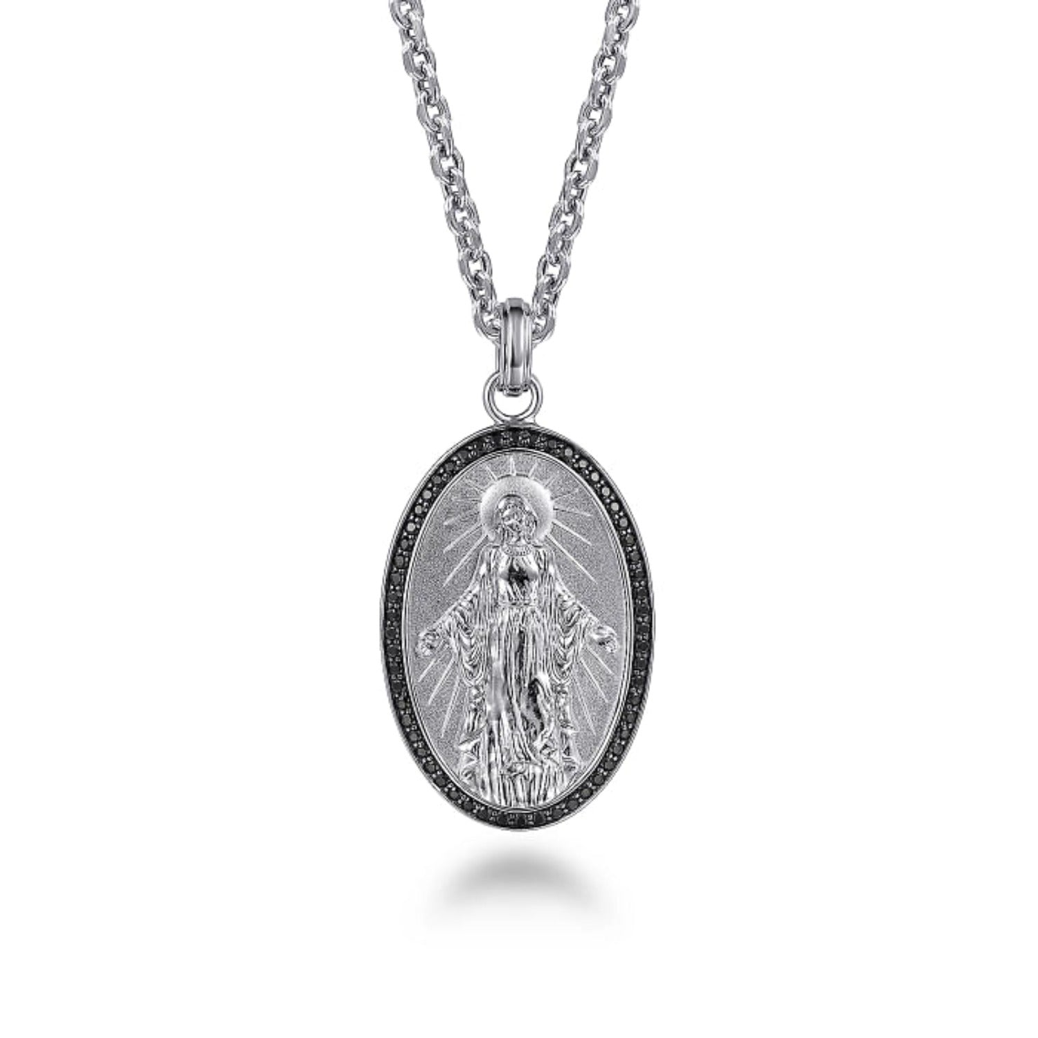 Gabriel & Co. Virgin Mary Pendant with Black Spinel Frame