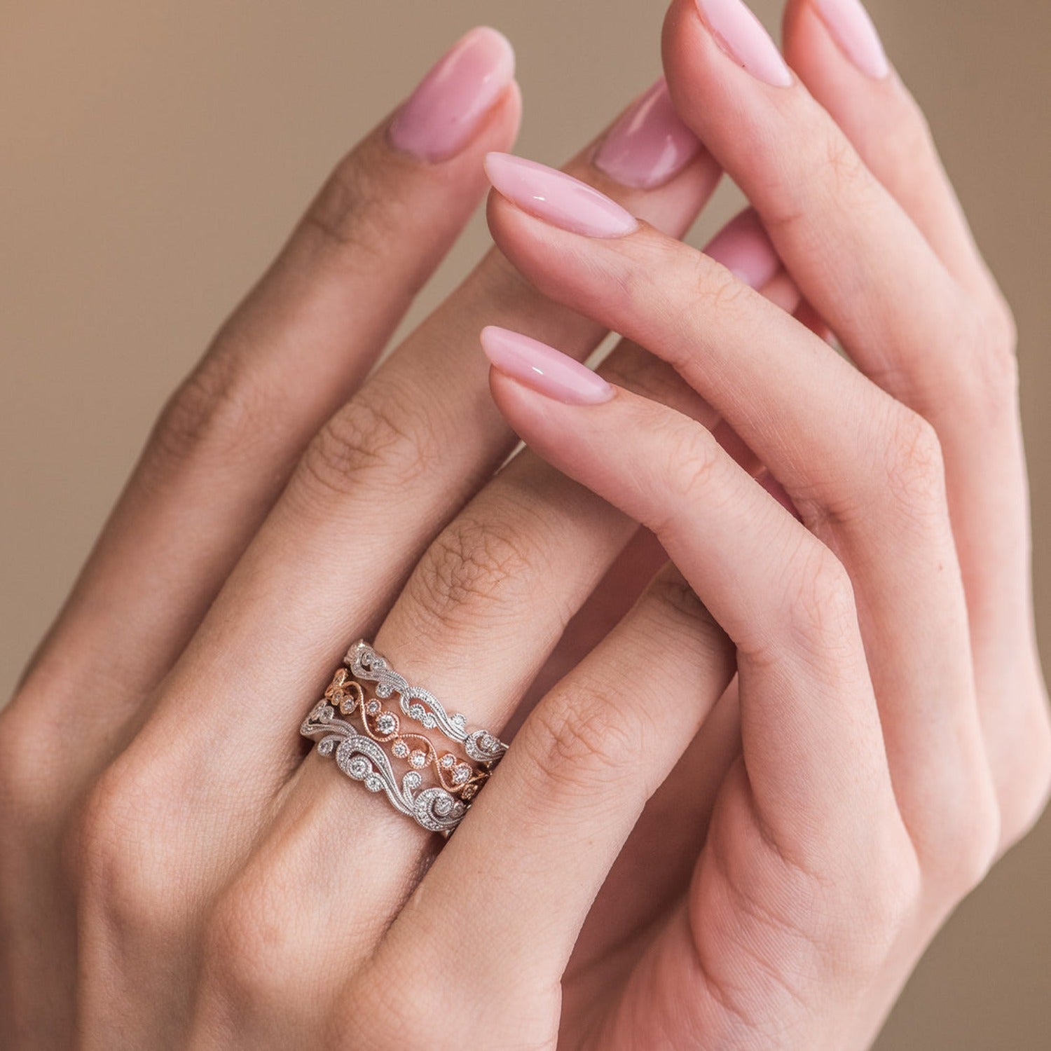 Kirk Kara "Angelique" Diamond Milgrain Scroll Work Wedding Band