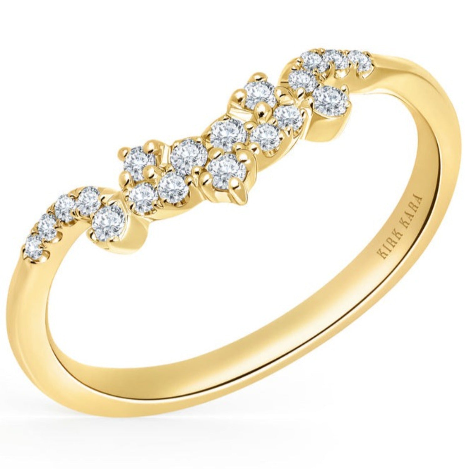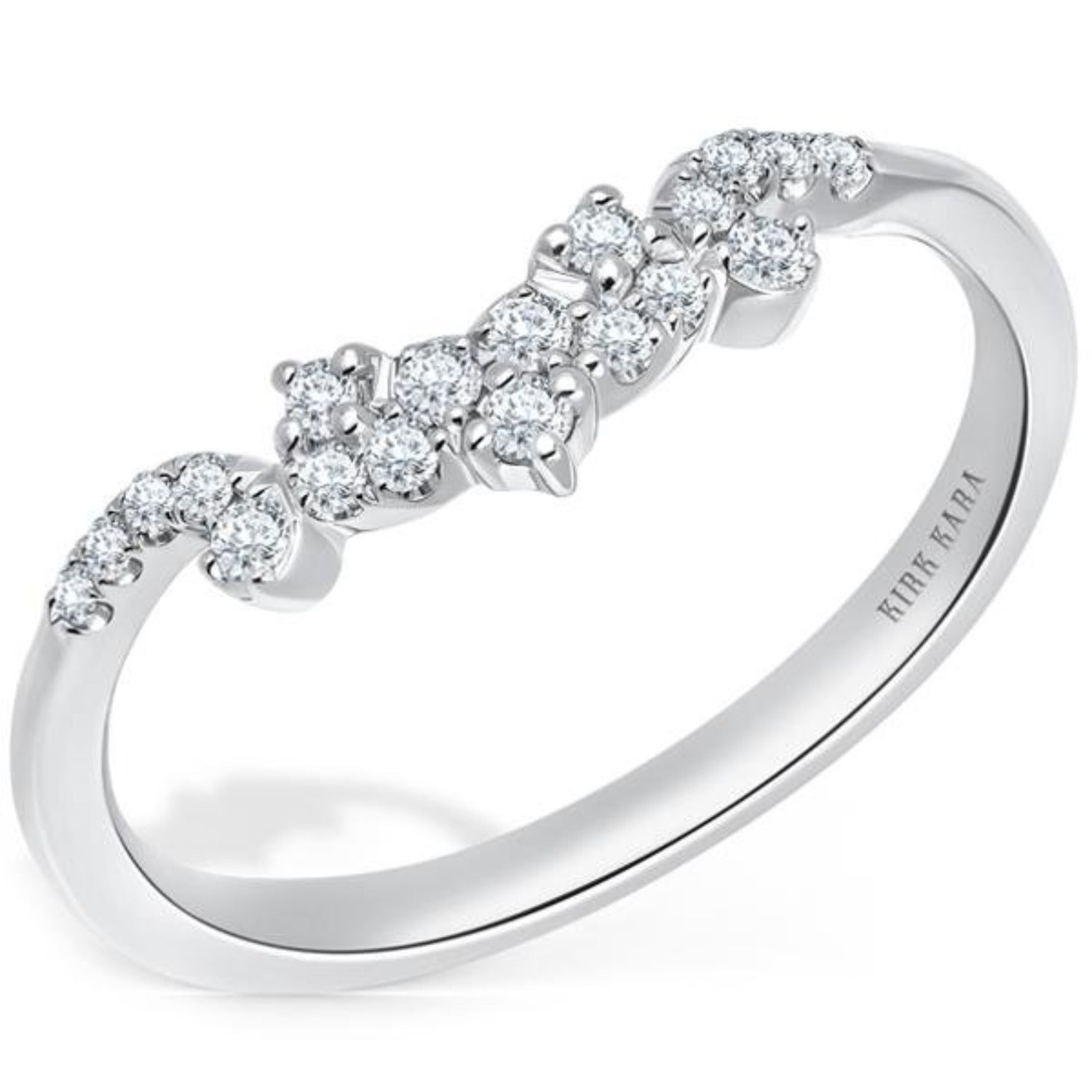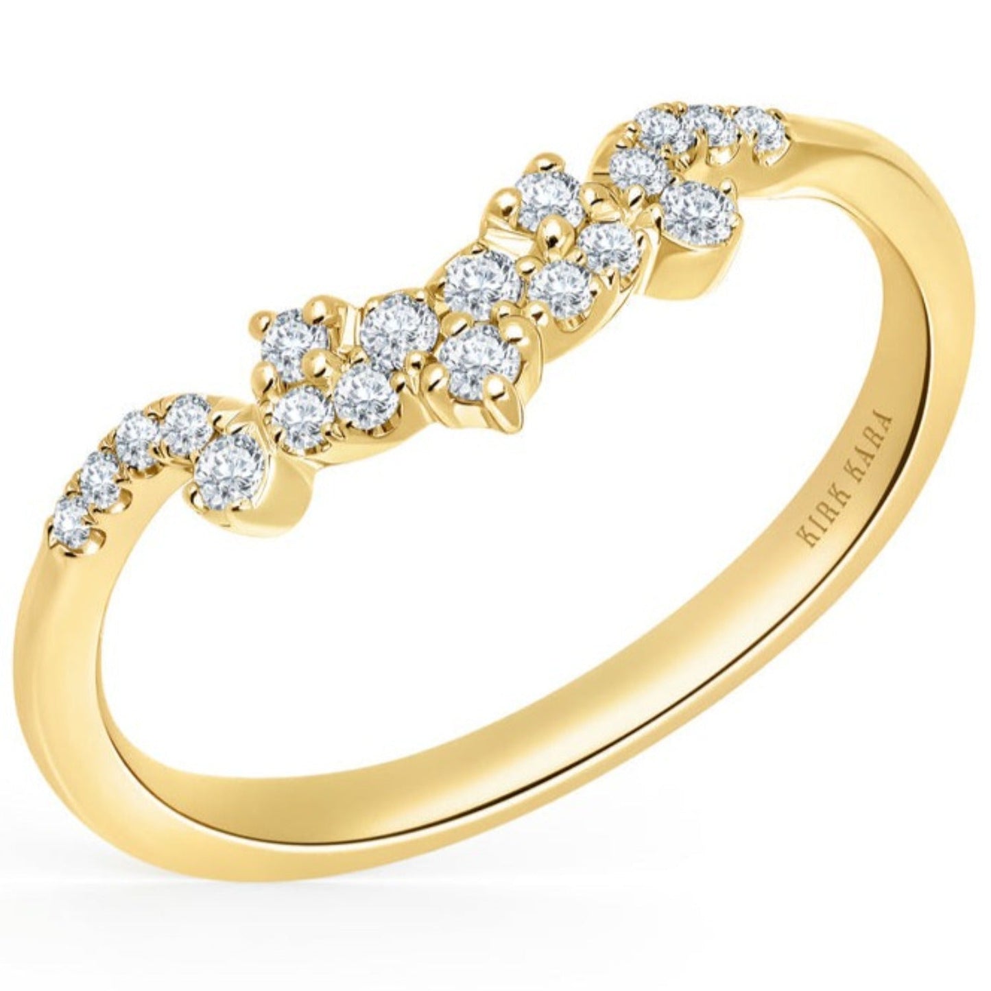 Kirk Kara "Angelique" Petite Scroll Curved Diamond Wedding Band Featuring 0.19 Carats Round Cut Prong Set Diamonds