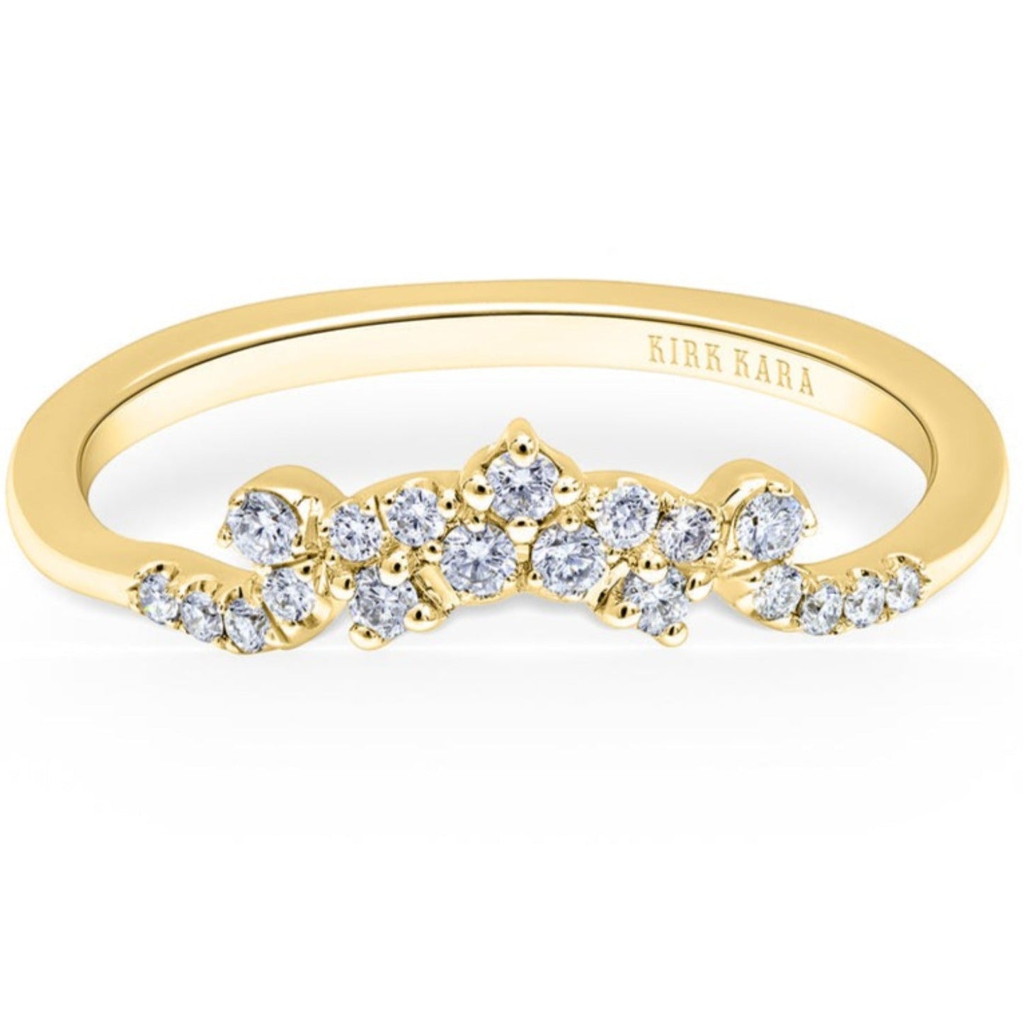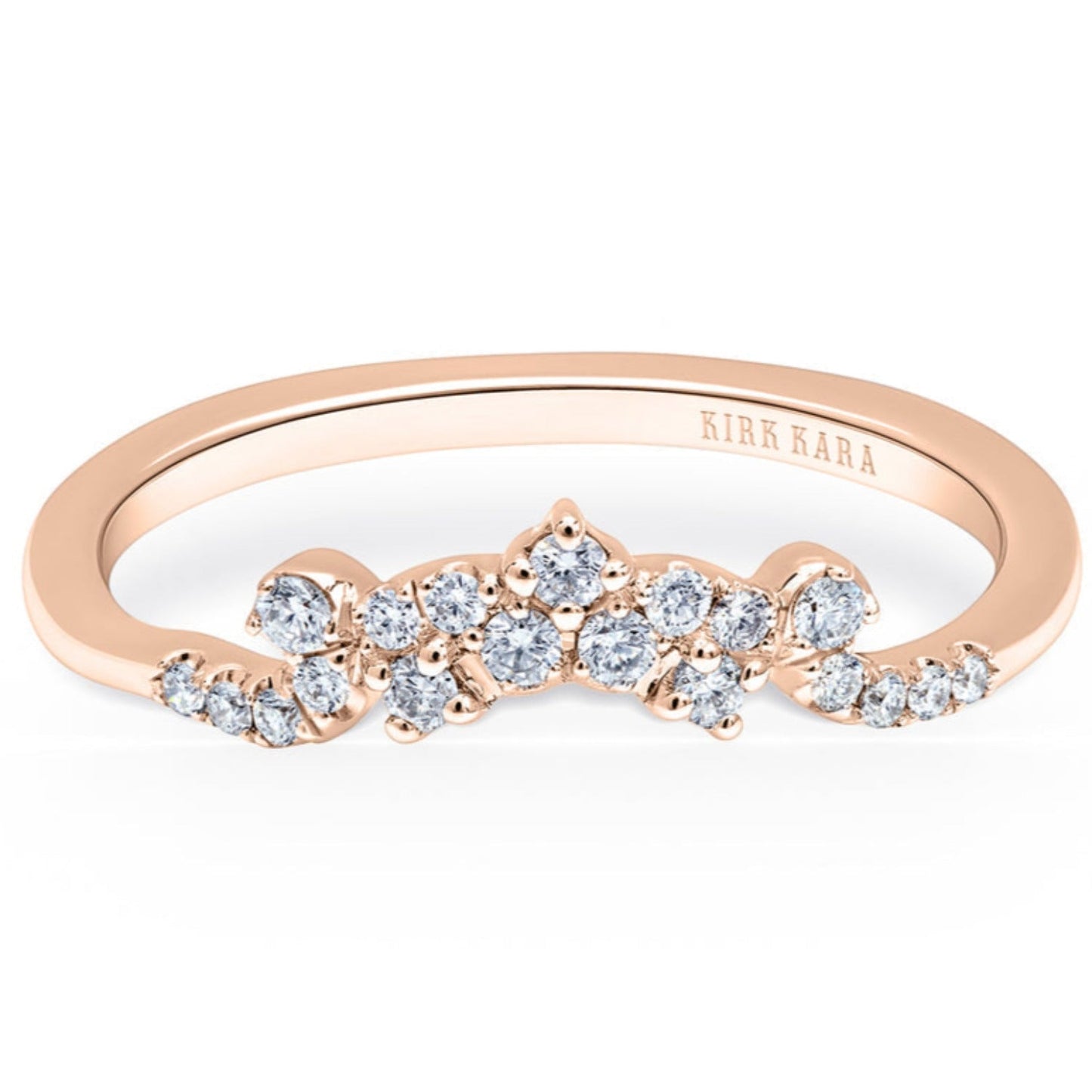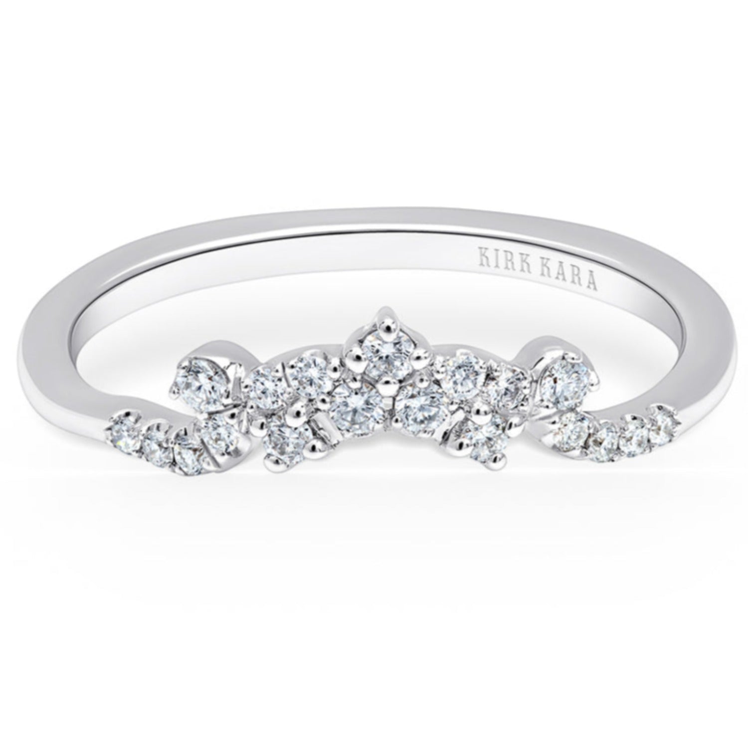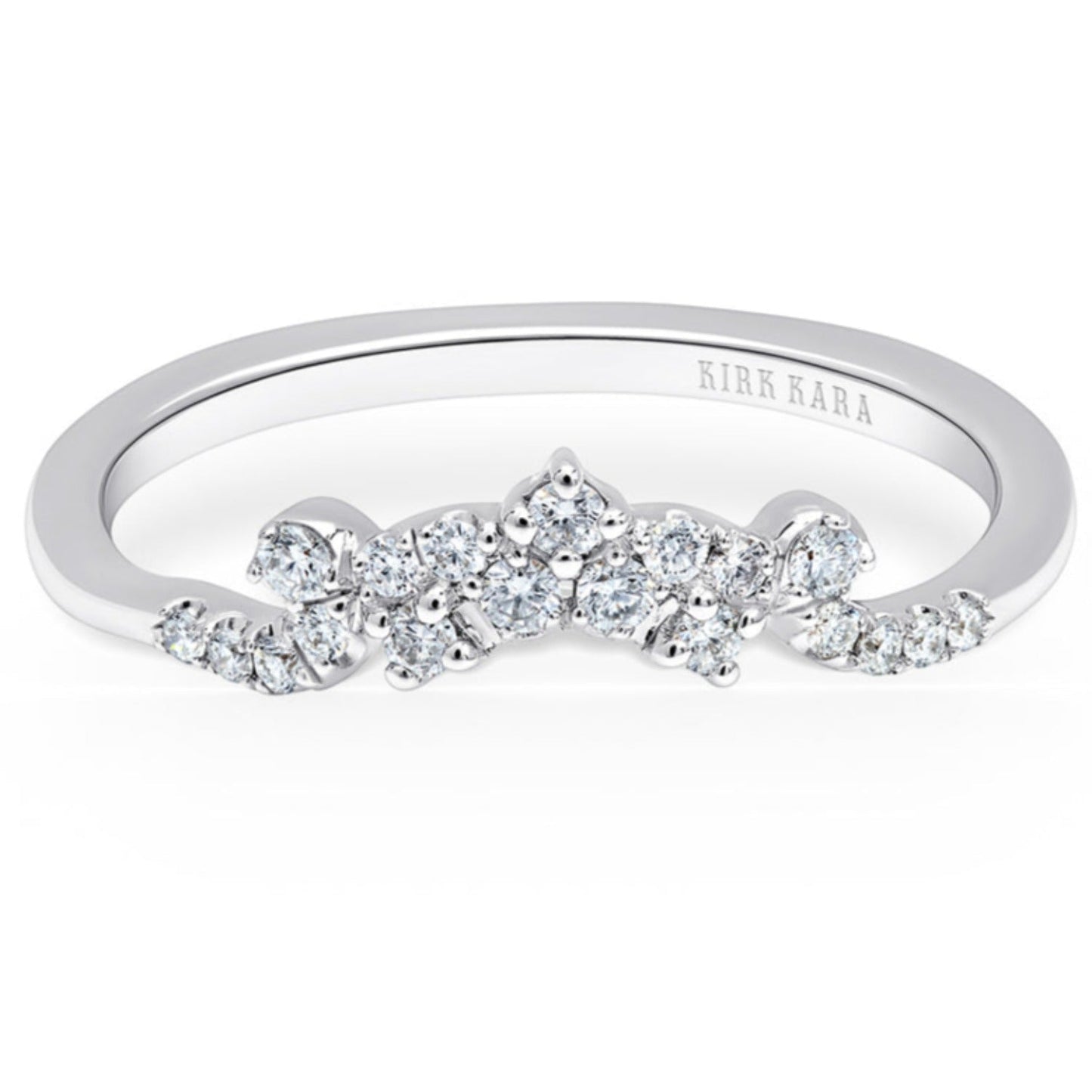 Kirk Kara "Angelique" Petite Scroll Curved Diamond Wedding Band Featuring 0.19 Carats Round Cut Prong Set Diamonds
