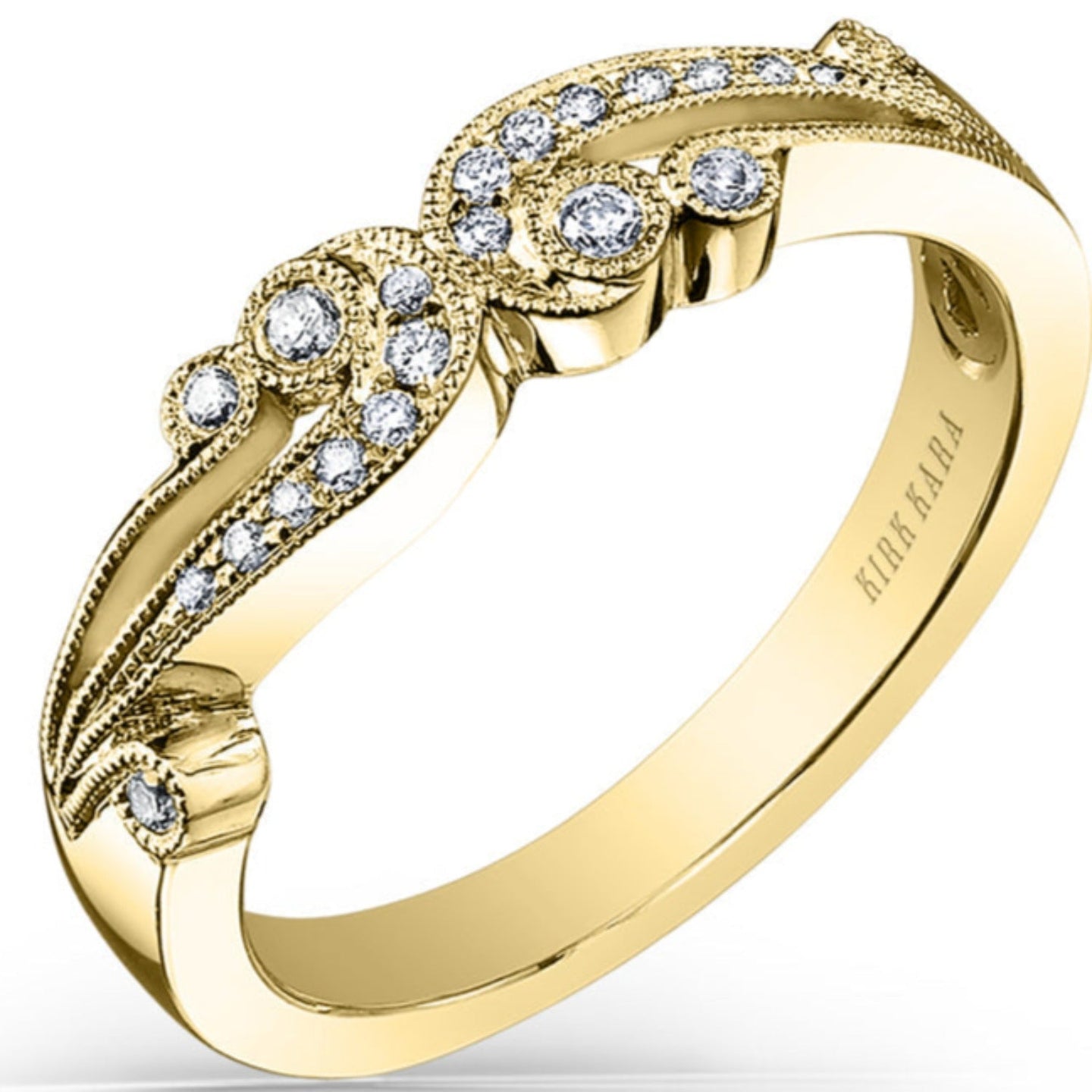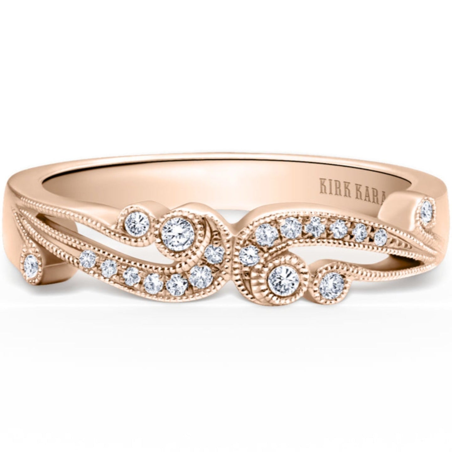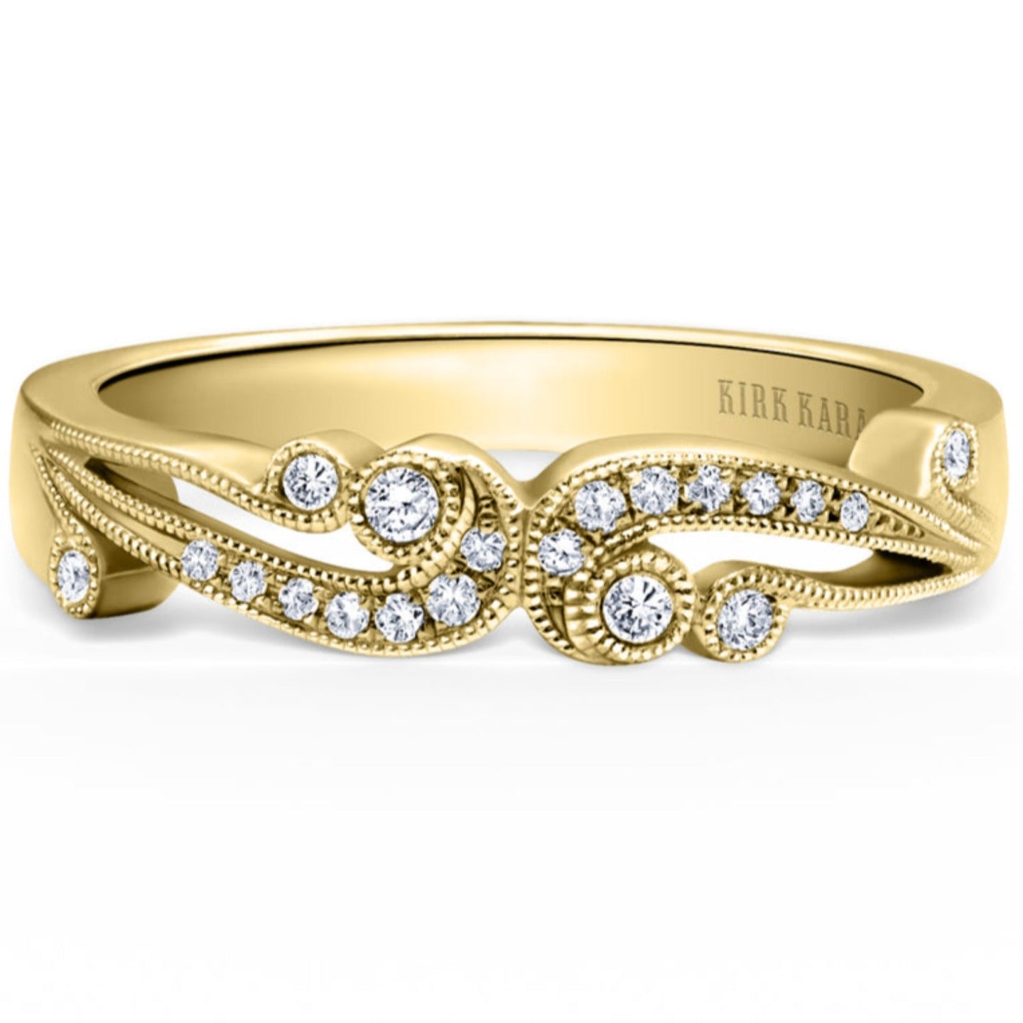 Kirk Kara "Angelique" Vintage Styled Diamond Wedding Band Featuring 0.16 Carats Total Weight White Diamonds and Scroll Work with Milgrain Details
