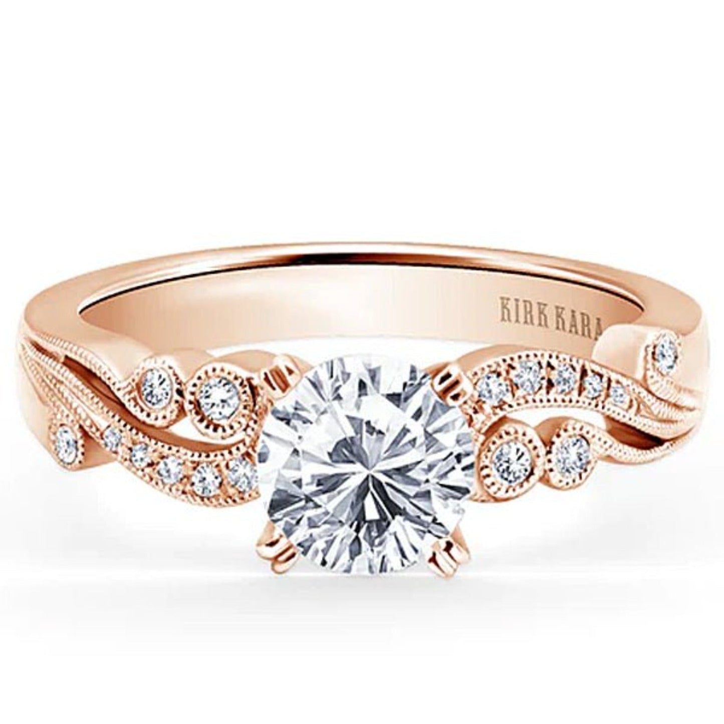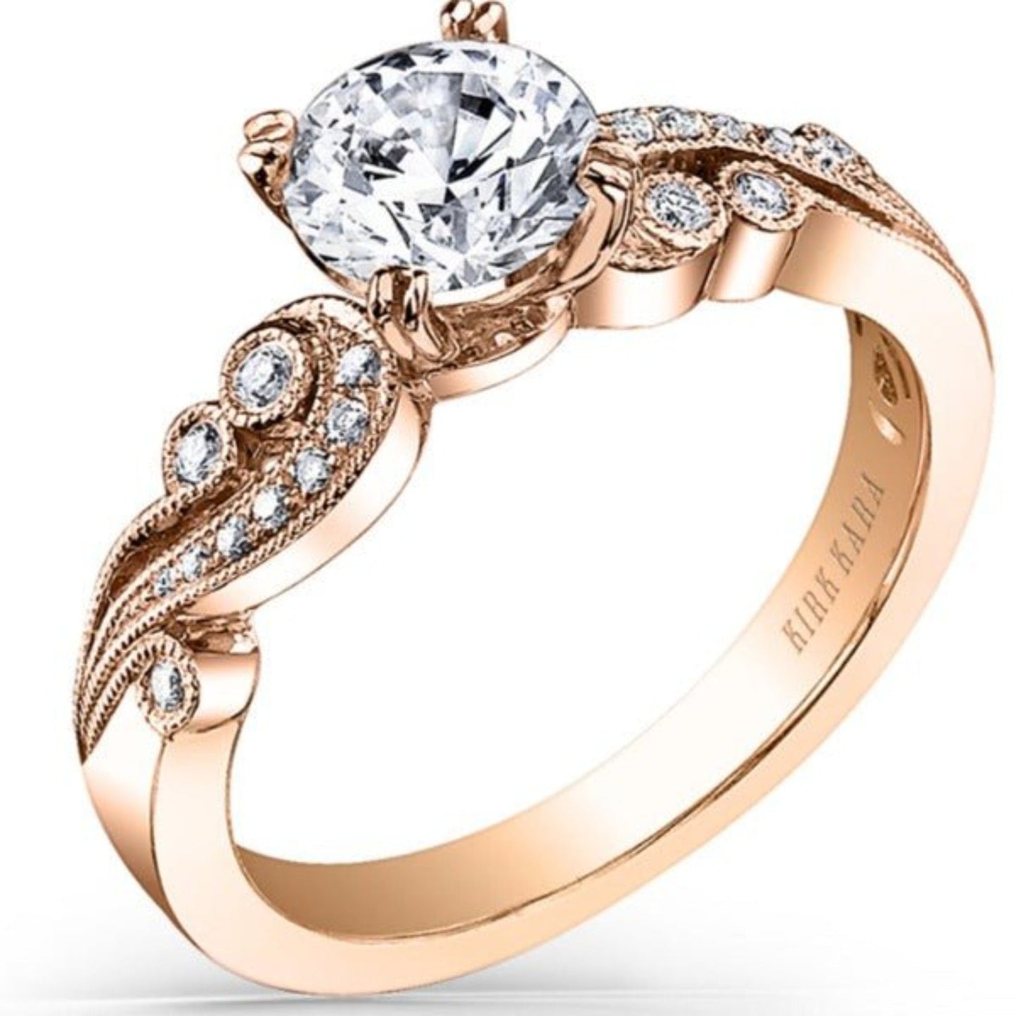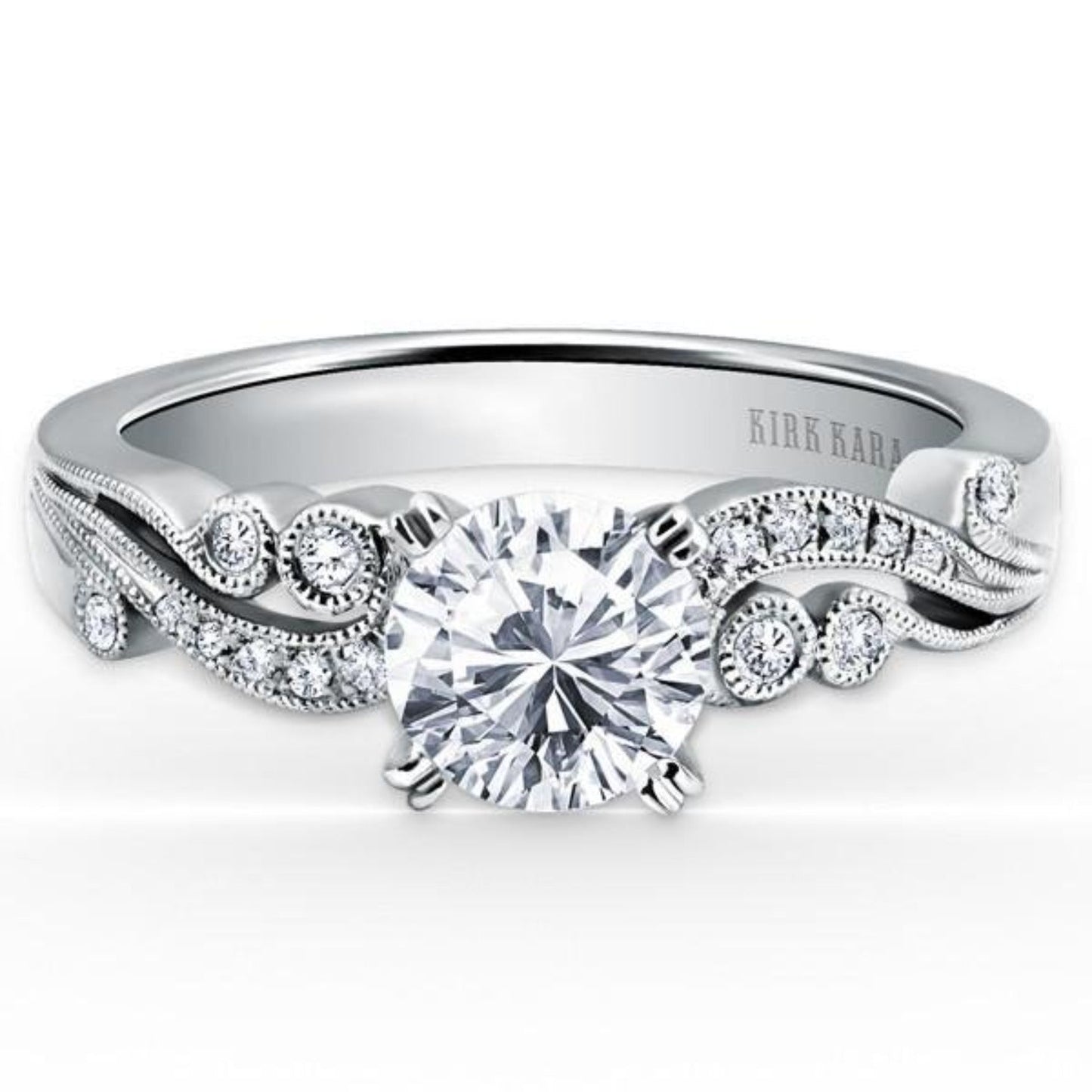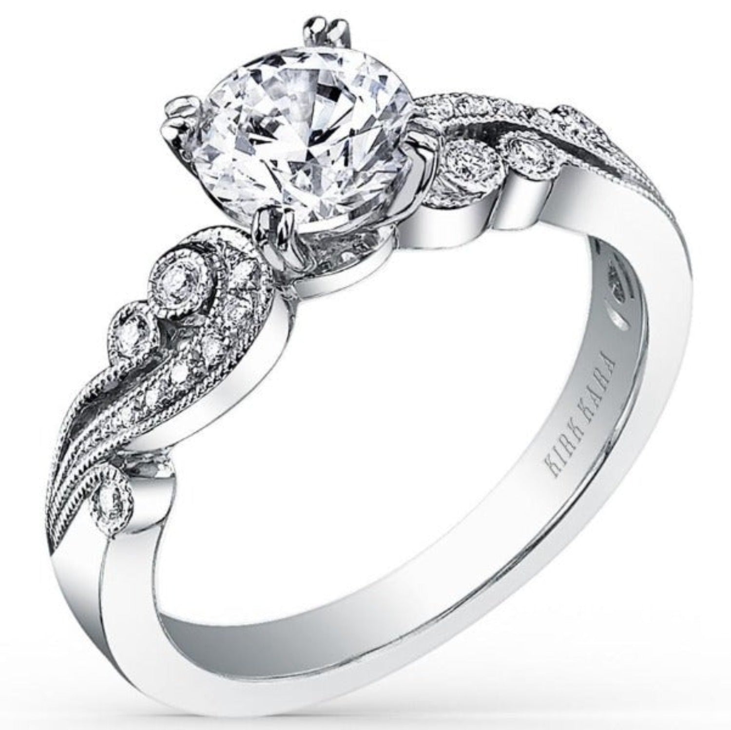 Kirk Kara "Angelique" Vintage Styled Diamond Engagement Ring Featuring Scroll Work with 0.14 Carats Total Weight Round White Diamonds *2011 Jewelers Choice Winner "Best Bridal Design"