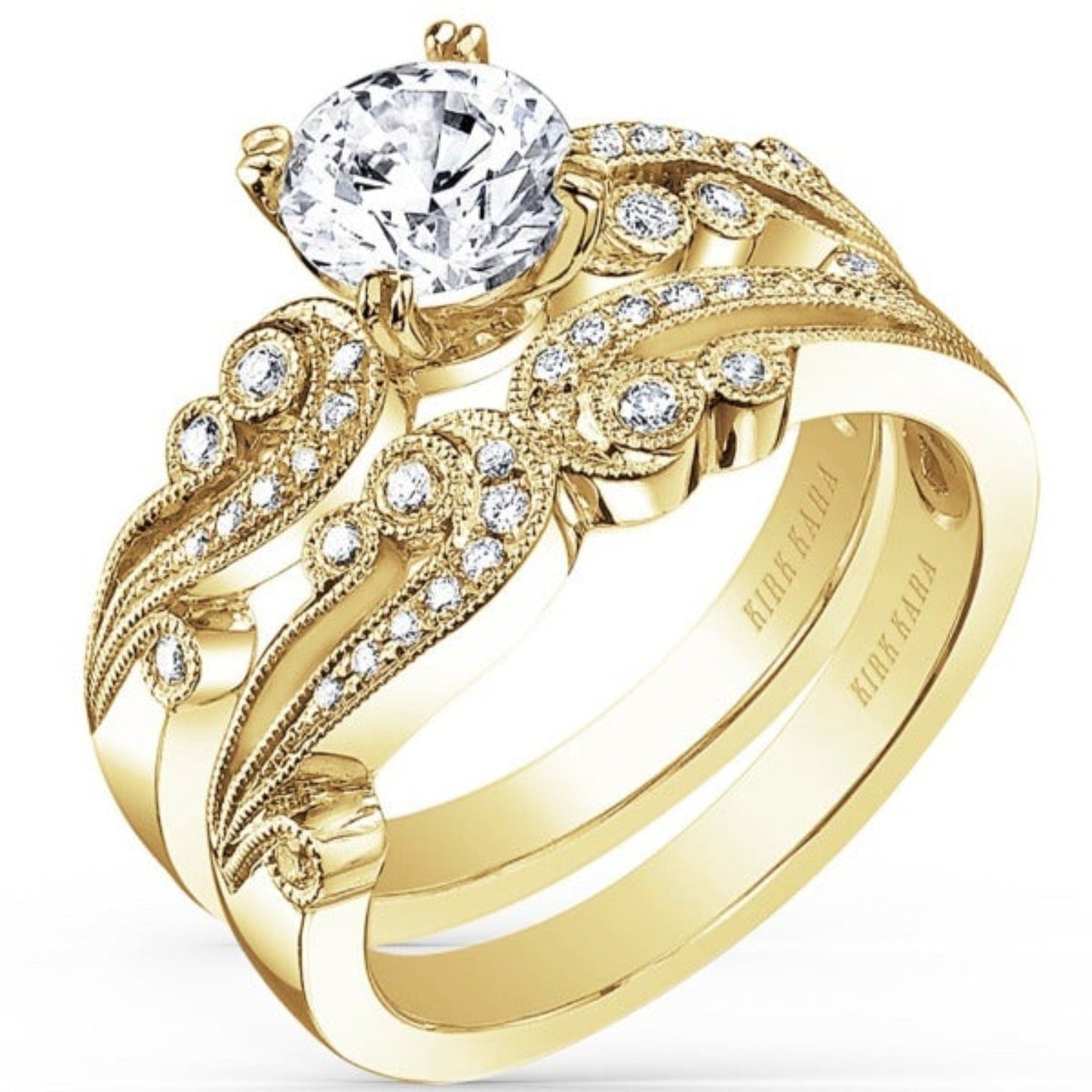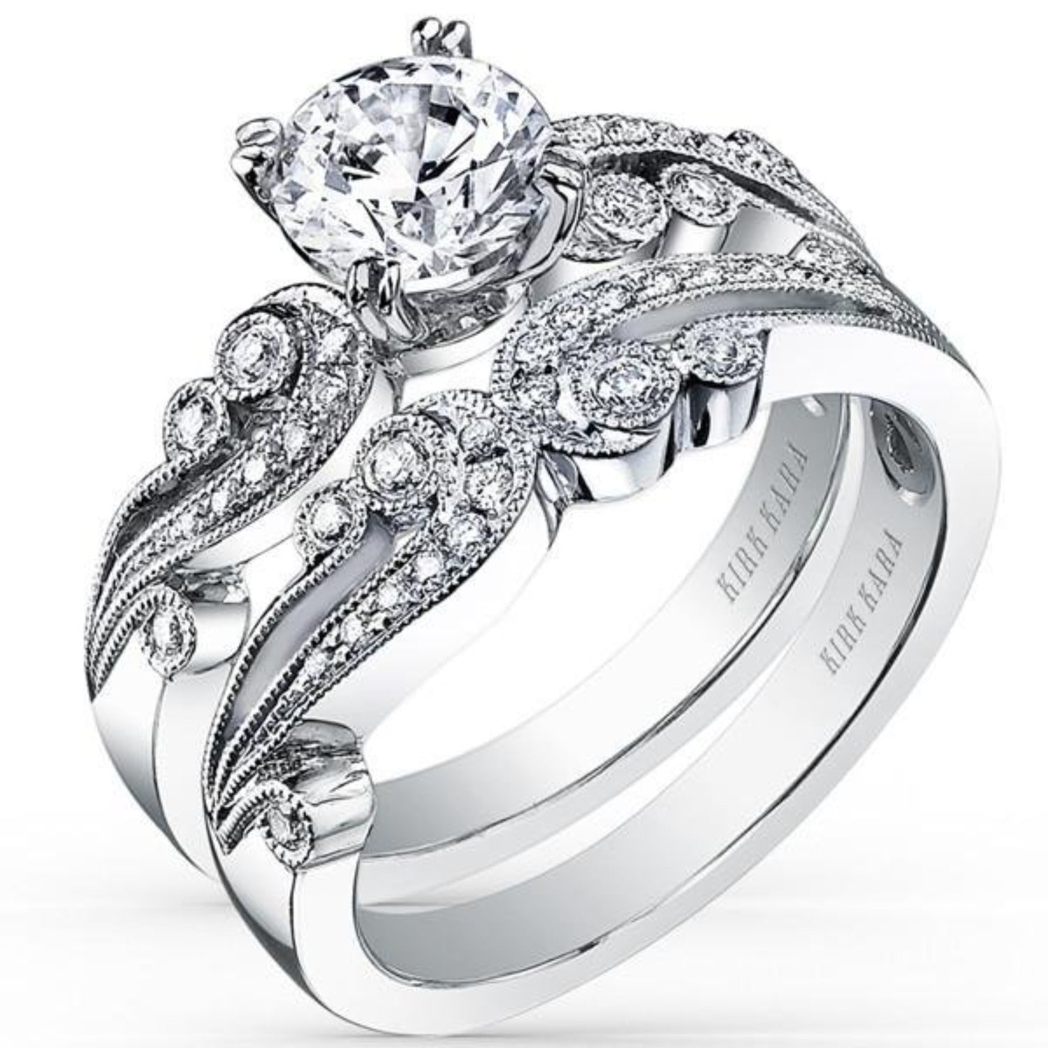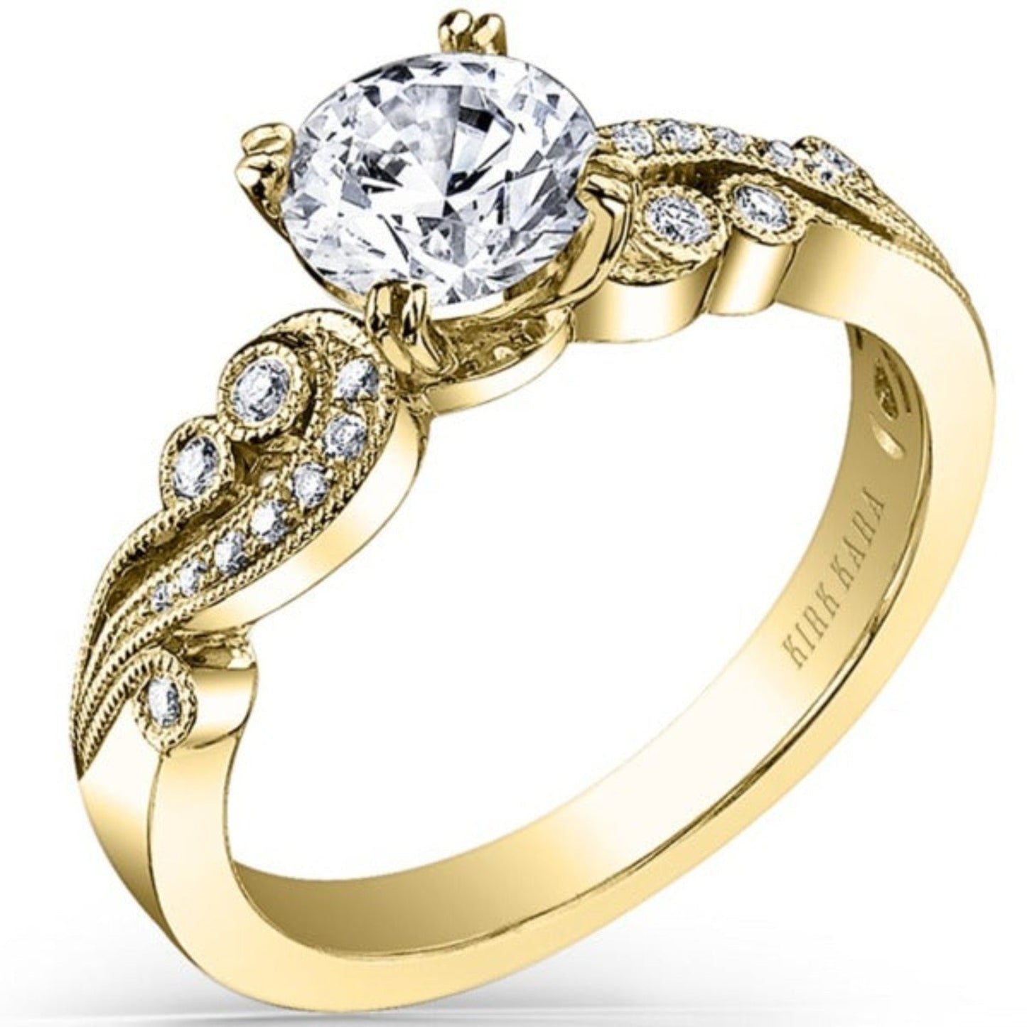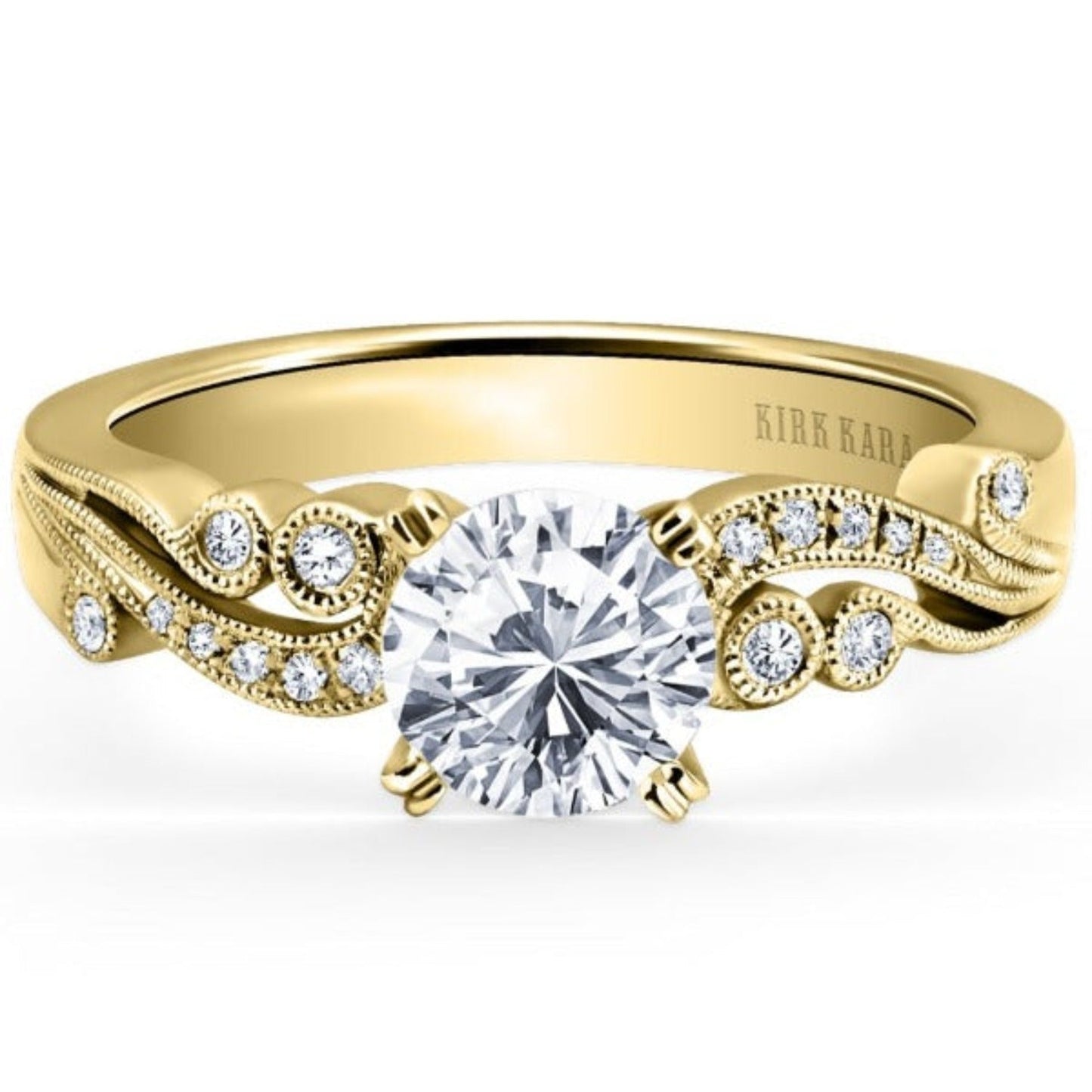 Kirk Kara "Angelique" Vintage Styled Diamond Engagement Ring Featuring Scroll Work with 0.14 Carats Total Weight Round White Diamonds *2011 Jewelers Choice Winner "Best Bridal Design"