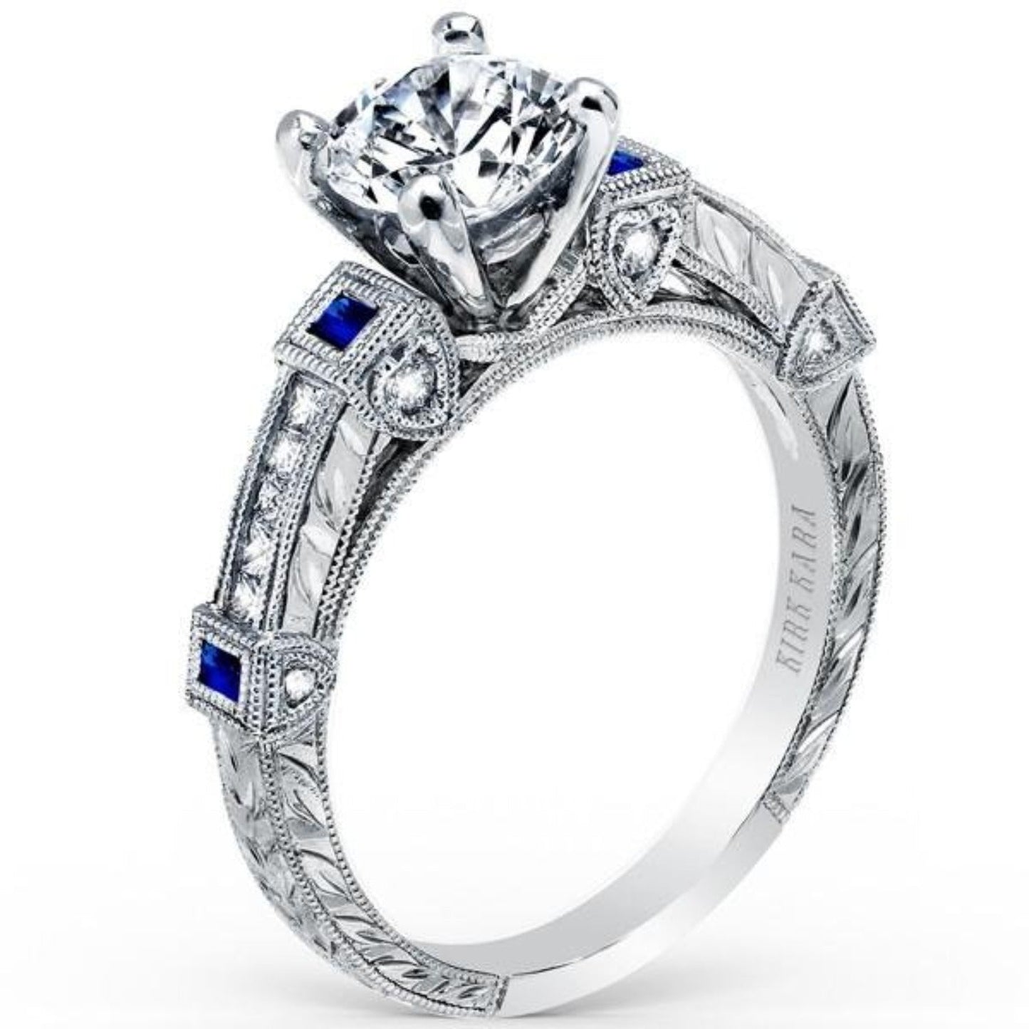 Kirk Kara "Carmella" Blue Sapphire Bezel Set Diamond Engagement Ring