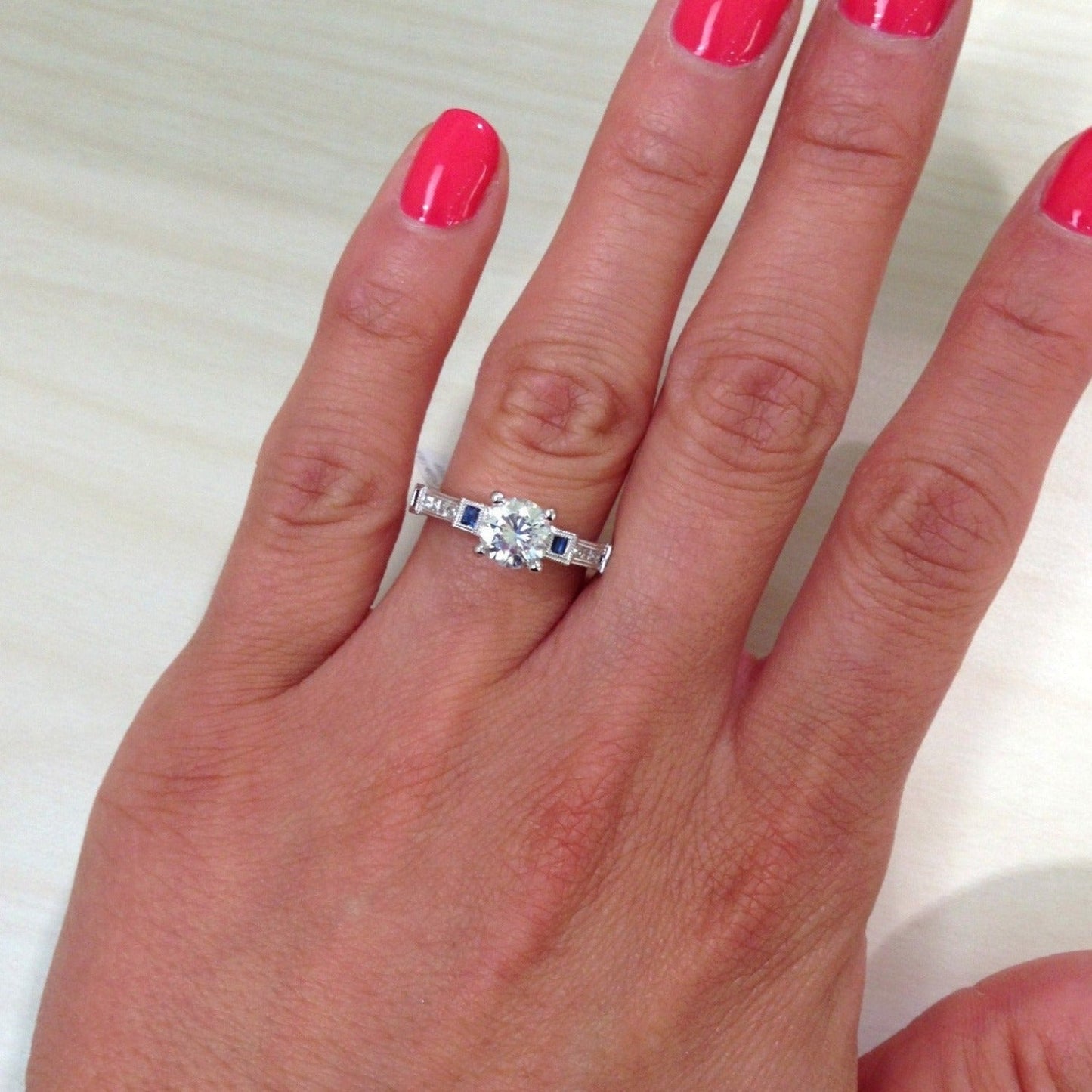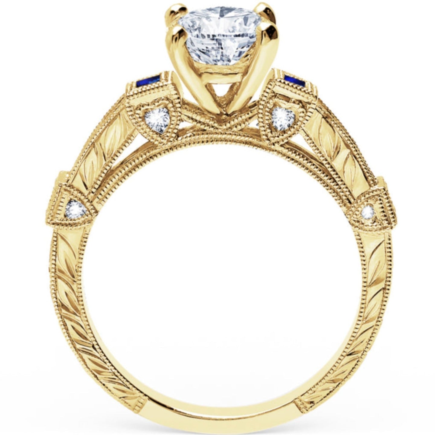 - Ring can be made to accommodate any size or shape diamond, moissanite or gemstone. Shown with a 1.00 carat round cut center stone (approx 6.5mm x 6.5mm)