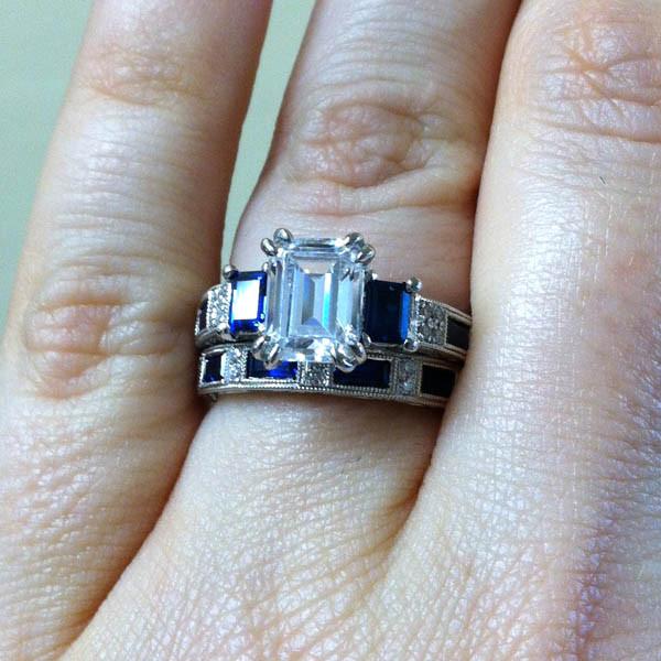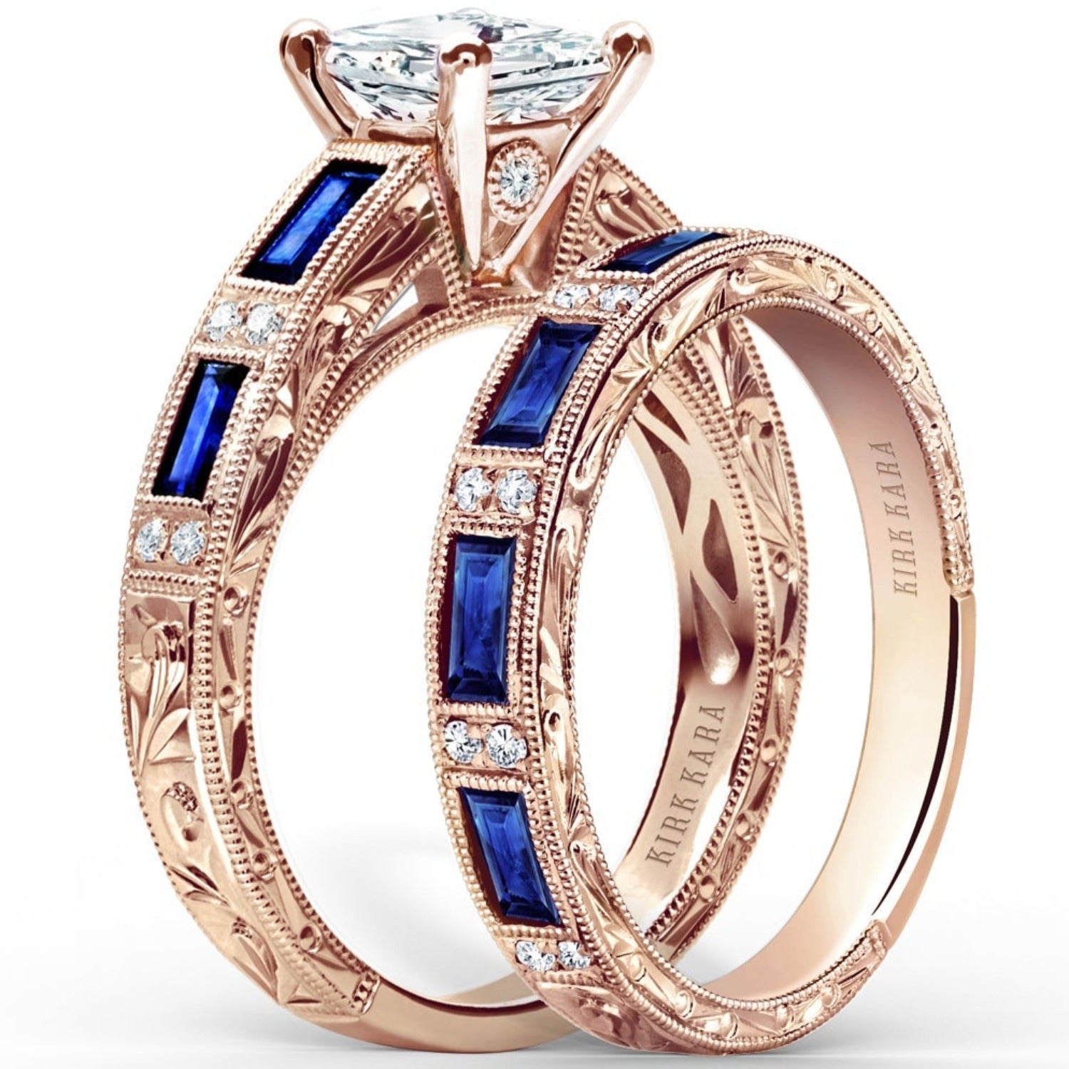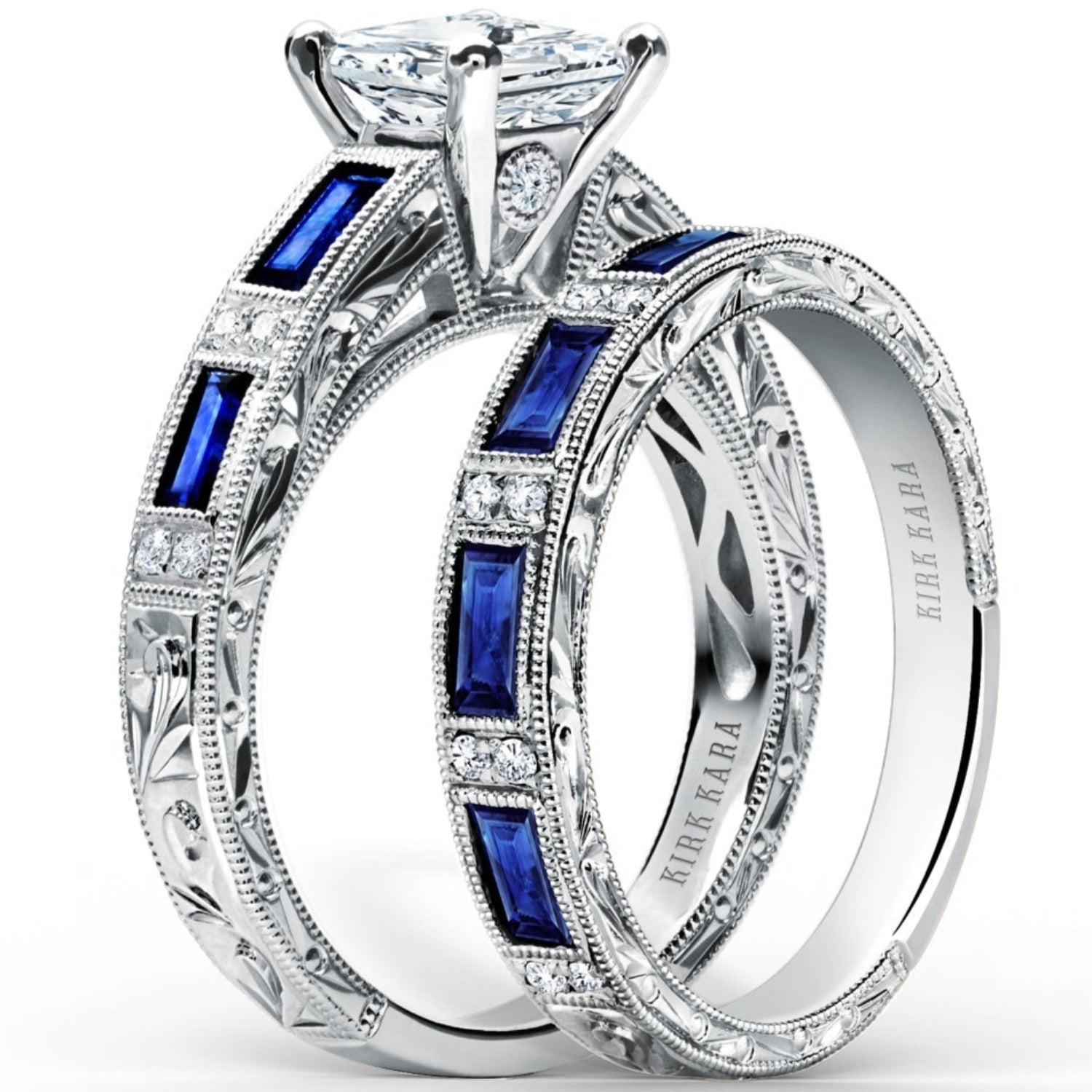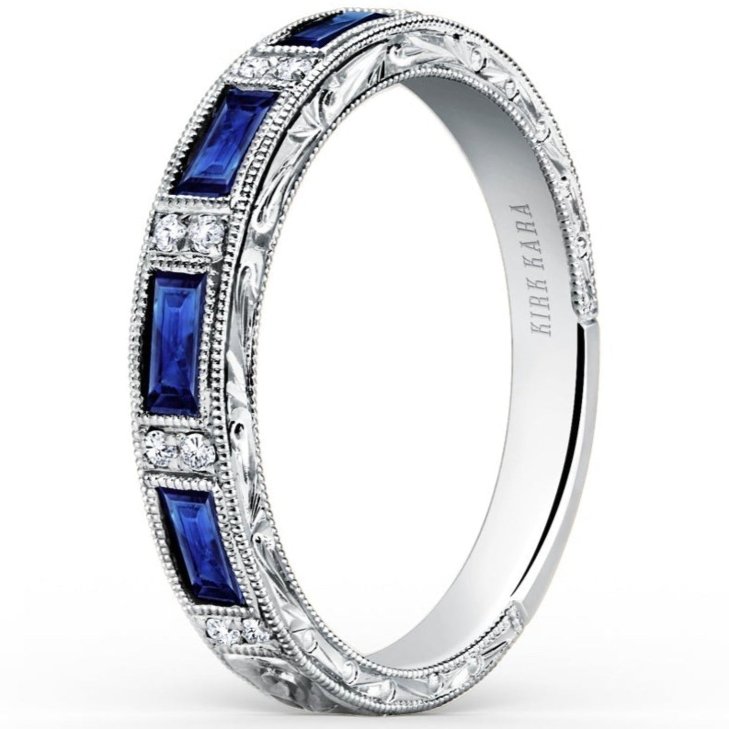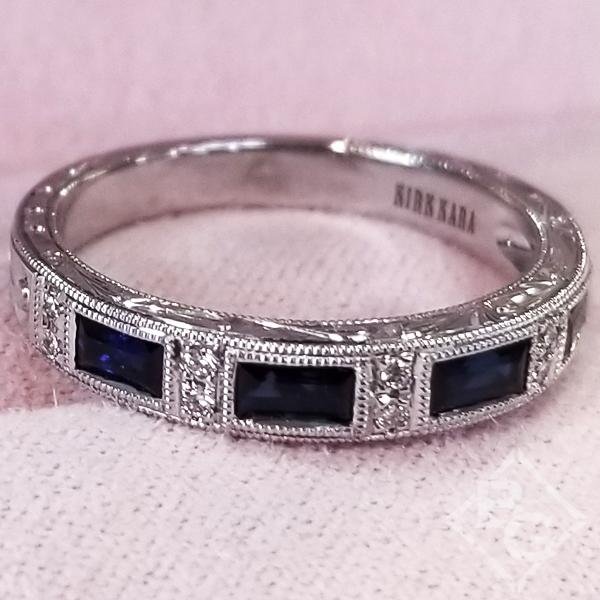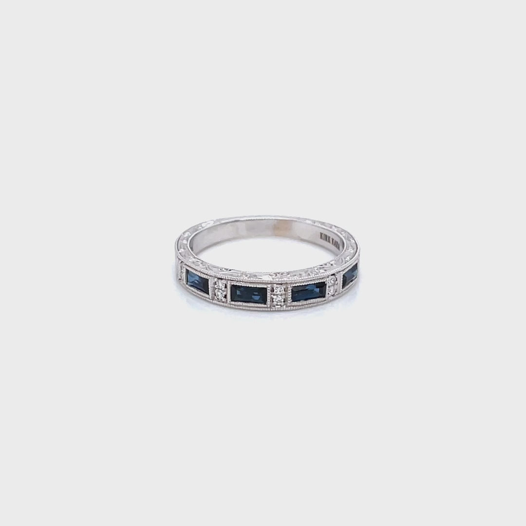 Kirk Kara "Charlotte" Blue Sapphire Baguette Cut Diamond Wedding Band