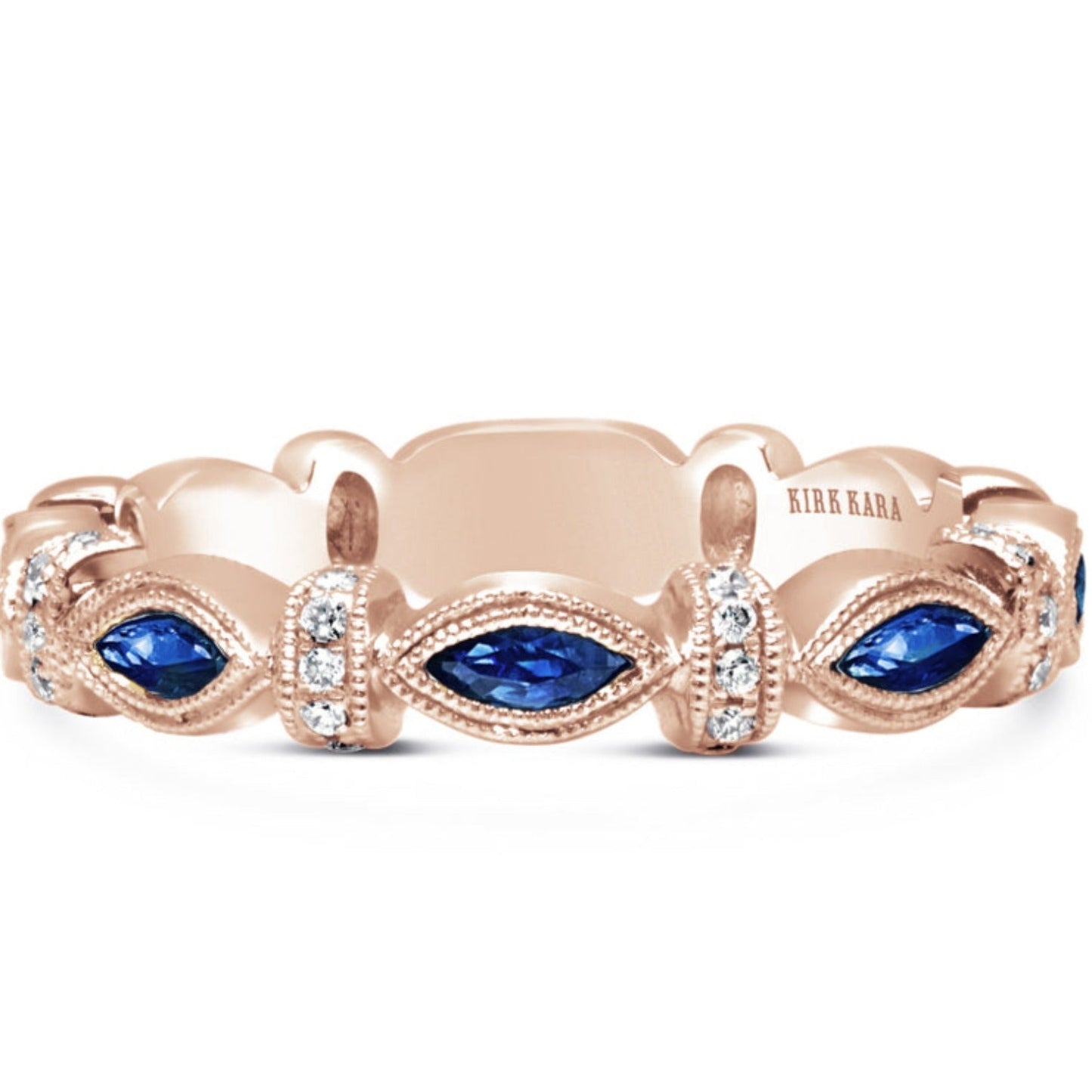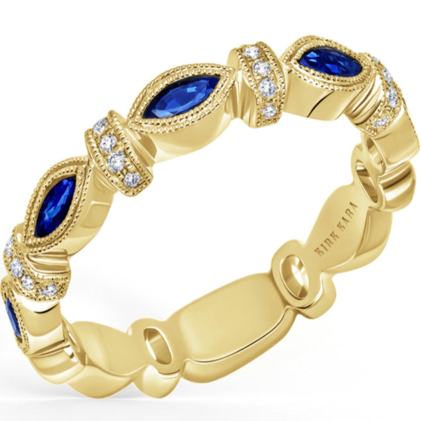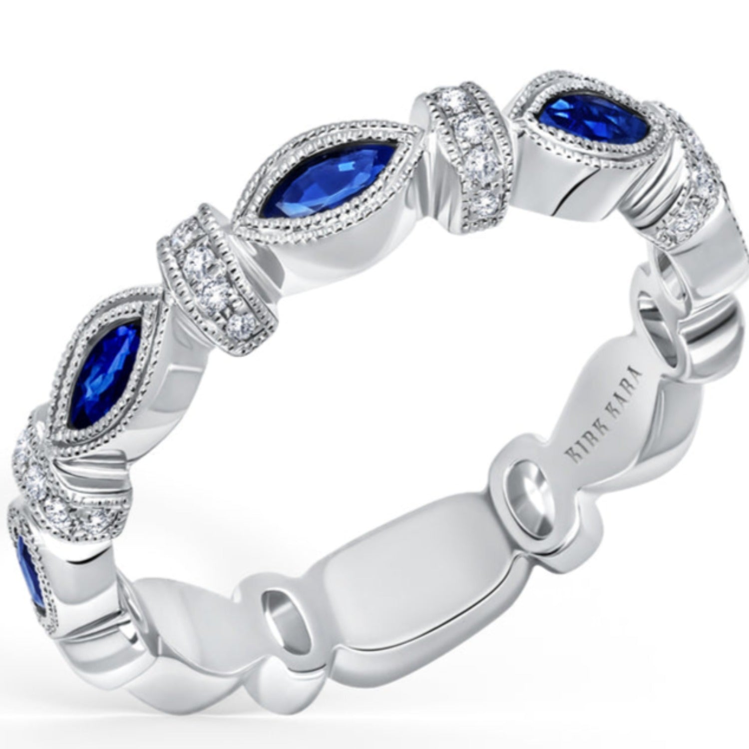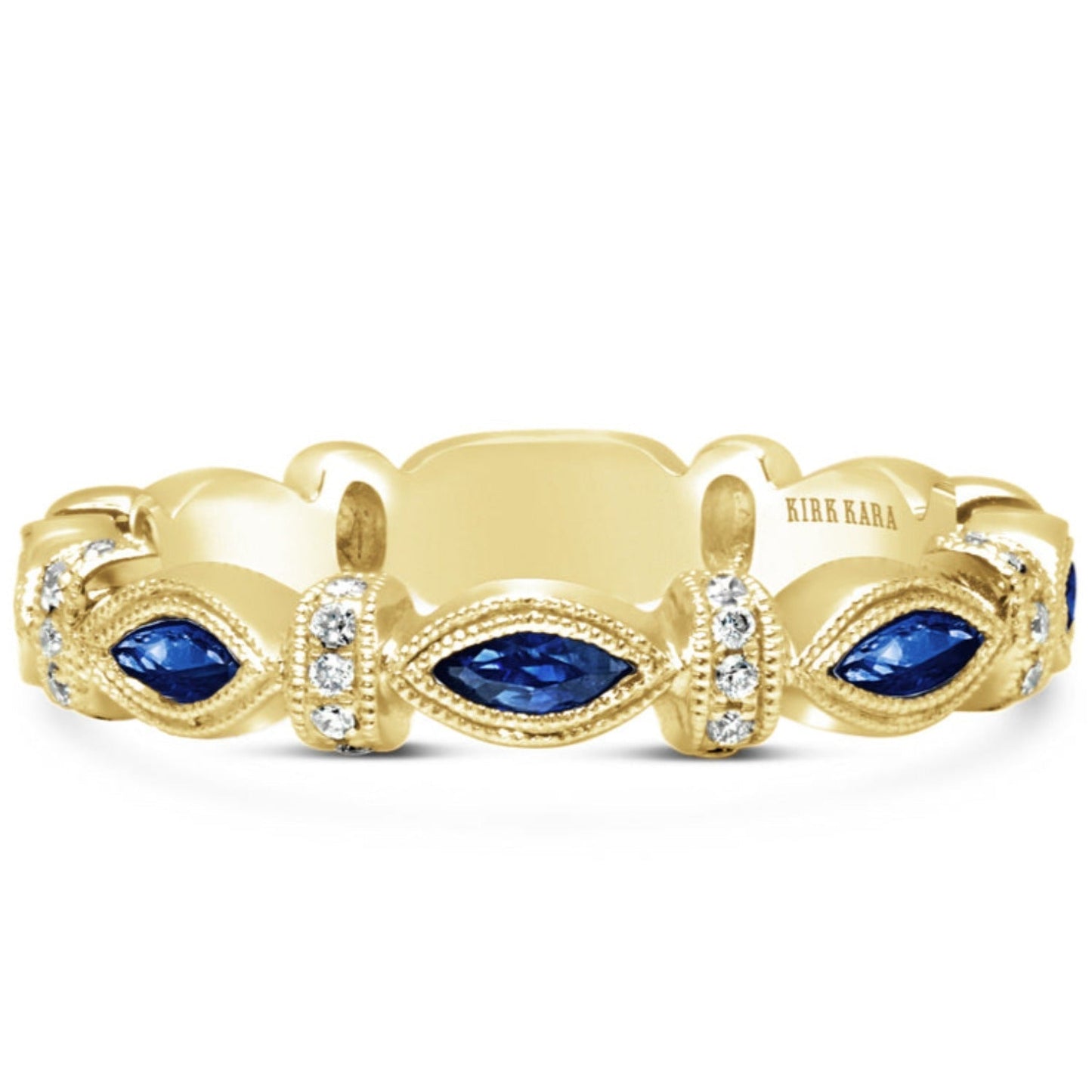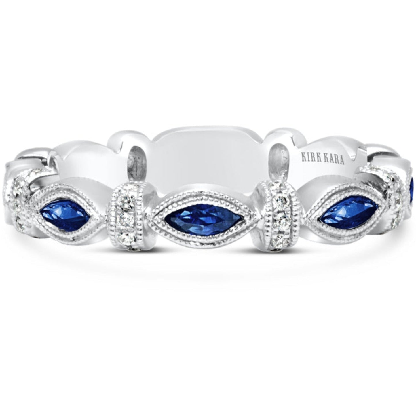 Kirk Kara "Dahlia" East-West Set Blue Sapphire Marquise Cut Wedding Band