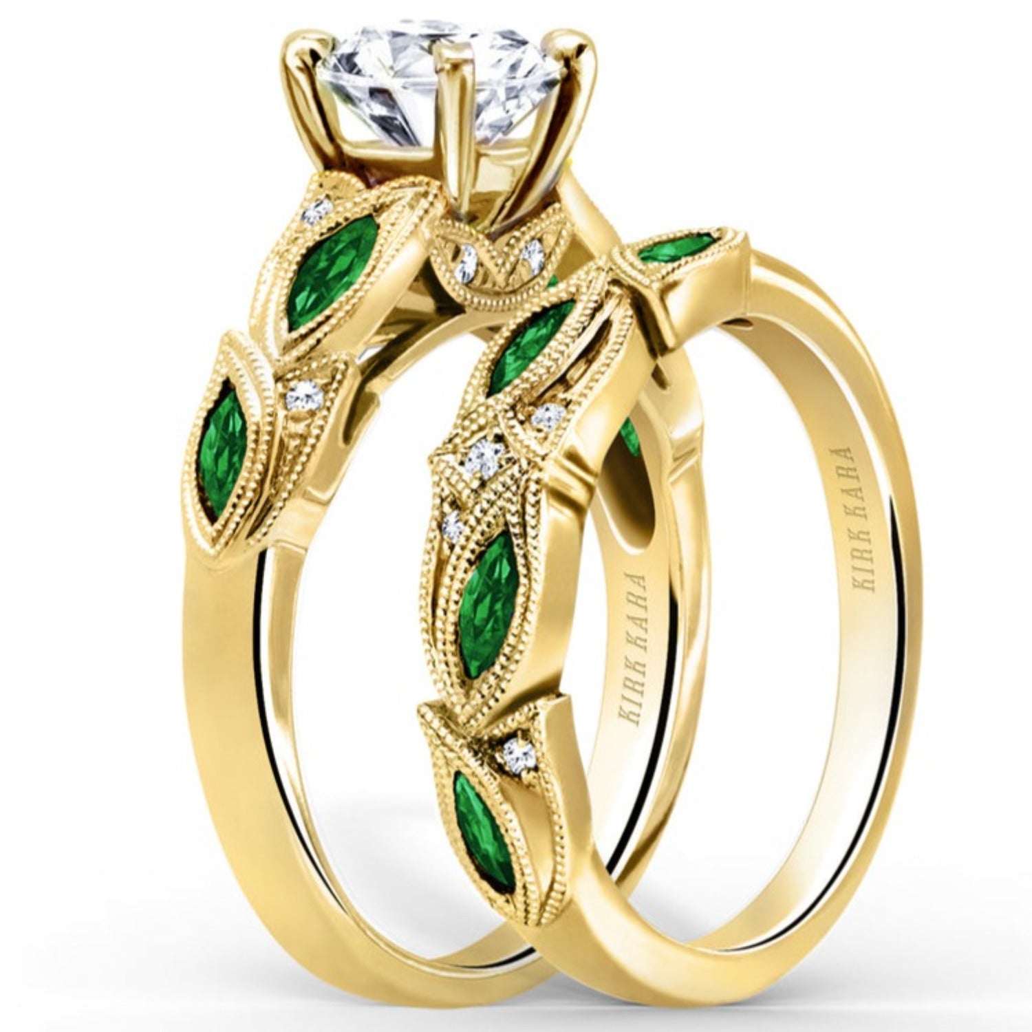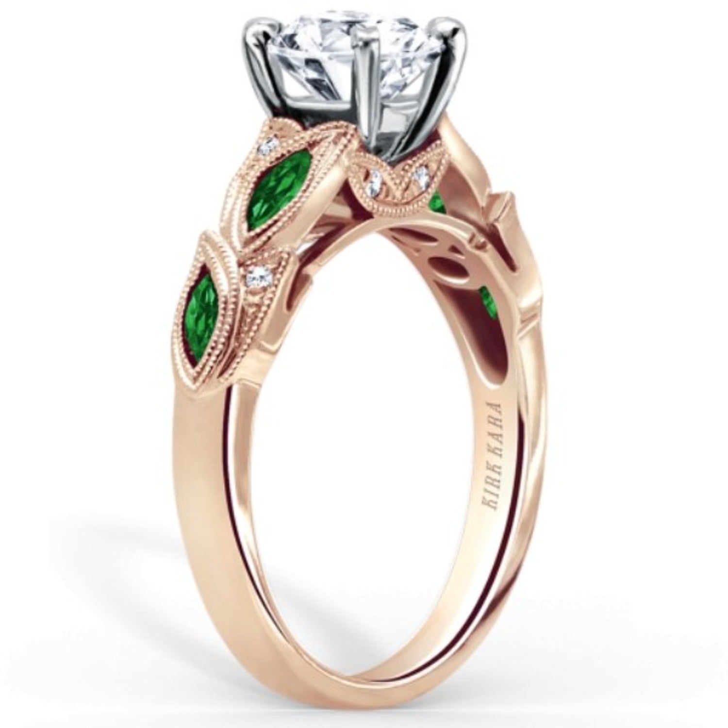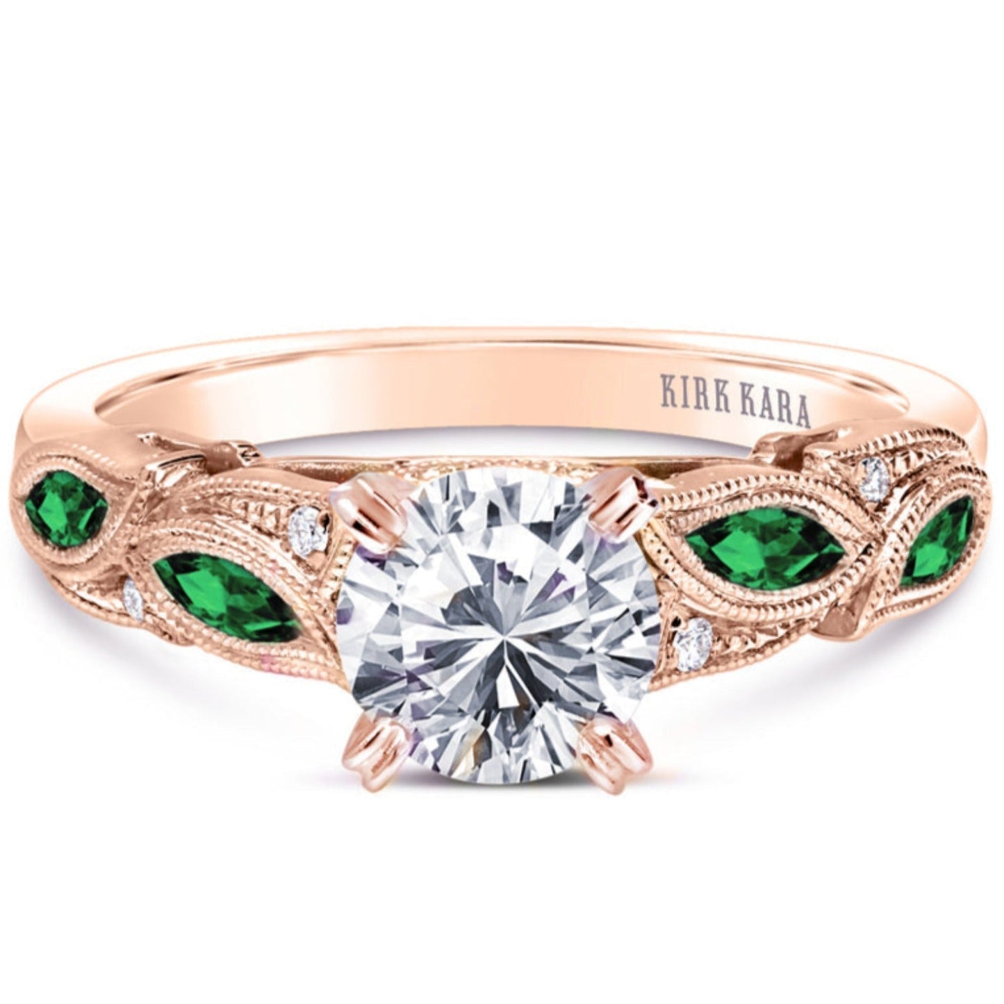 All rings are fully customizable by Kirk Kara should you prefer slight or major changes to the style you see. Alteration possibilities include alternate color gemstones, styling or metal preference.