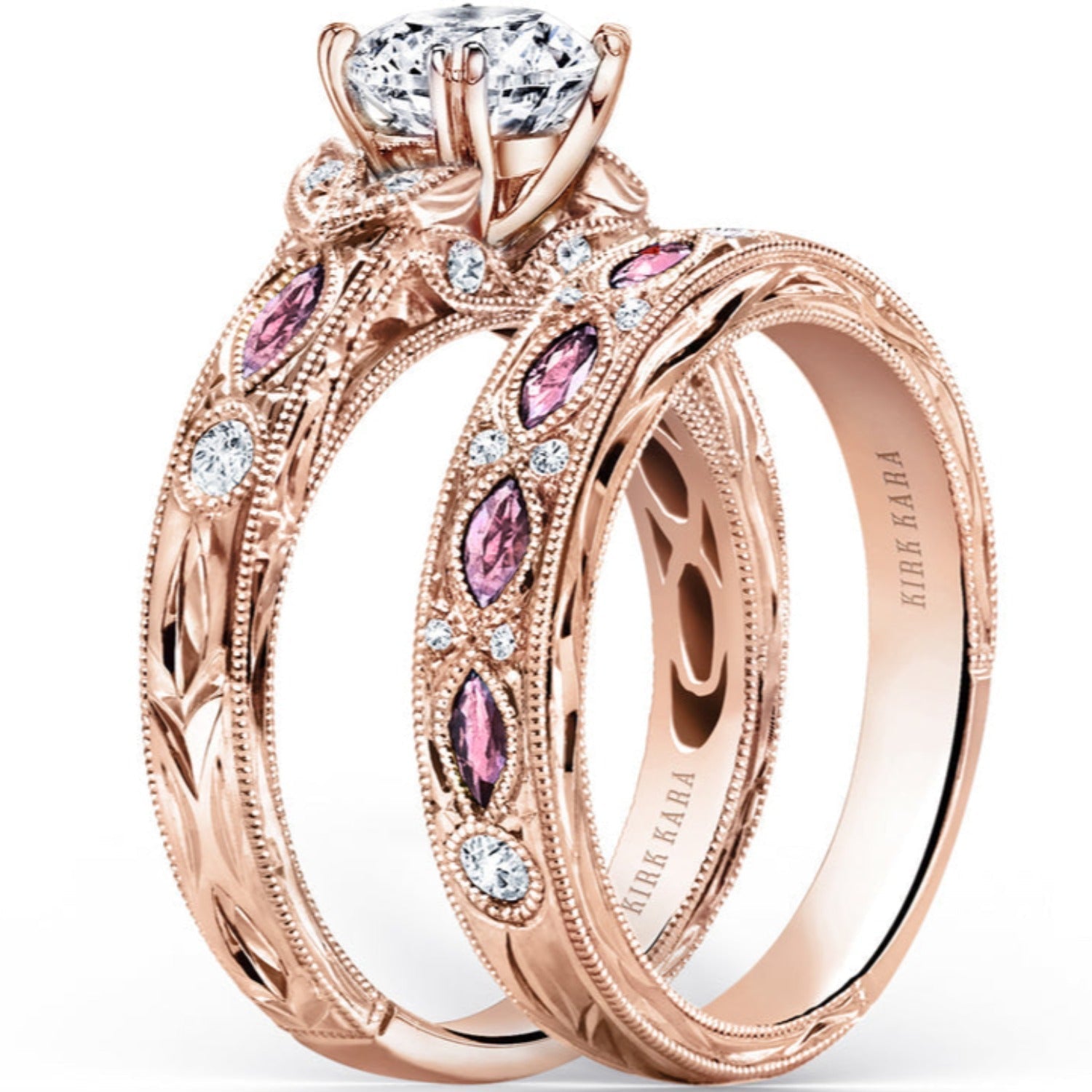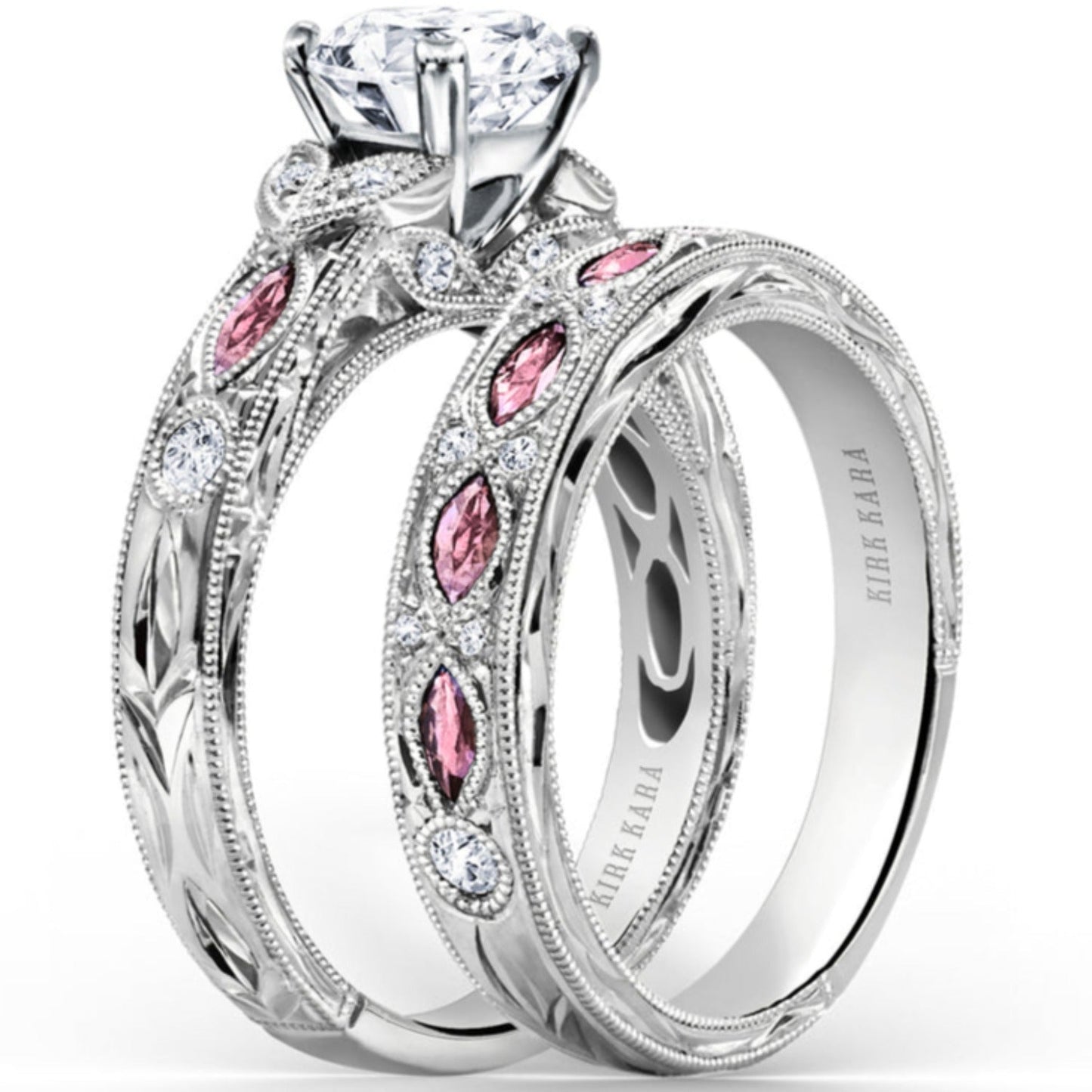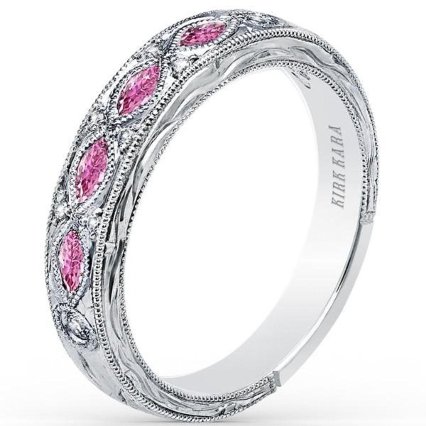 Kirk Kara "Dahlia" Marquise Cut Pink Sapphire Diamond Wedding Band