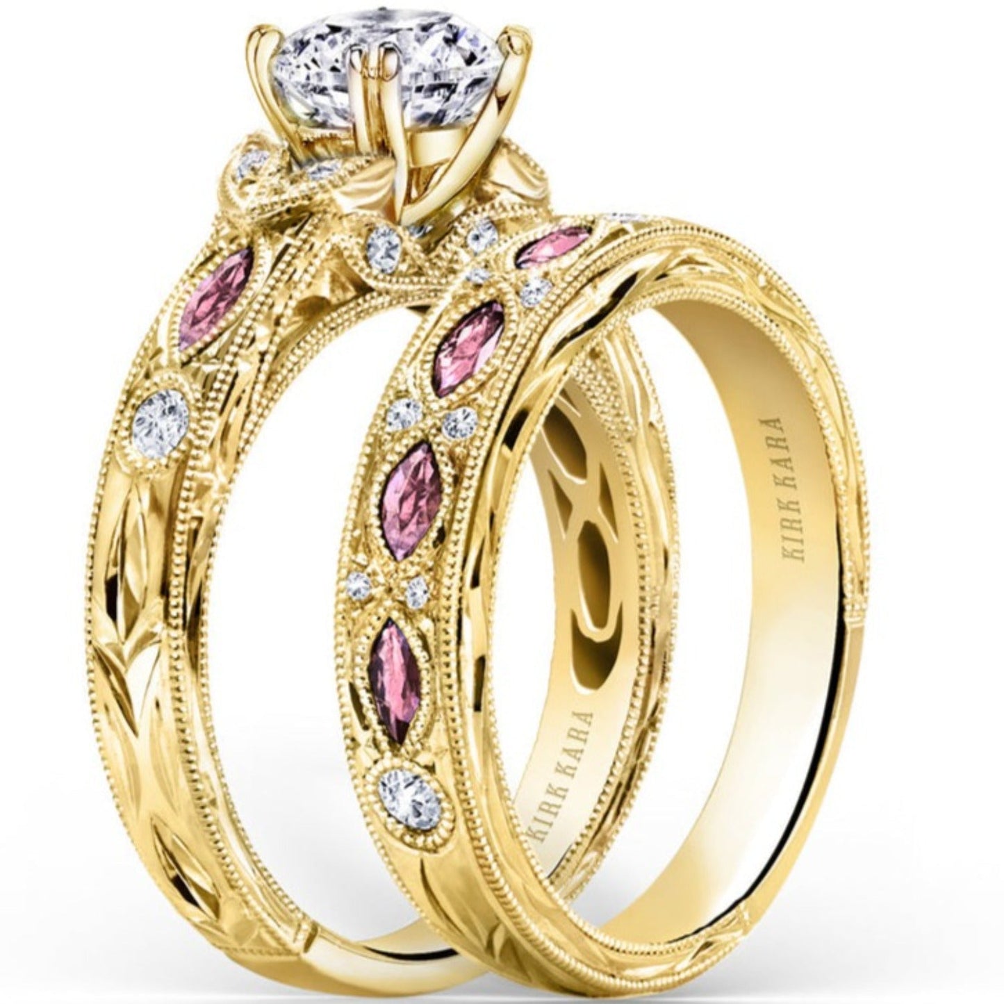 All rings are fully customizable by Kirk Kara should you prefer slight or major changes to the style you see. Alteration possibilities include alternate color gemstones, styling or metal preference.