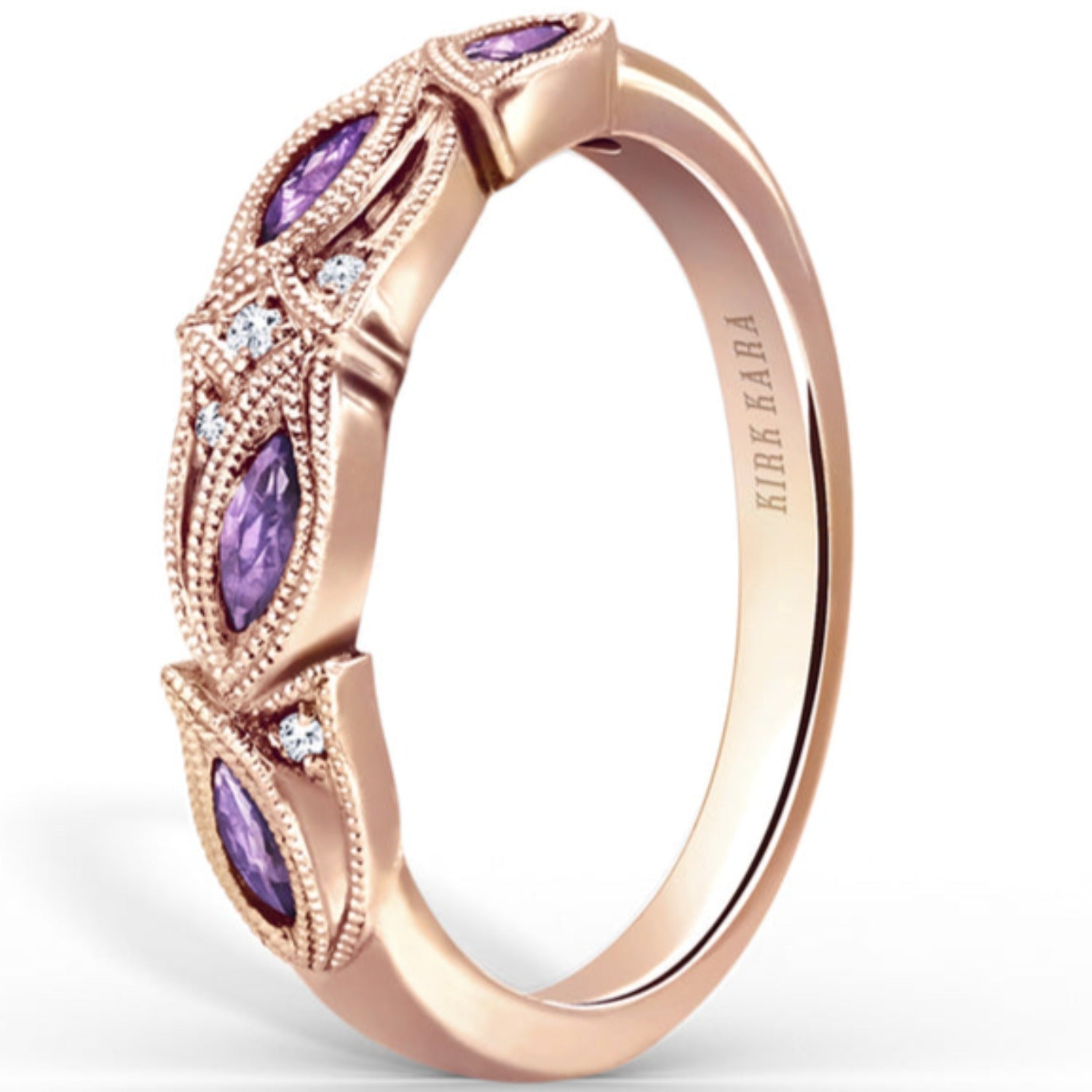 Kirk Kara "Dahlia" Purple Amethyst Marquise Leaf Shaped Wedding Band