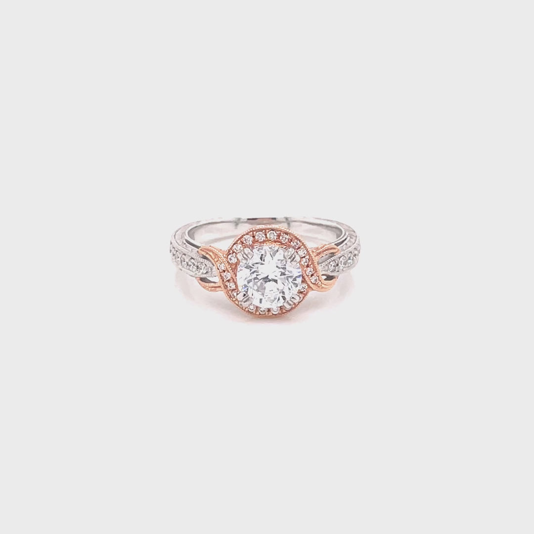 Kirk Kara "Pirouetta" Halo Diamond Engagement Ring Featuring 0.23 Carat Total Weight Round Cut Diamonds with Hand Engraved and Milgrain Detailing