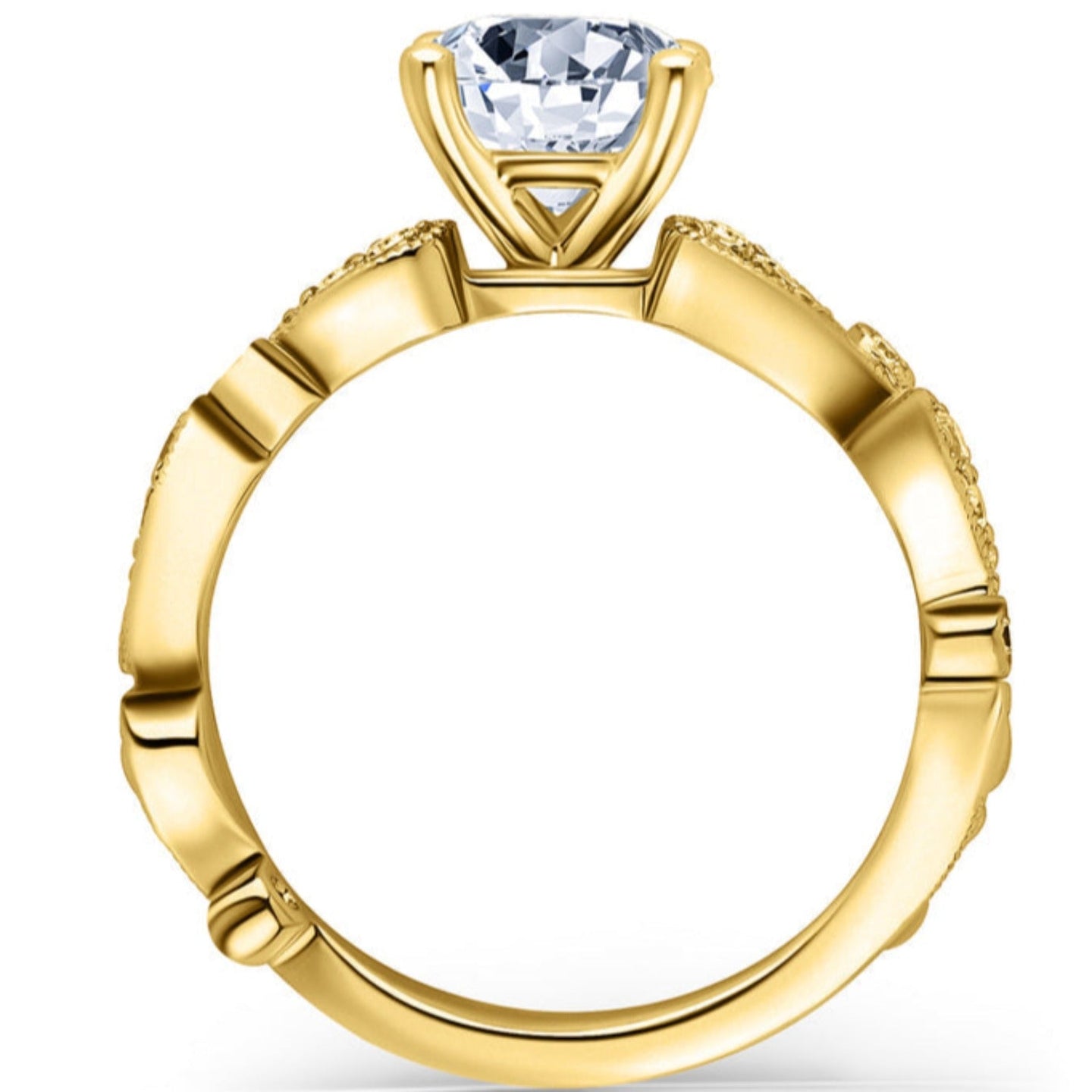 - Ring can be made to accommodate any size or shape diamond. Shown with a 1.00 carat round cut diamond (approx 6.5mm)