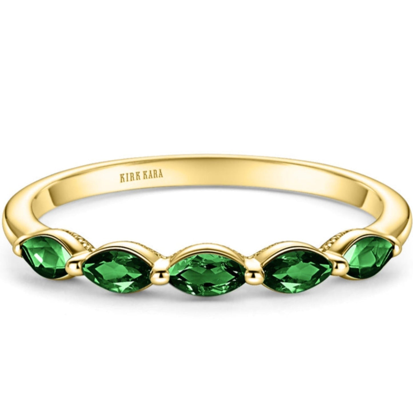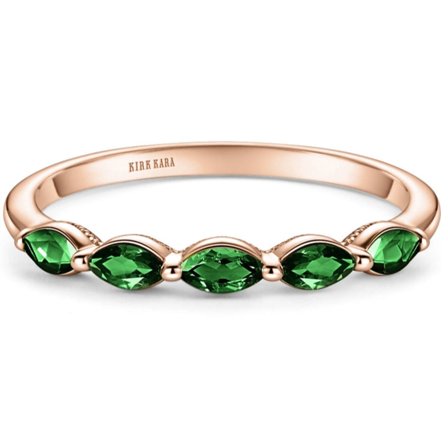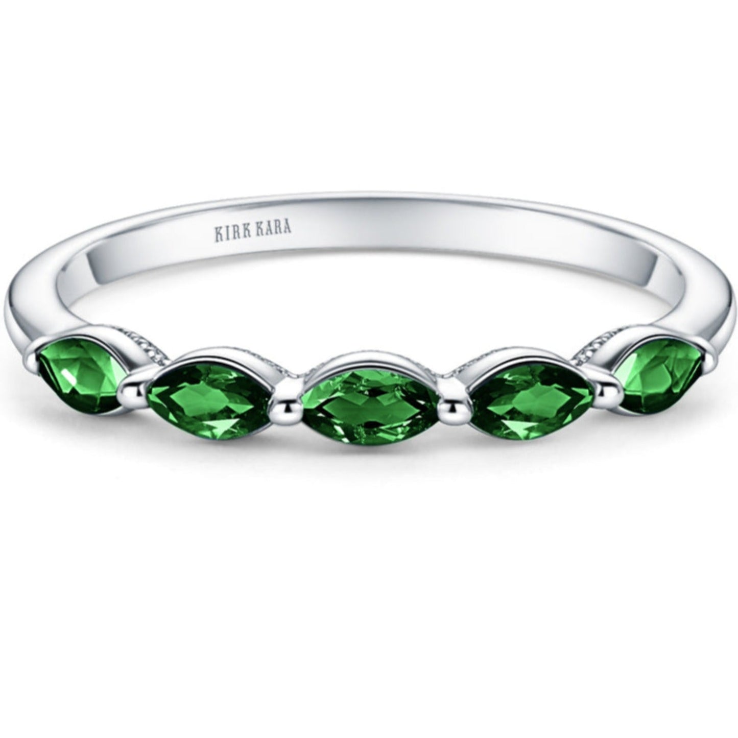 Kirk Kara "Stella" East-West Marquise Set Green Tsavorite Wedding Band