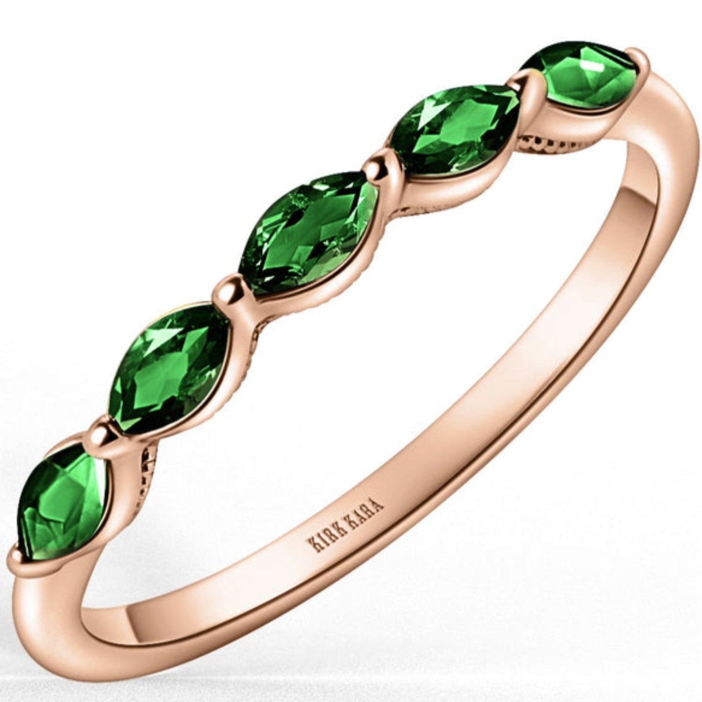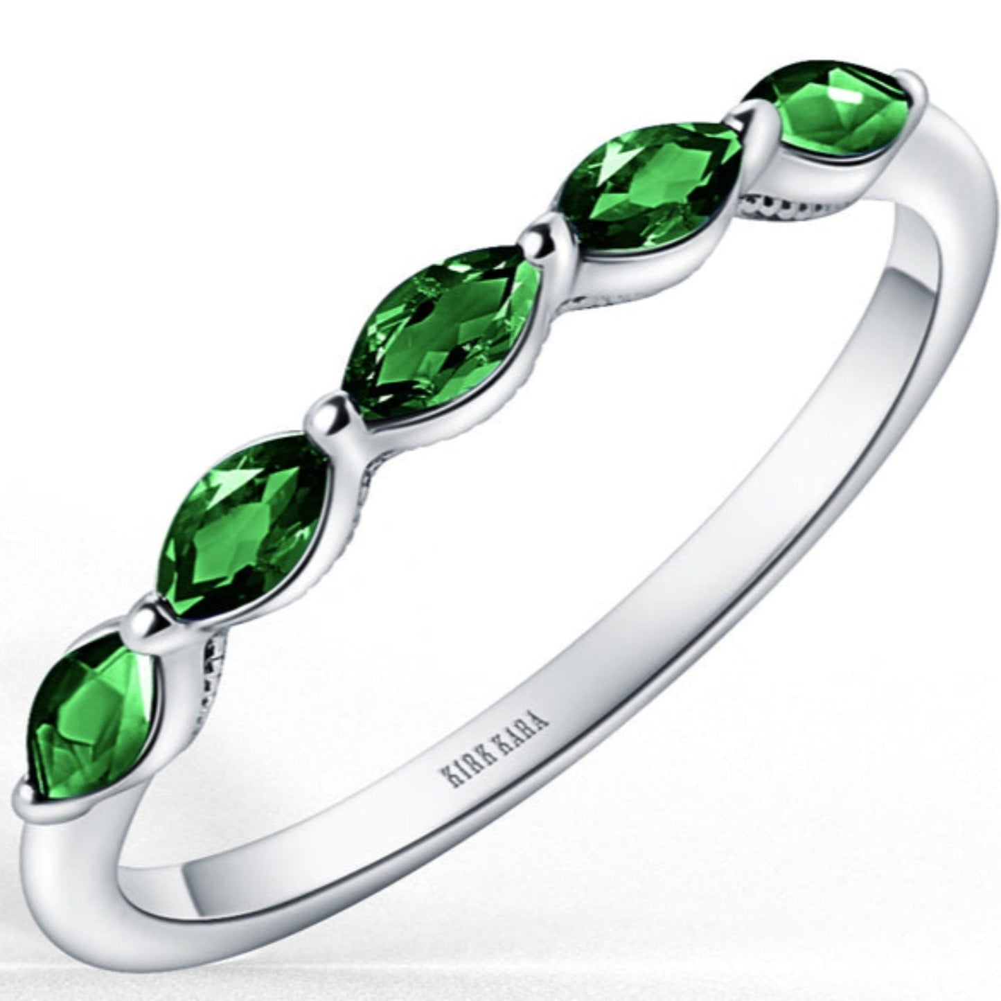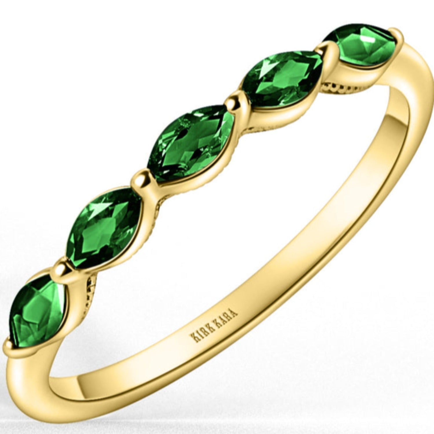 Kirk Kara "Stella" East-West Marquise Set Green Tsavorite Wedding Band