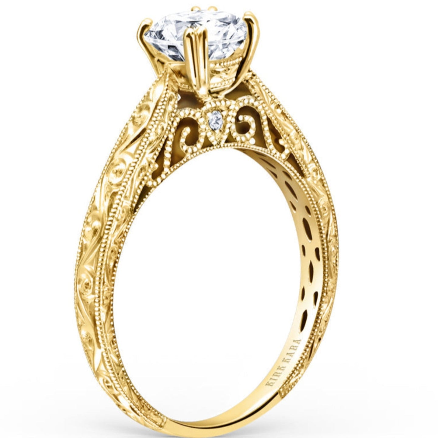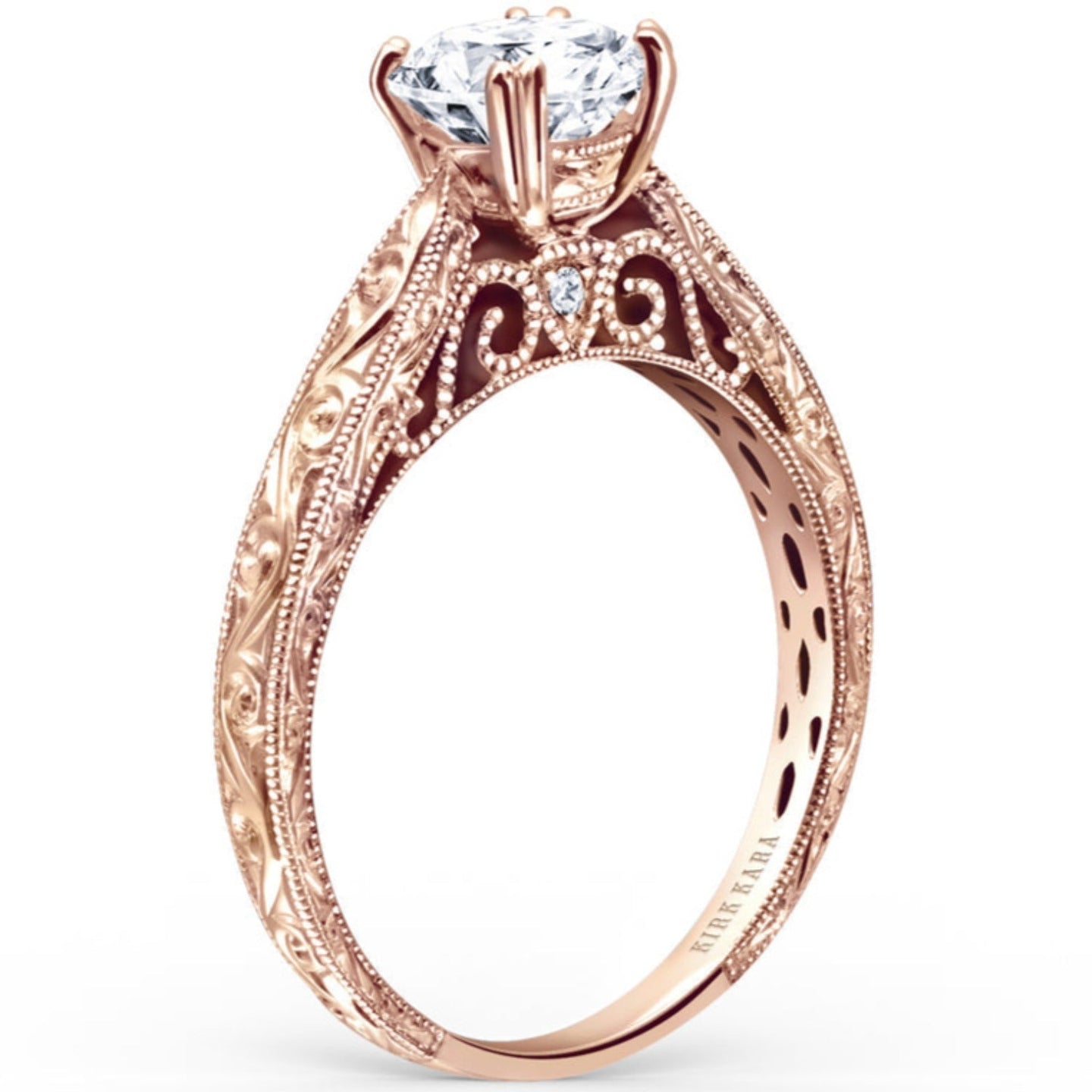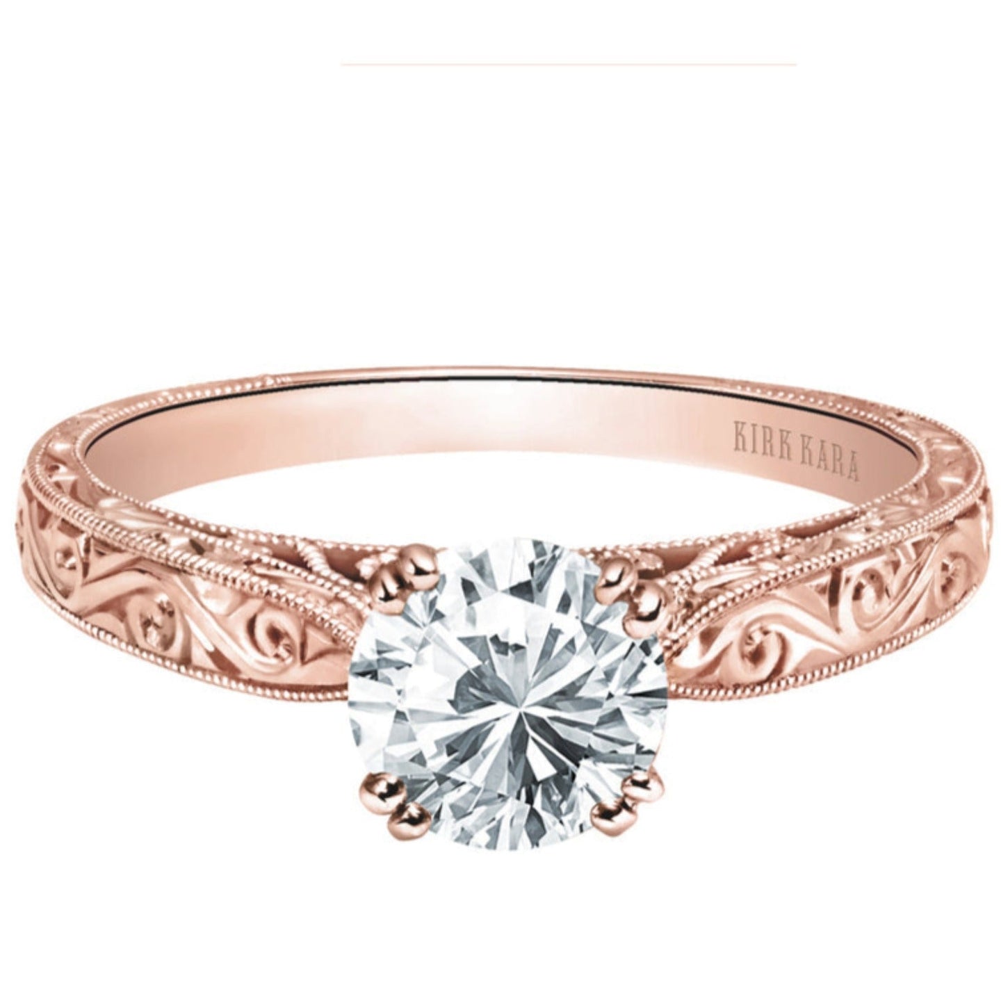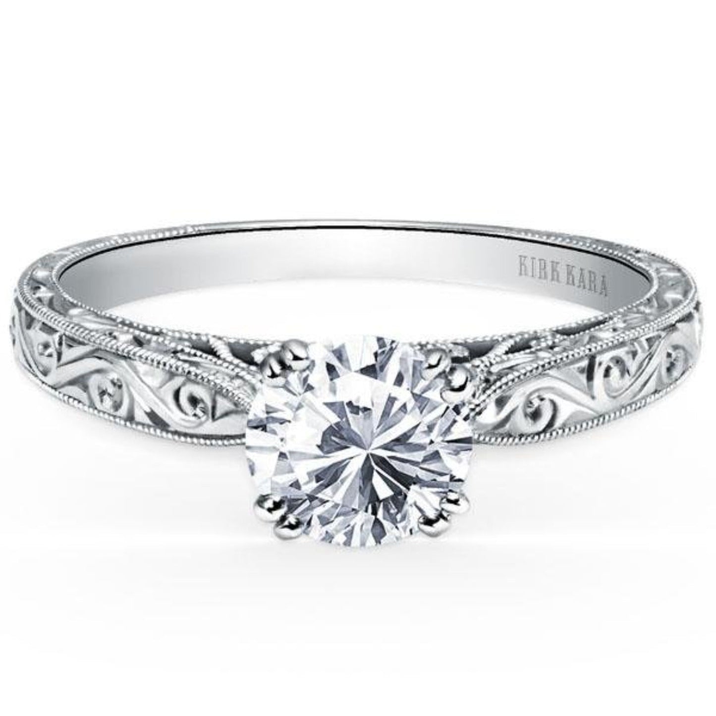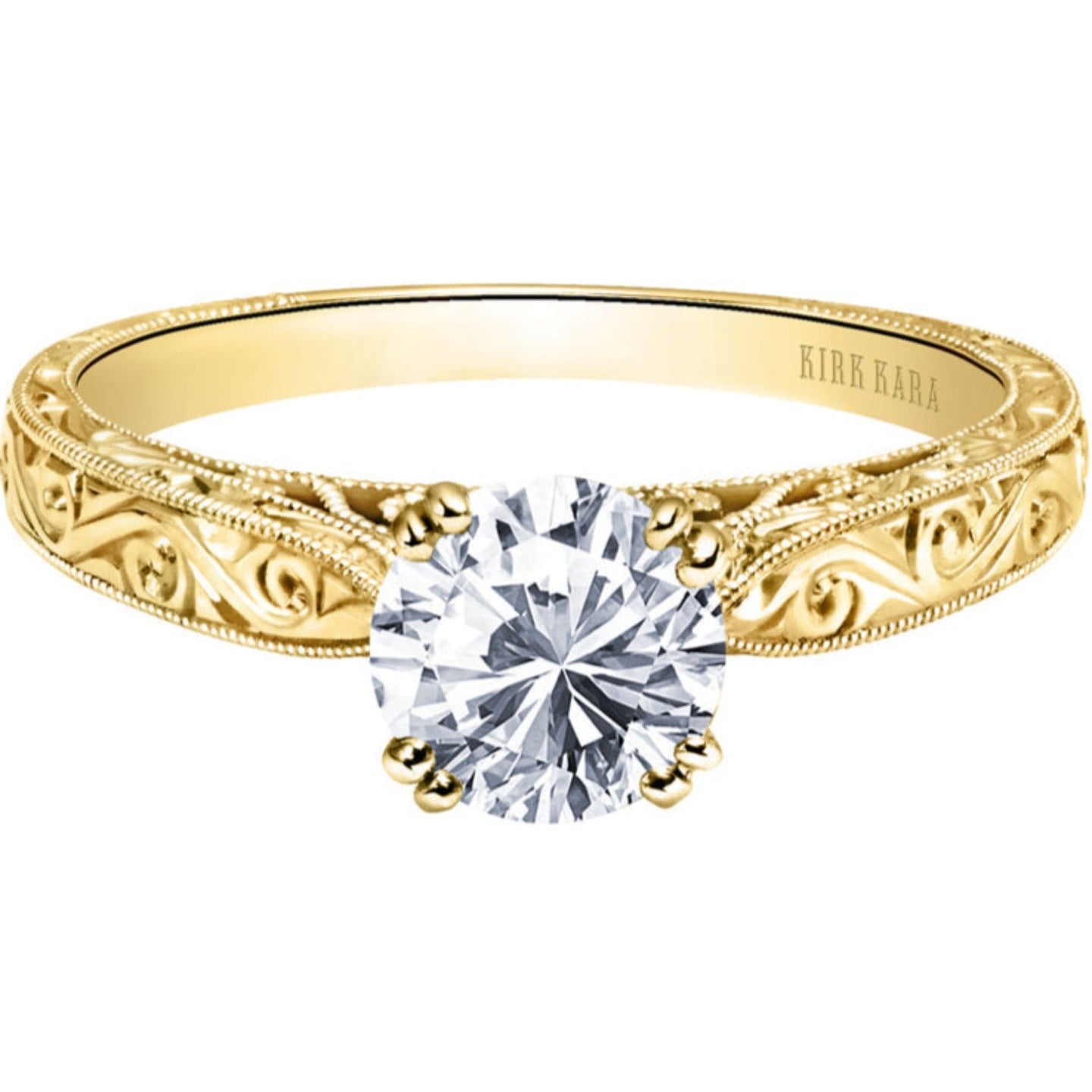 Kirk Kara "Stella" Round Cut Diamond Engraved Engagement Ring