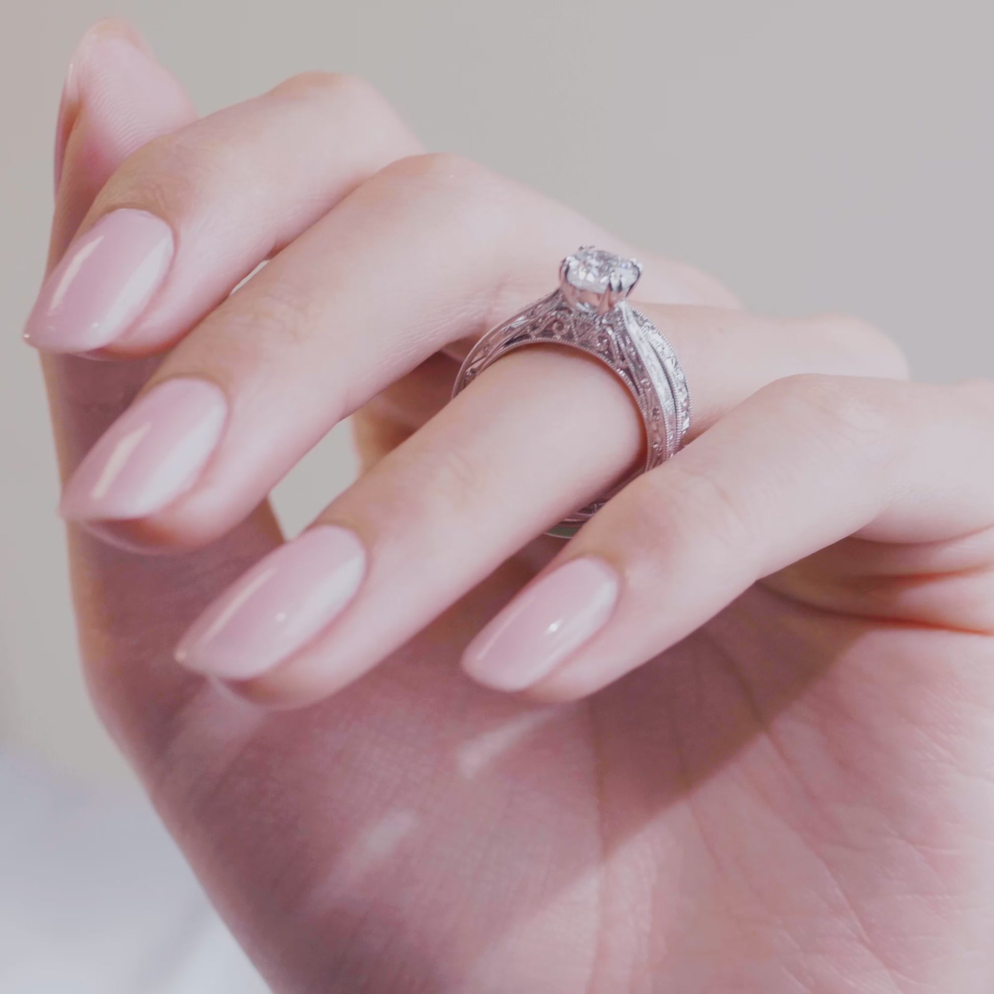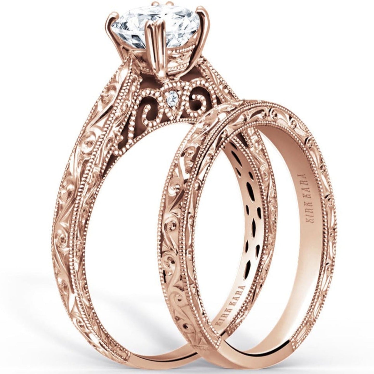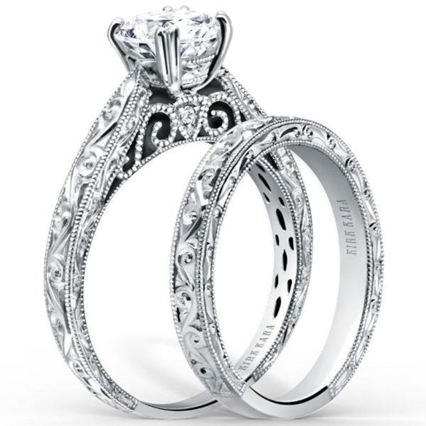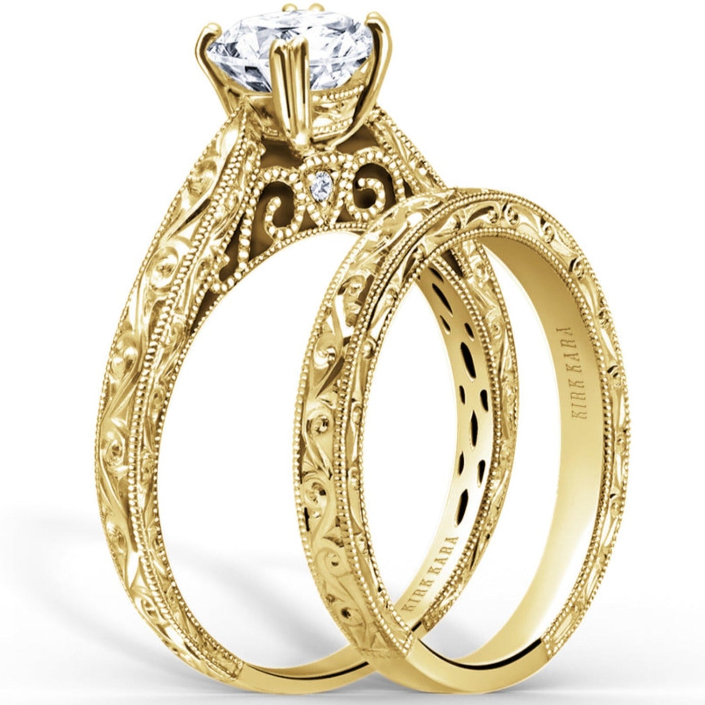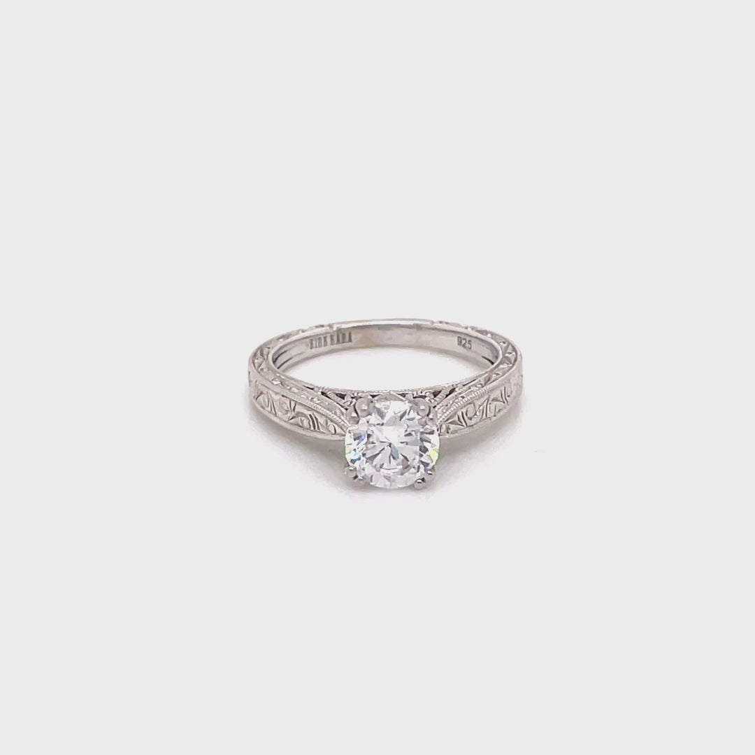 Kirk Kara "Stella" Round Cut Diamond Engraved Engagement Ring