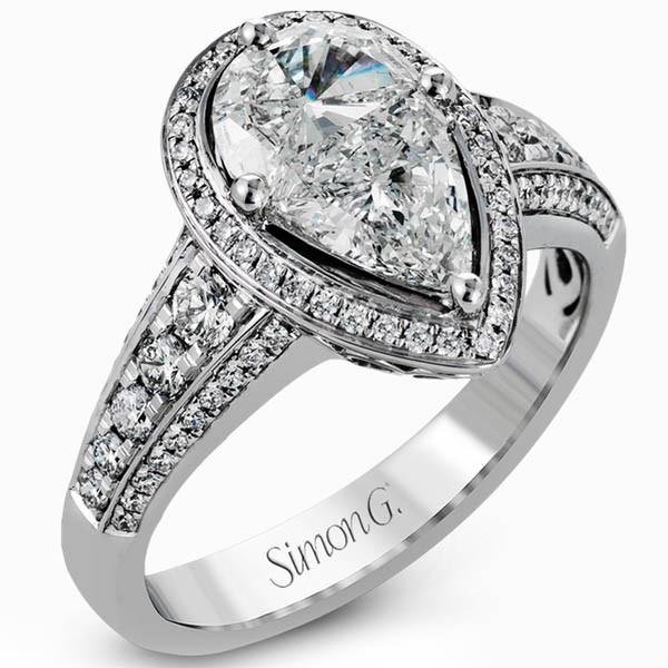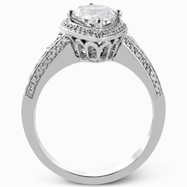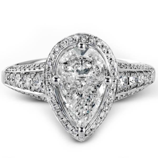 Simon G. 18K White Gold Mosaic Pear Cut Diamond Halo Engagement Ring