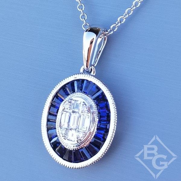 Simon G. Contemporary Style Oval Shaped Sapphire & Diamond Baguette Pendant