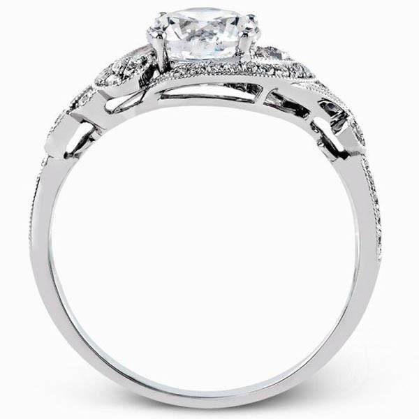 Simon G. Filigree Antique Style Diamond Engagement Ring Featuring 0.19 Carats Round White Diamonds with Scrollwork Design and Milgrain Detailing
