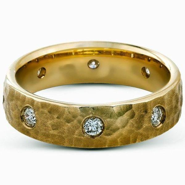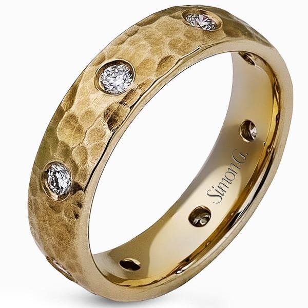 Simon G. 6MM Hammered Diamond Bezel Set Men's Wedding Ring Featuring 0.55 Carats Round Cut Diamonds