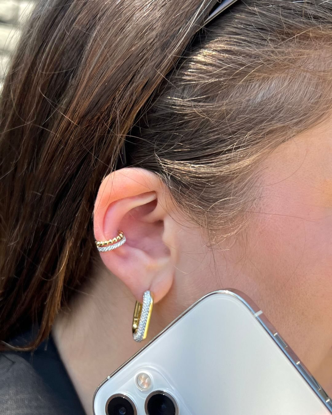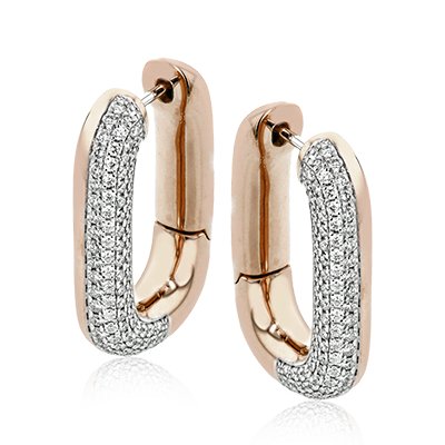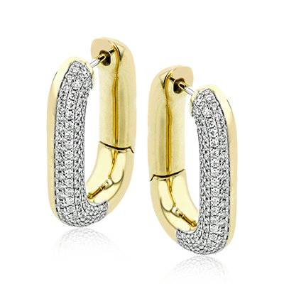 Simon G. Two-Tone Yellow & White Gold High Polished Diamond Pave Rectangular Shaped Tube Hoop Earrings Featuring 0.79 Carats Total Weight Round Cut Pave Set Diamonds Set in White Gold