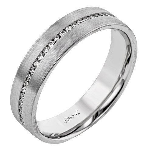 Simon G. Men's Eternity Round Cut Channel Set Diamond Wedding Band Featuring Round Cut Diamonds Channel Set Weighing 0.46 Carats Total Weight with a Brushed Finish