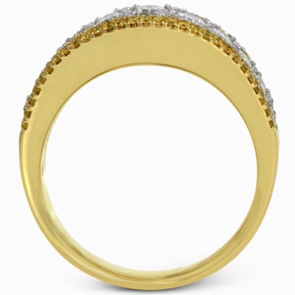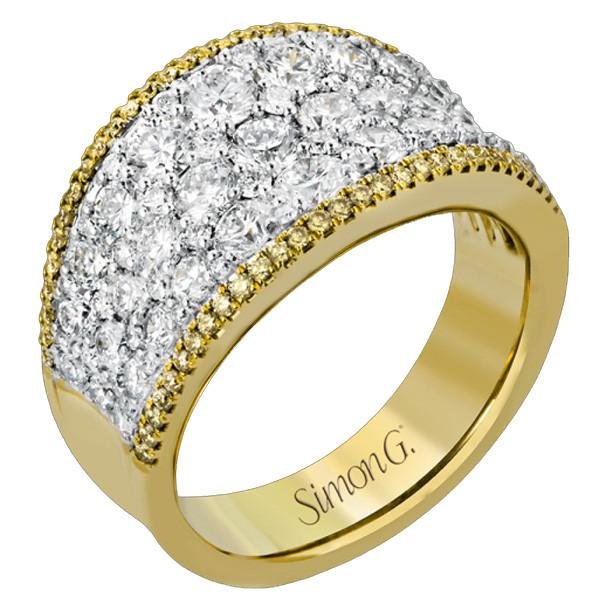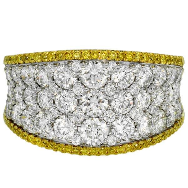 Simon G. 18K Yellow and White Two Tone Gold "Simon Set" Diamond Right Hand Ring Featuring 2.08 Carats Round Cut White Diamonds and 0.22 Carats Round Cut Fancy Yellow Diamonds Set in the Edge of the Ring
