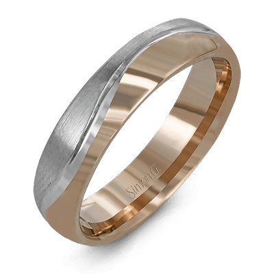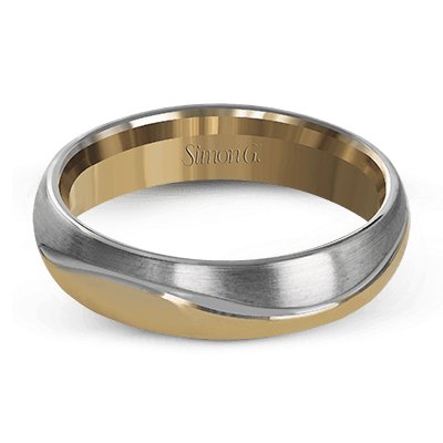 Simon G. 5.5MM Two Tone Gold Brushed Finish & High Polish Curvy Design Wedding Band
