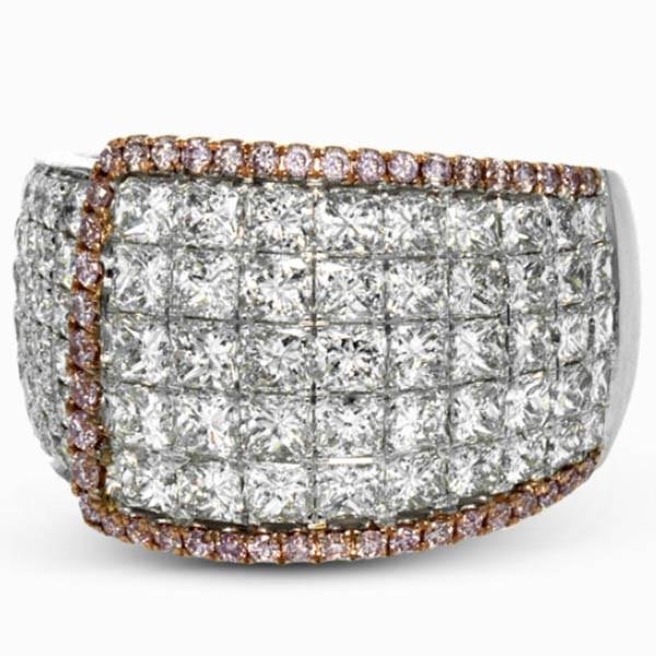 Simon G. 18K White & Rose Gold "Simon Set" Princess Cut Diamond Right Hand Ring Featuring 2.64 Carats Princess Cut Diamonds and 0.28 Carats of Round Cut Natural Pink Diamonds