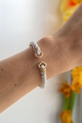 Vahan Sterling Silver & 14K Yellow Gold Diamond Gold Bangle Bracelet