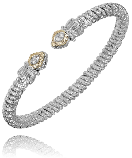 Vahan 4mm Sterling Silver & 14K Yellow Gold Diamond Pave "Spades" Bangle Bracelet Featuring 0.06 Carats Round Cut Prong Set Diamonds