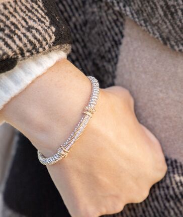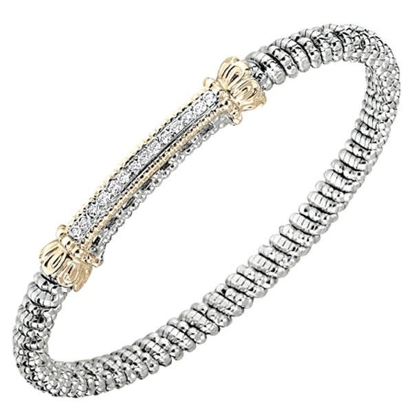 Vahan Sterling Silver & Yellow Gold Thin Diamond Pave Bar Bangle Bracelet